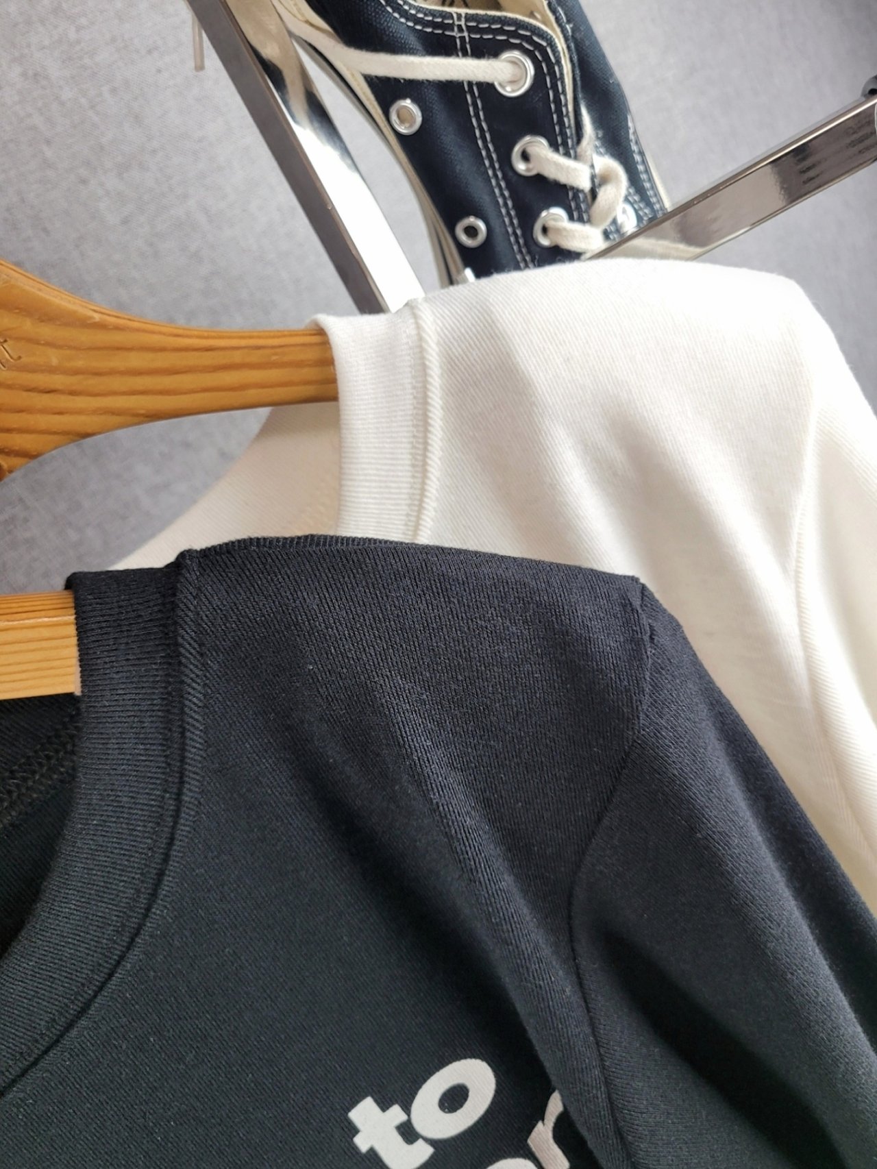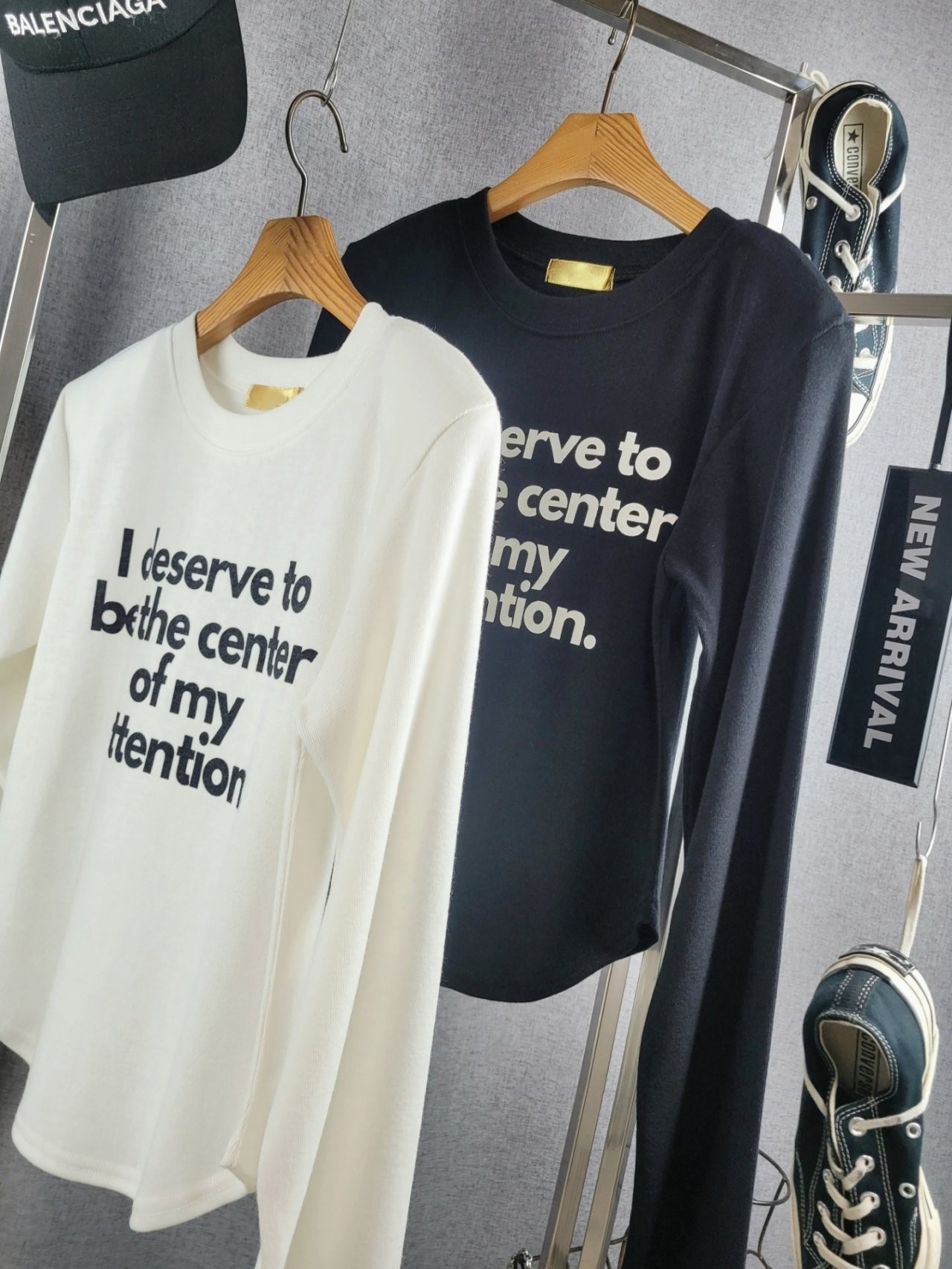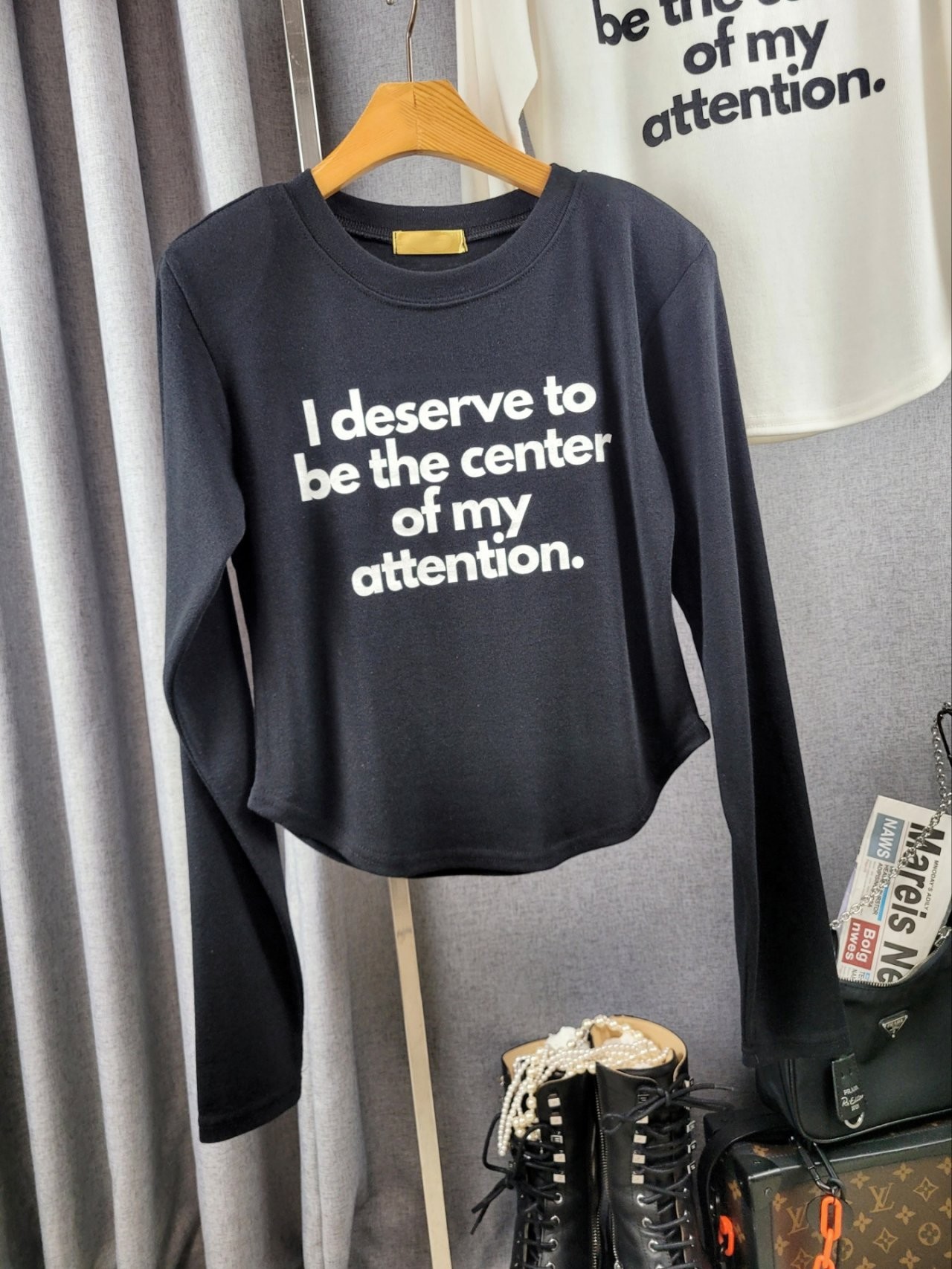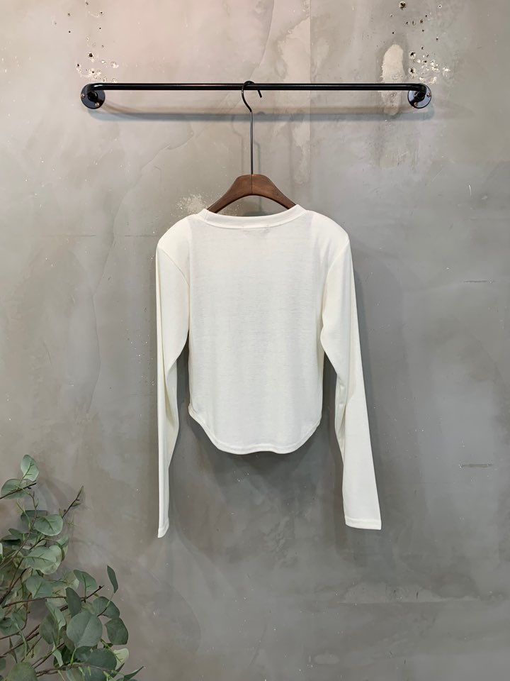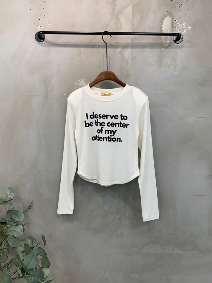포인트를 톡톡히 더한 긴팔 티셔츠에요
