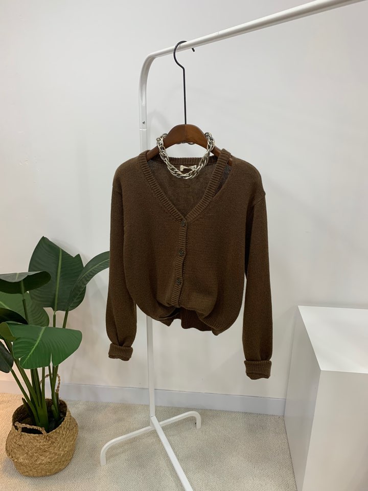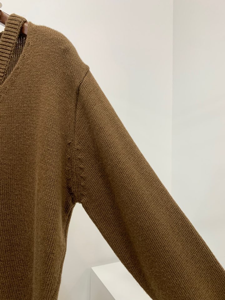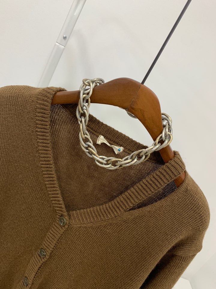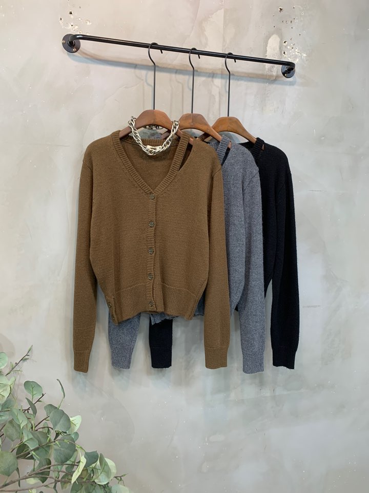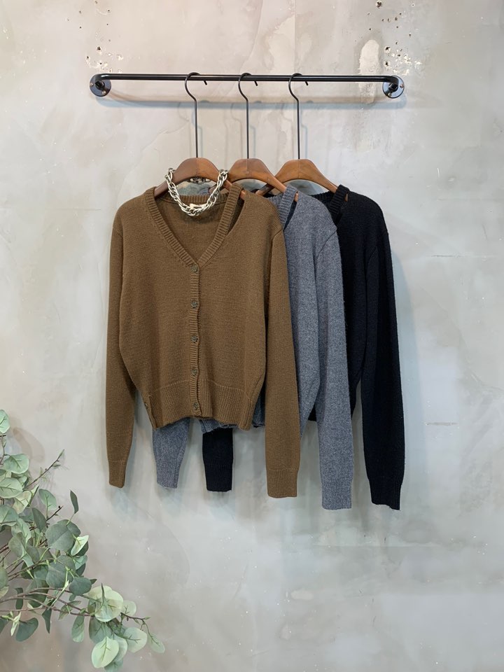 라운드넥 한쪽 사이드에 커팅된 트임으로