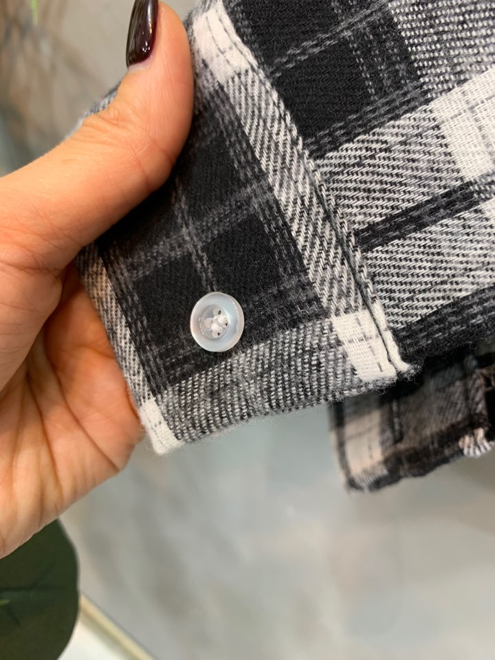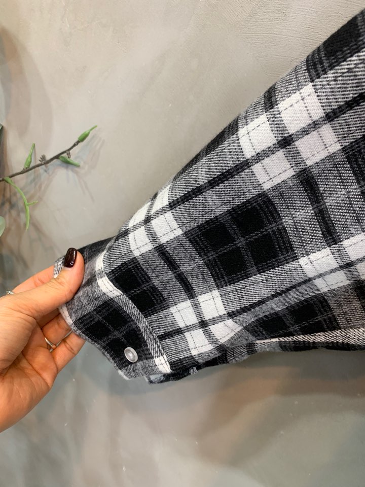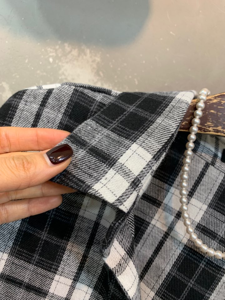 단추를 모두 잠가 단정한 셔츠 스타일로,
