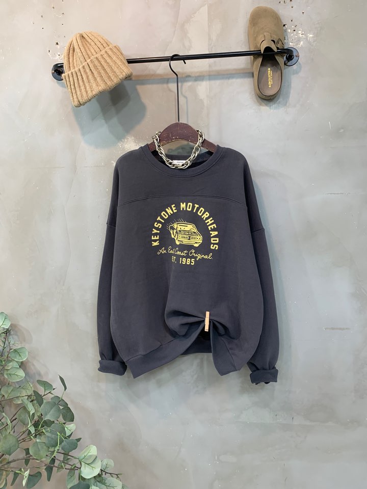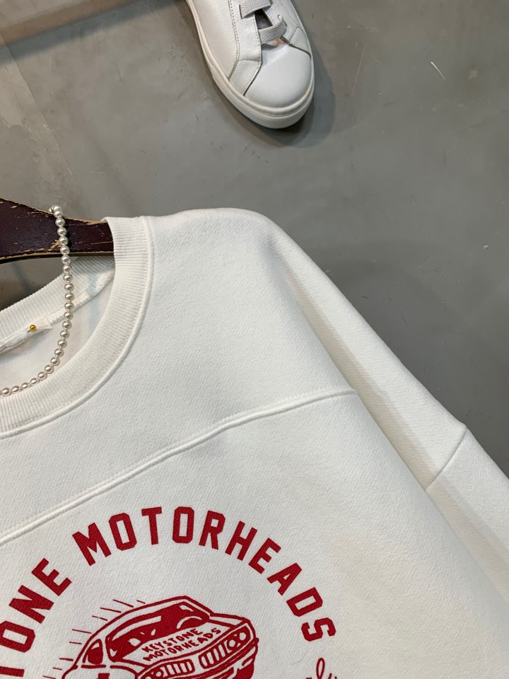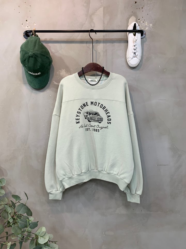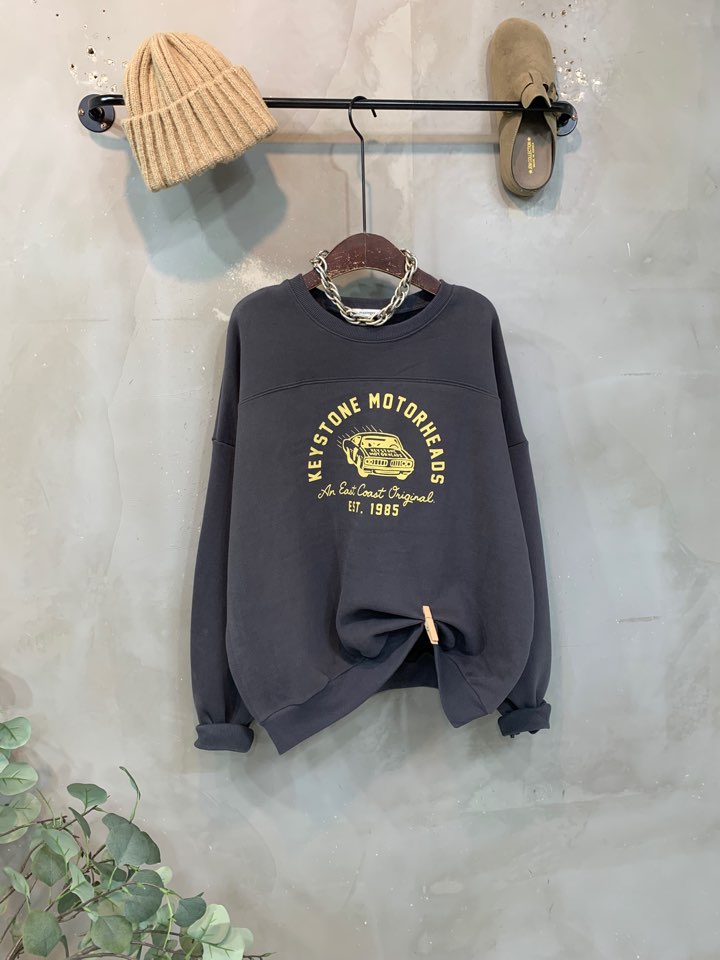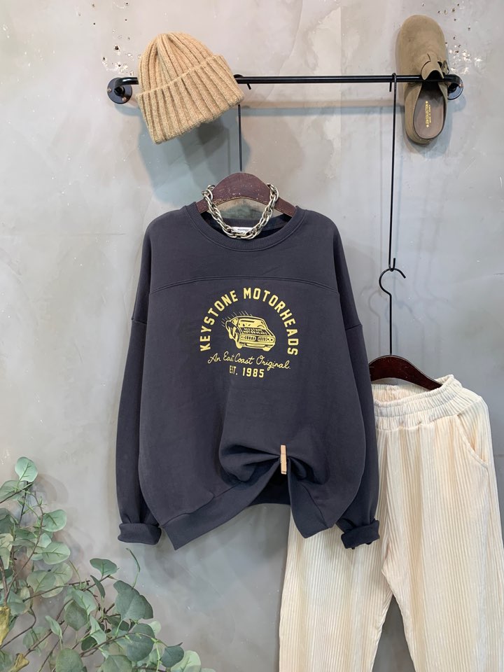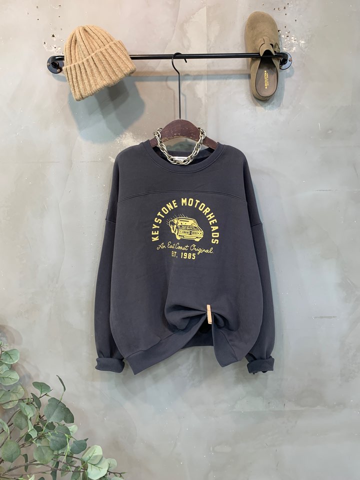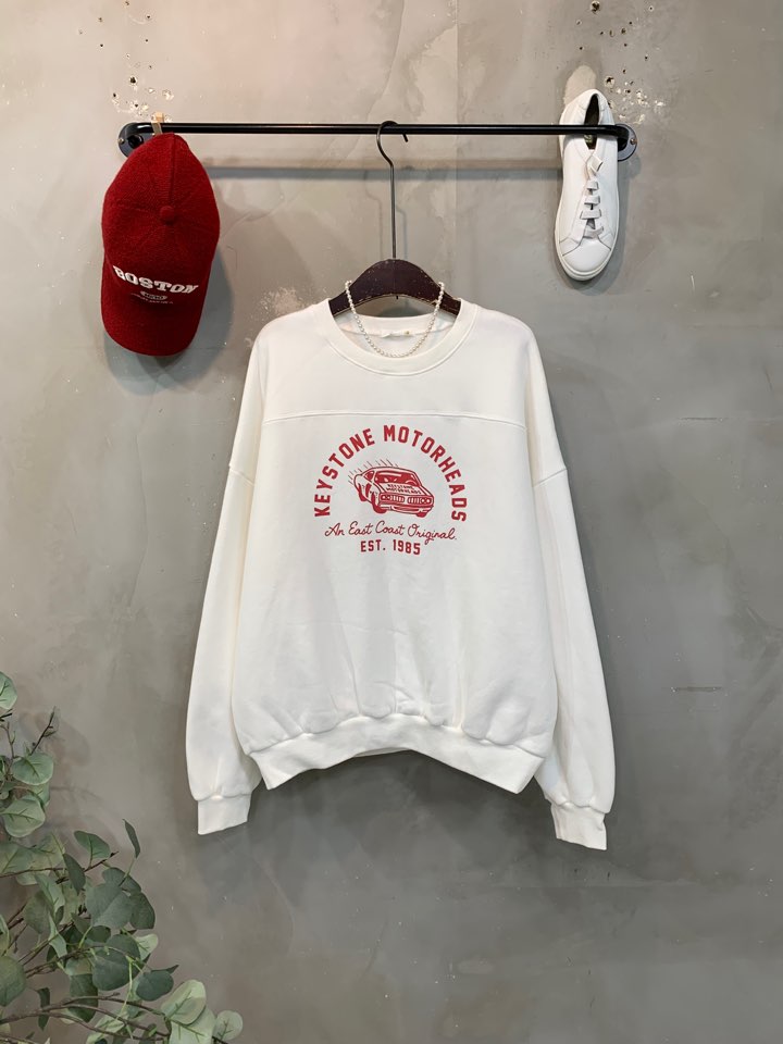 프론트의 빈티지한 무드의 레터링 프린팅이