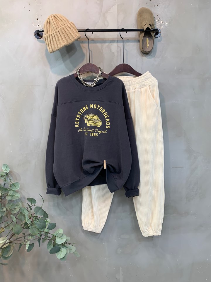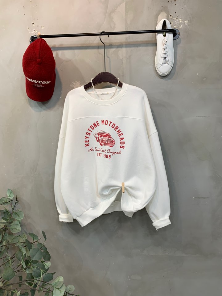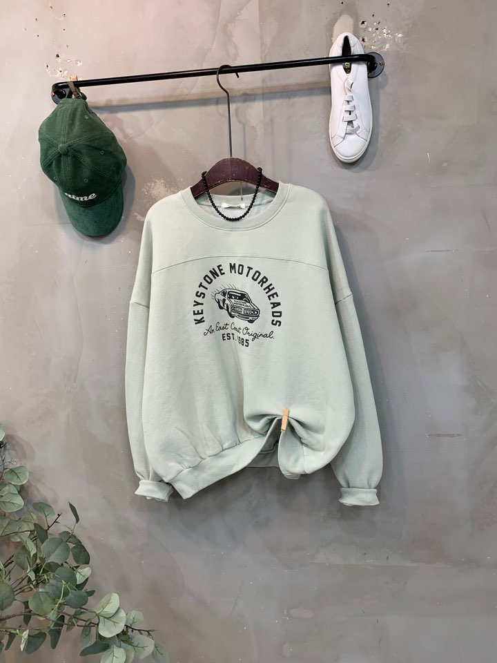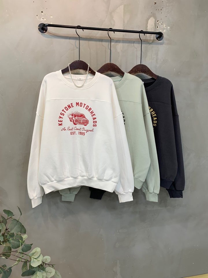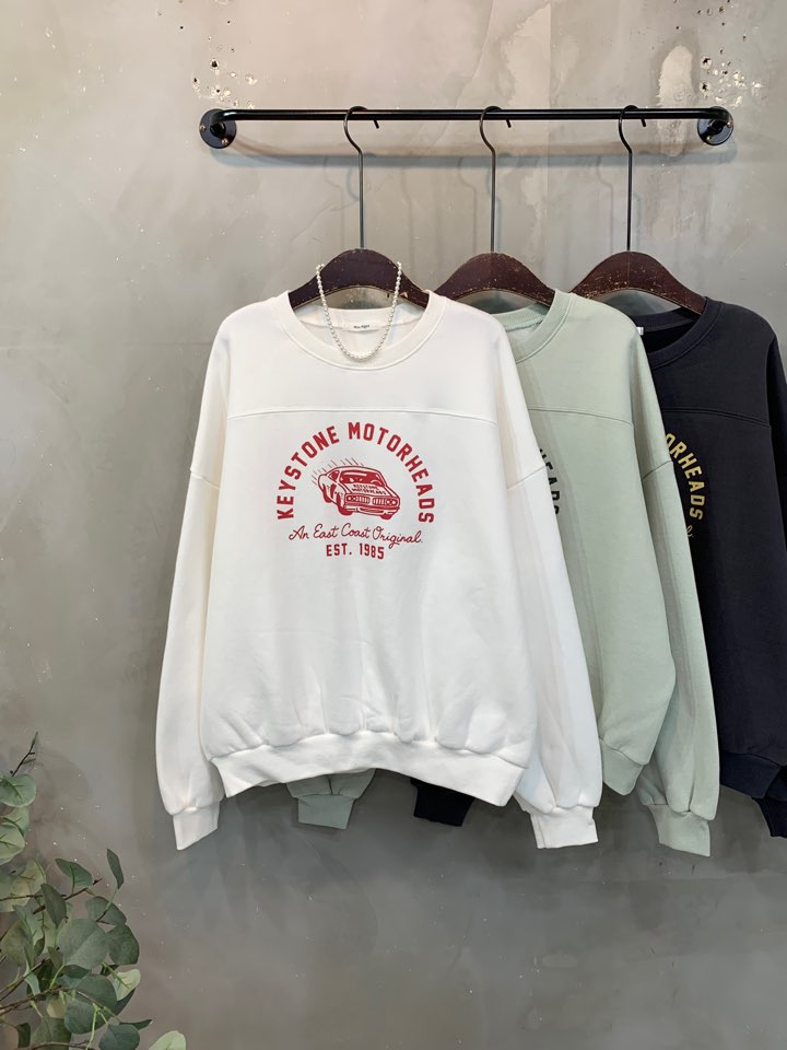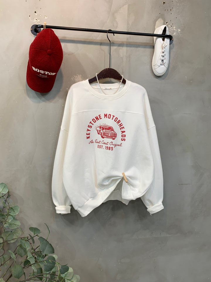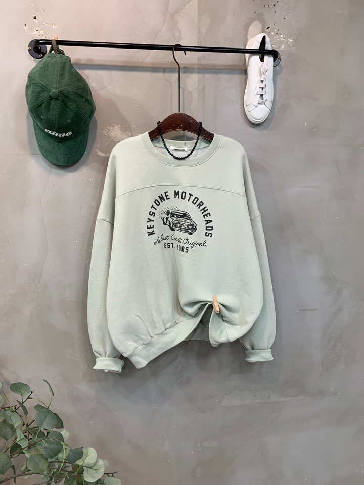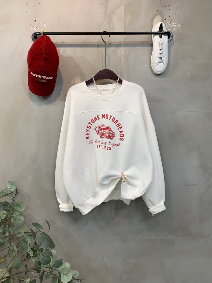 프론트의 빈티지한 무드의 레터링 프린팅이