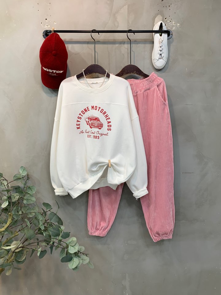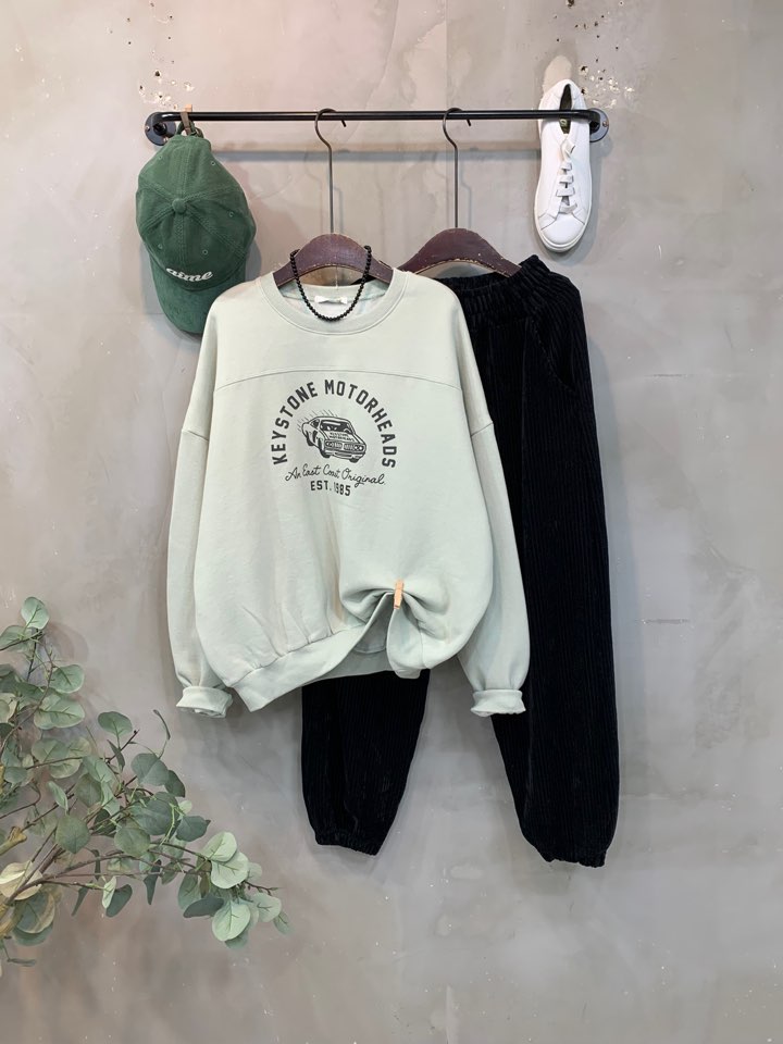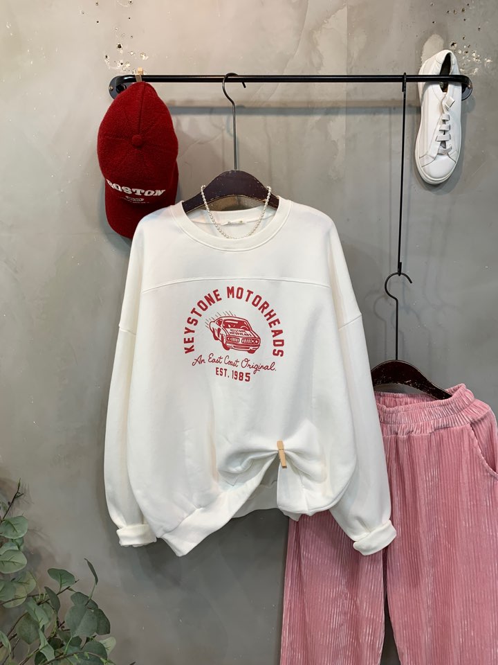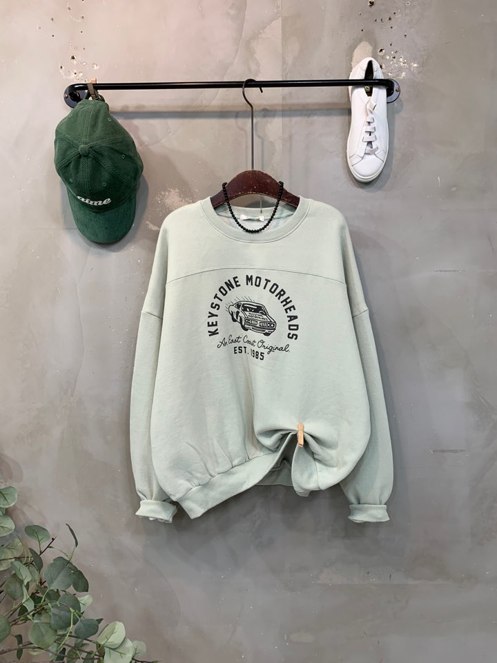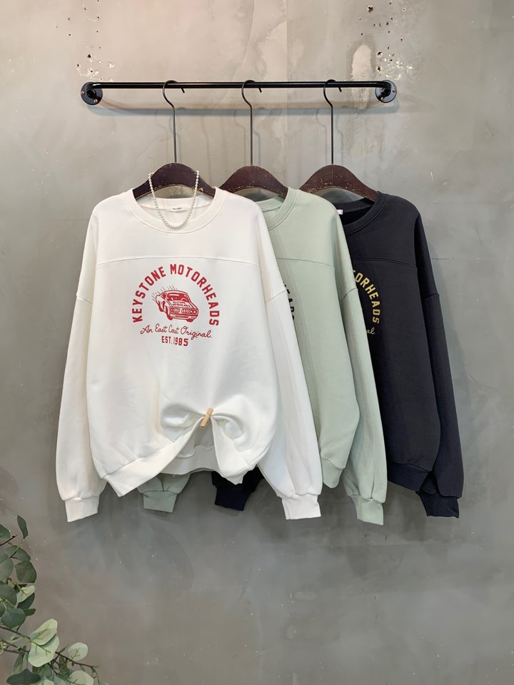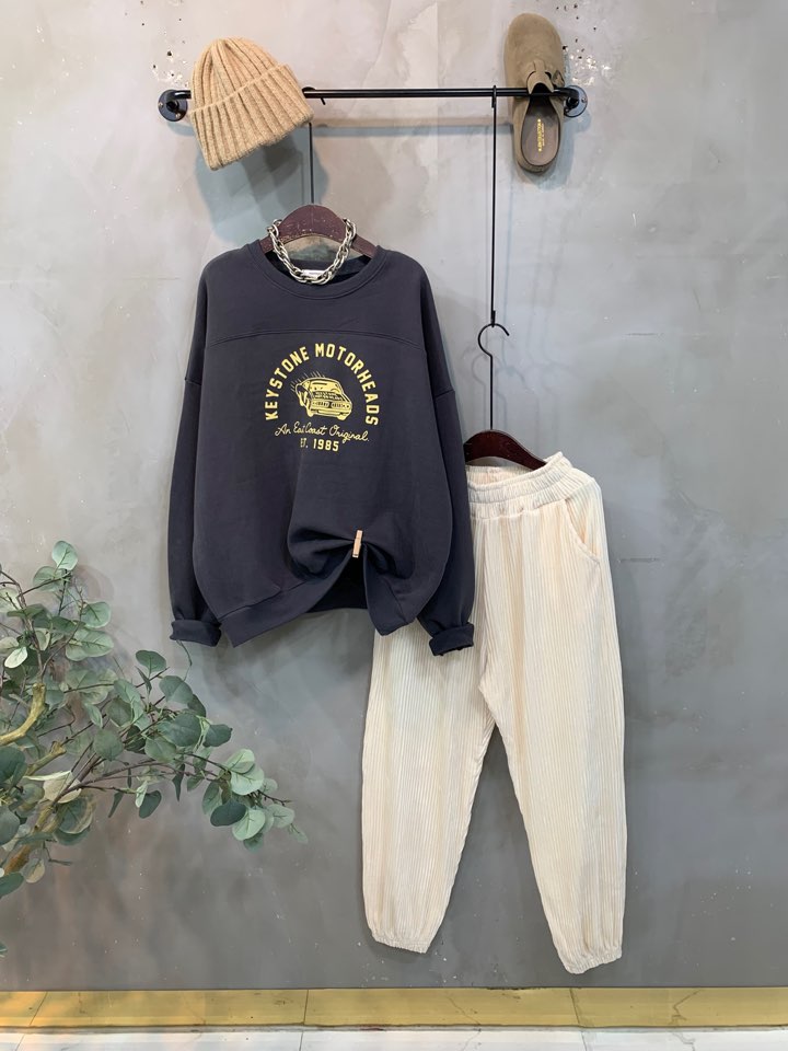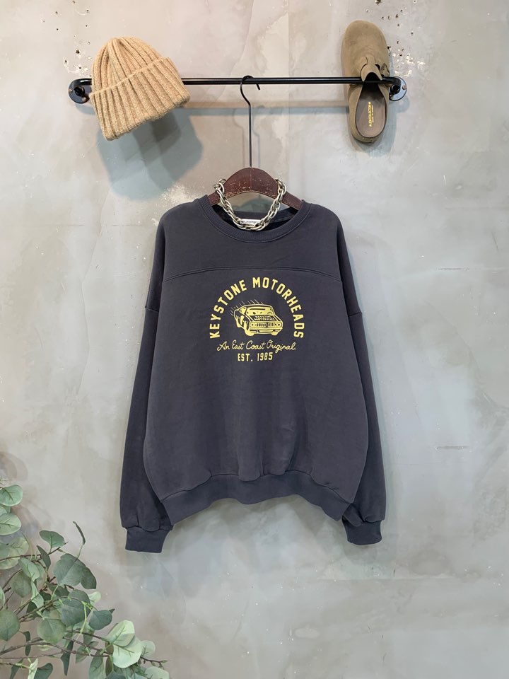 프론트의 빈티지한 무드의 레터링 프린팅이