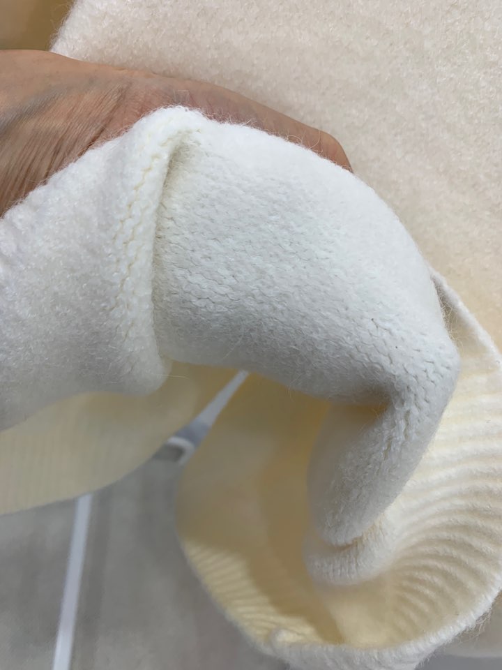 넥과 밑단, 소매 끝에는 탄탄한 시보리 짜임으로