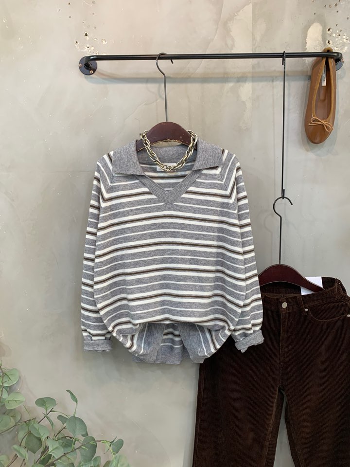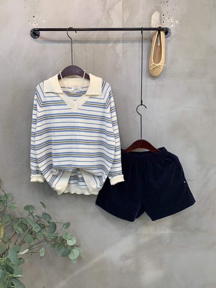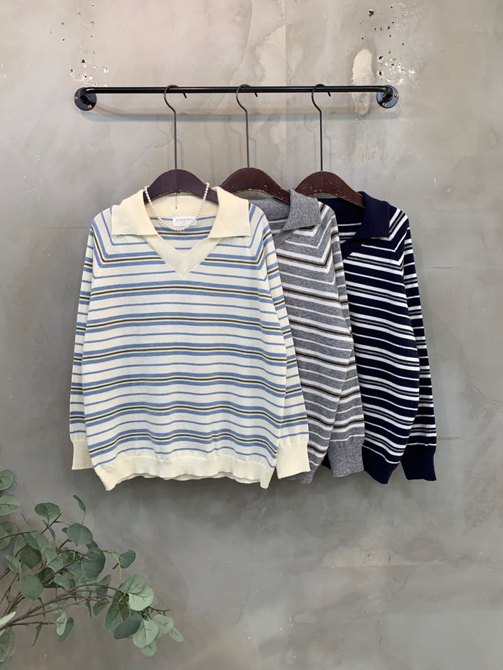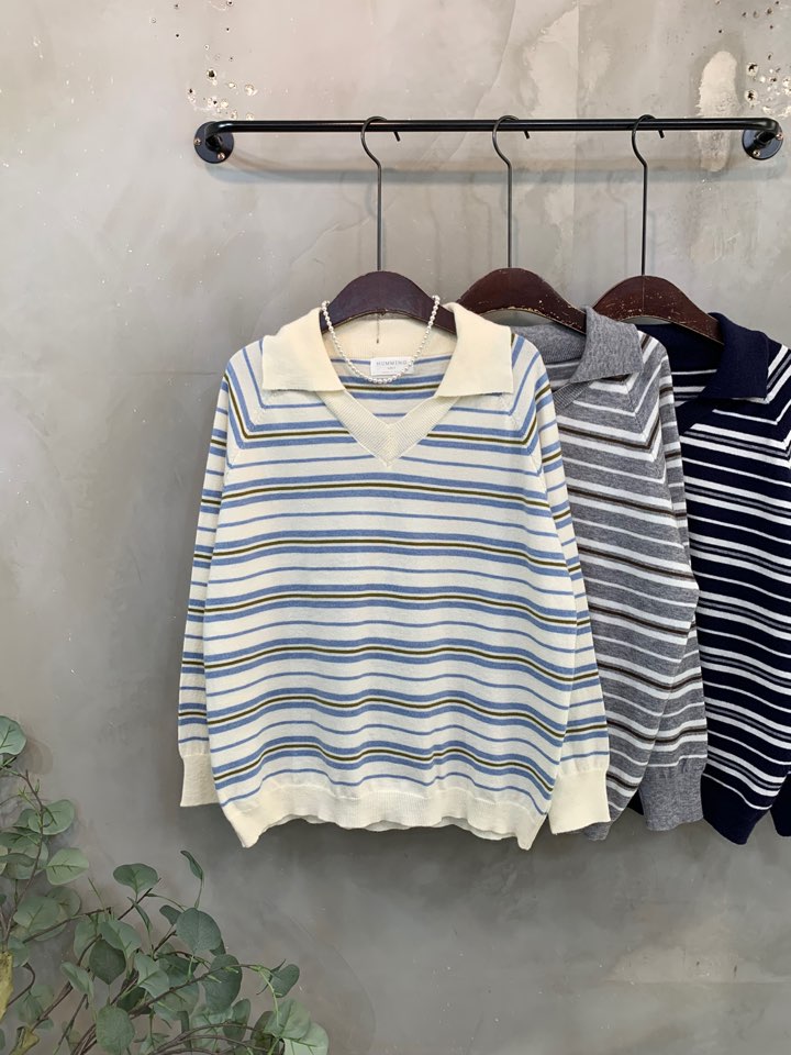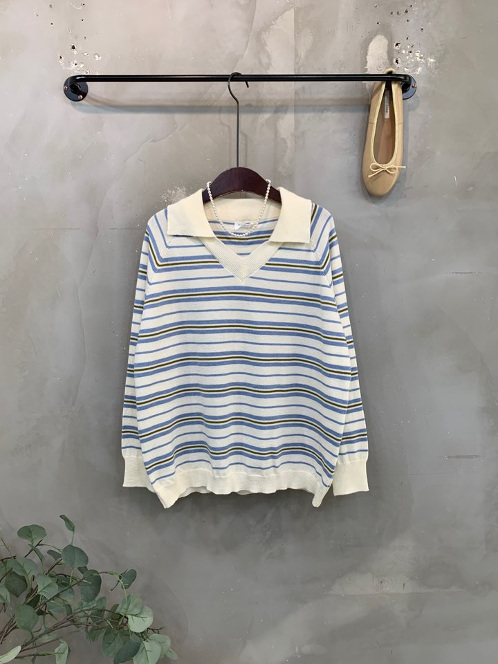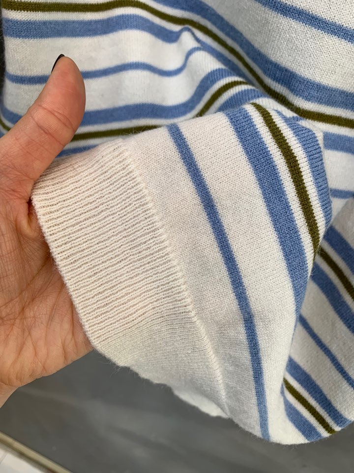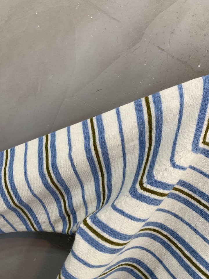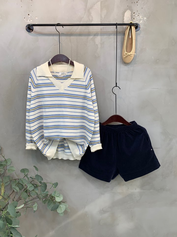 브이넥 라인과 소매 끝, 밑단의 시보리로