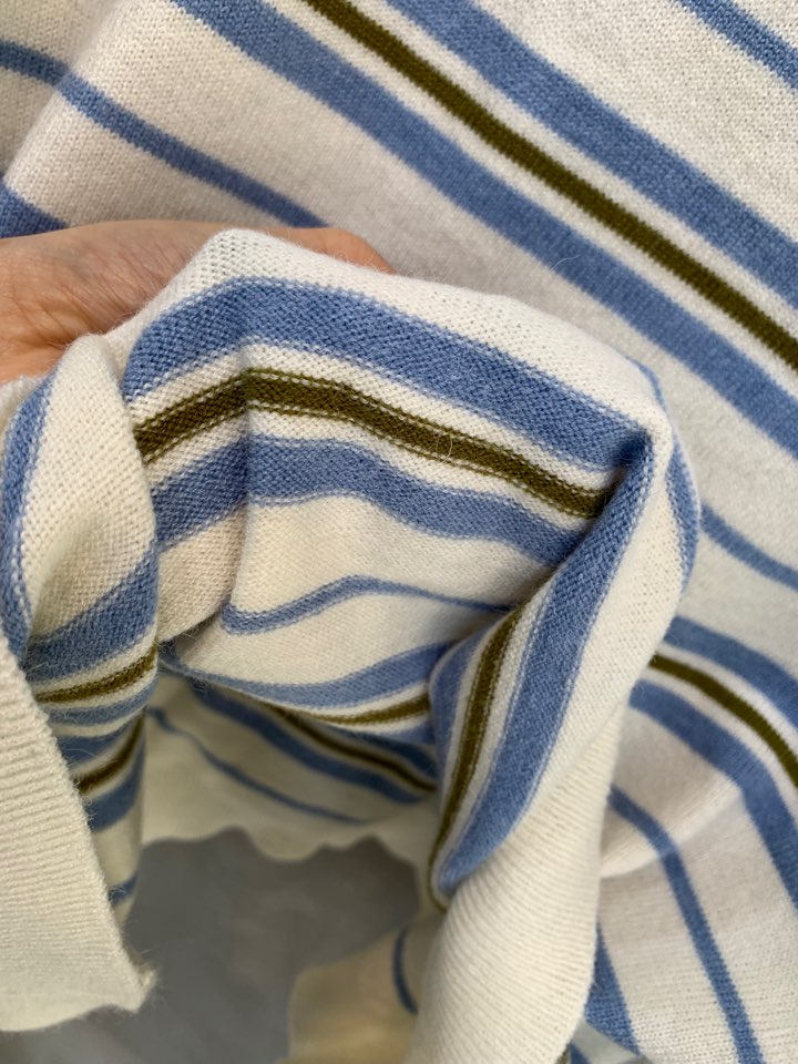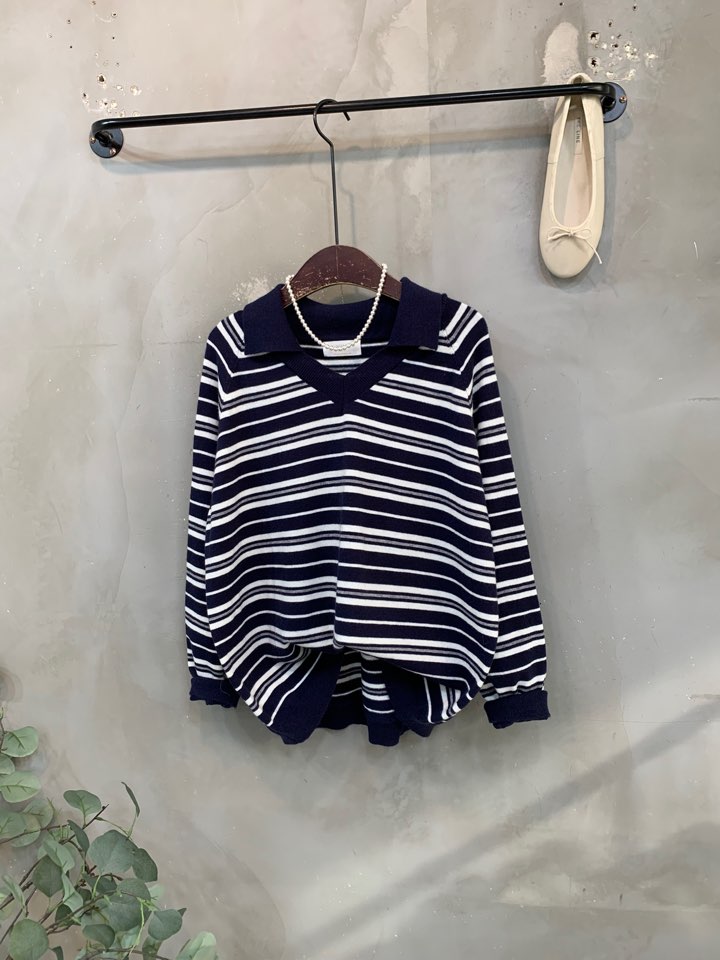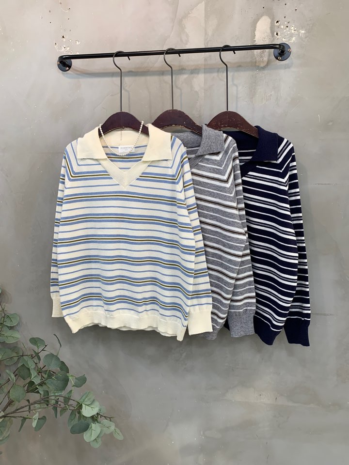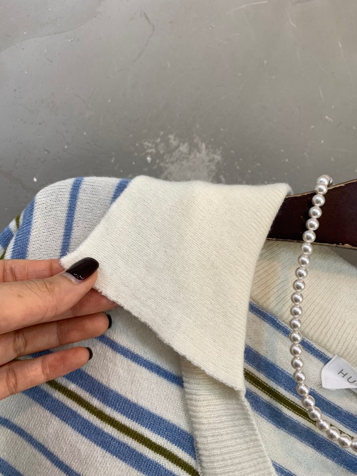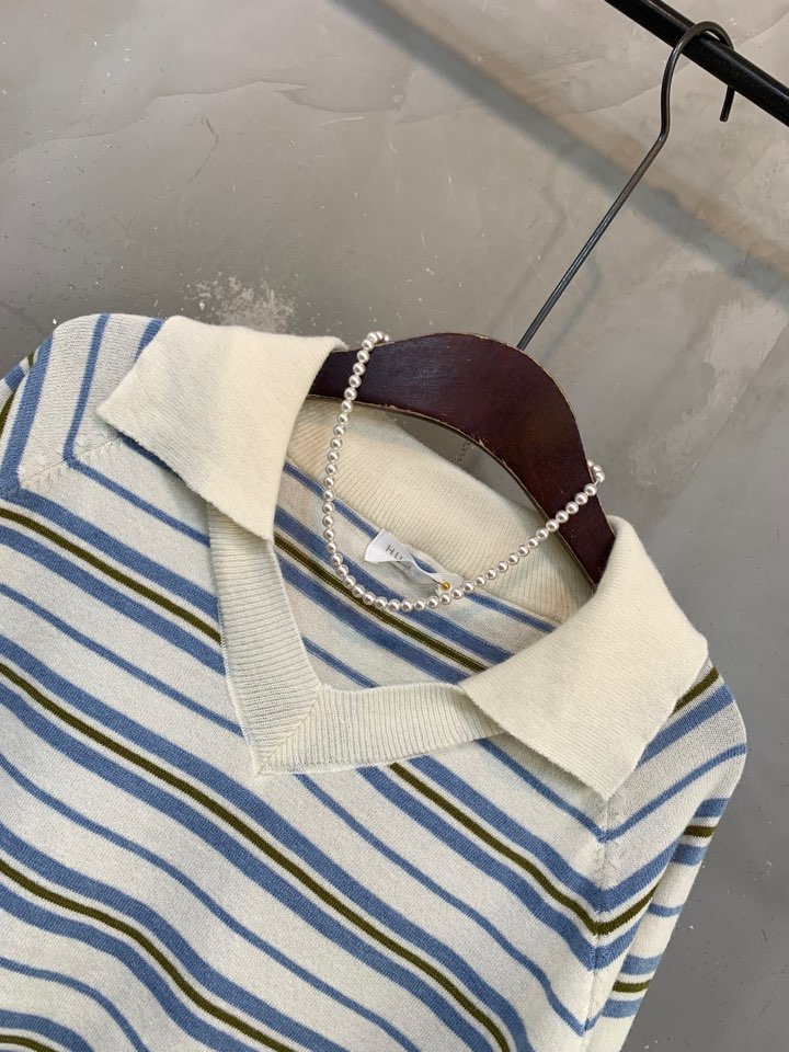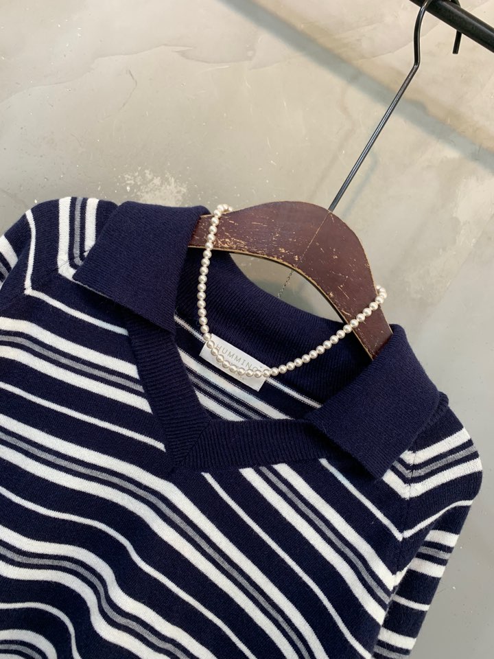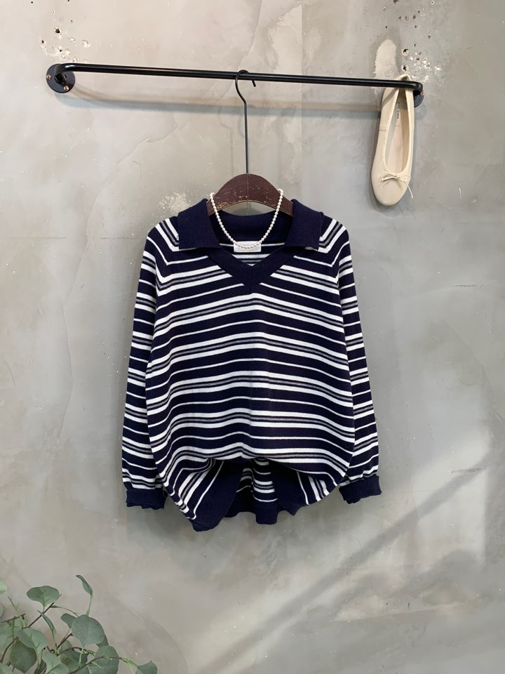 브이넥 라인과 소매 끝, 밑단의 시보리로