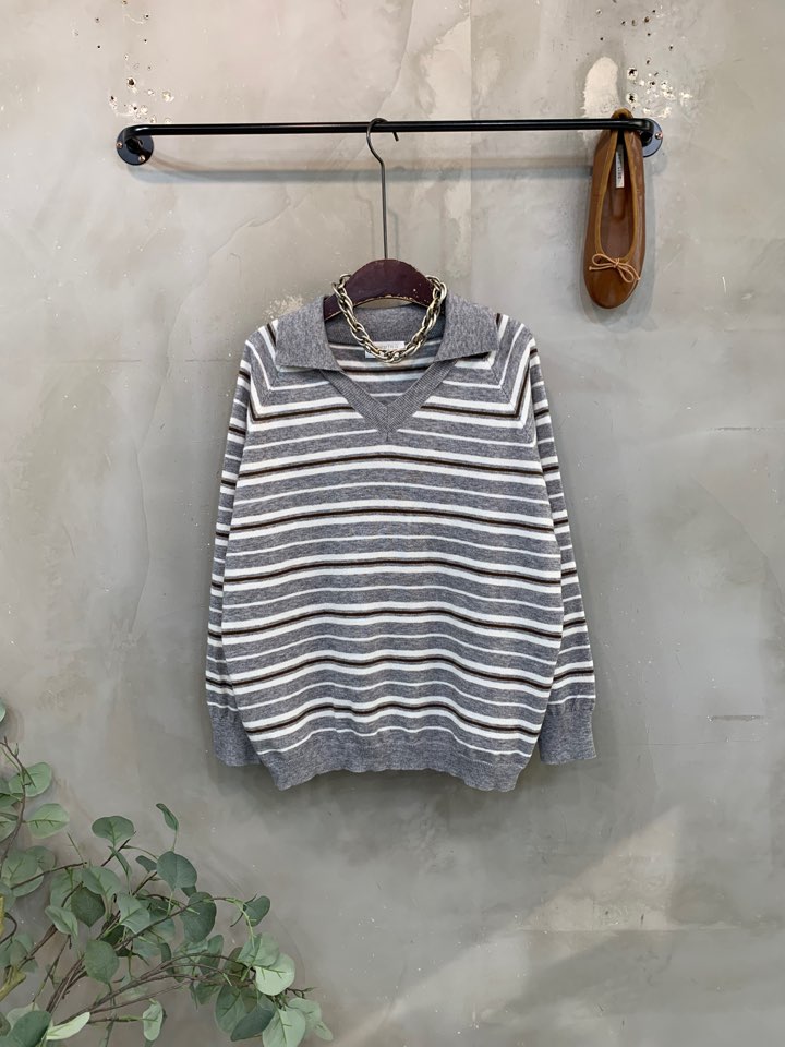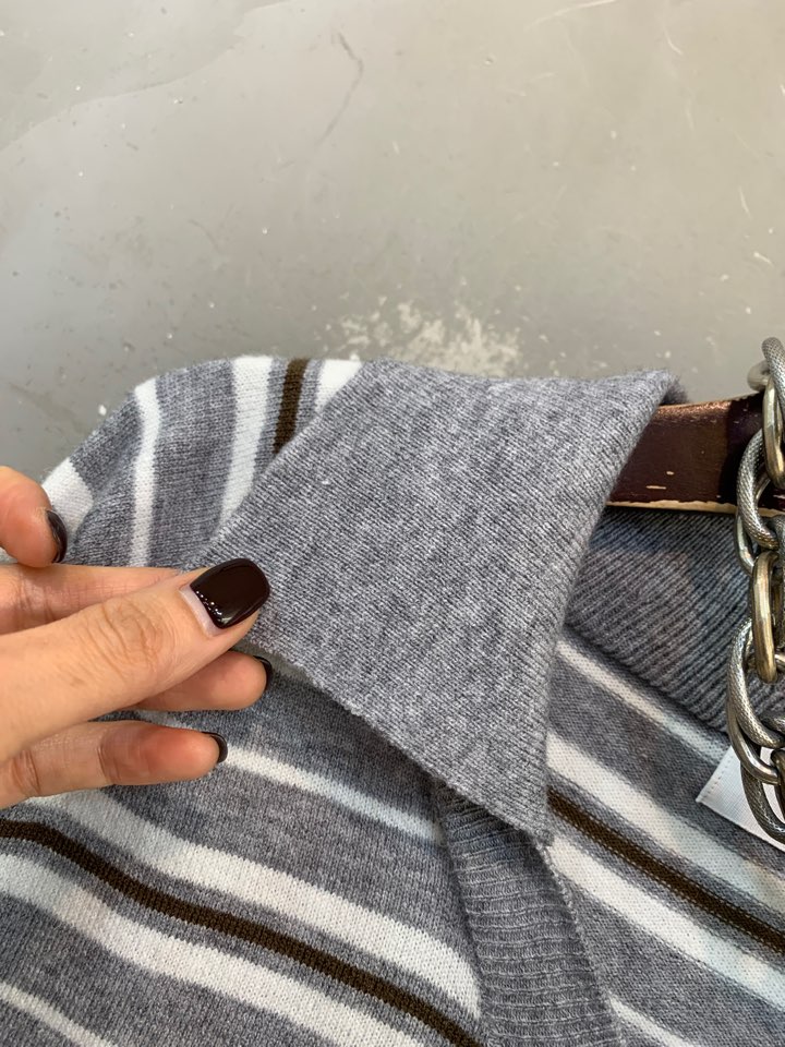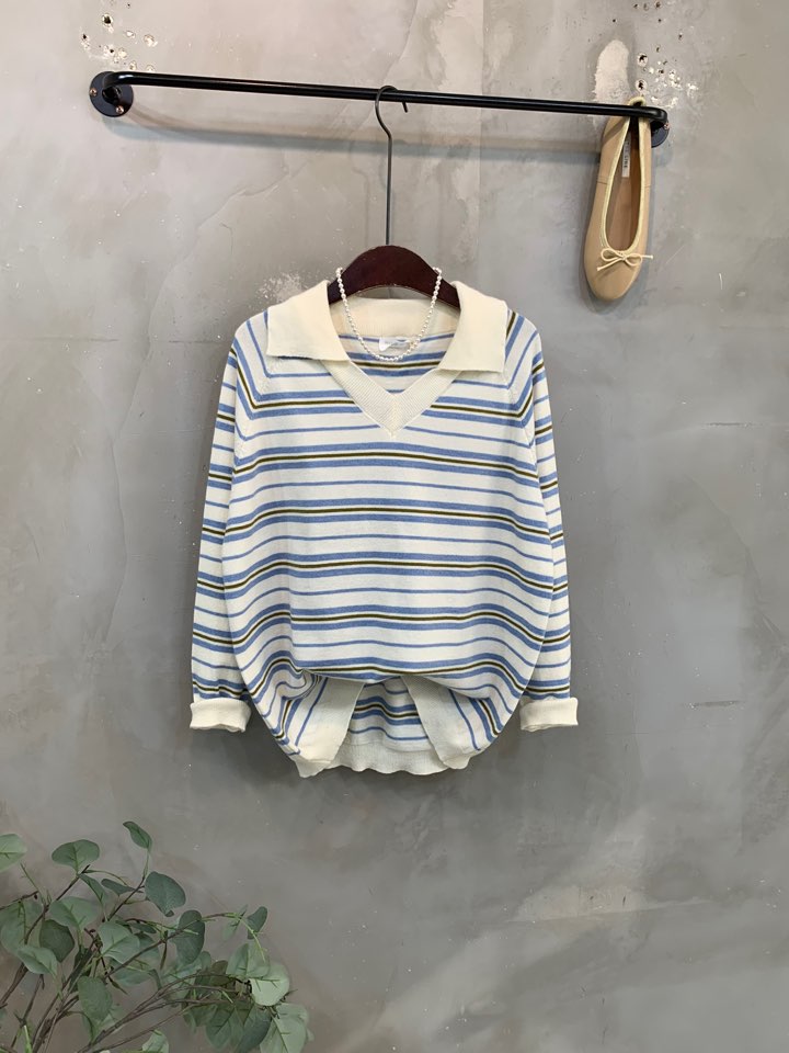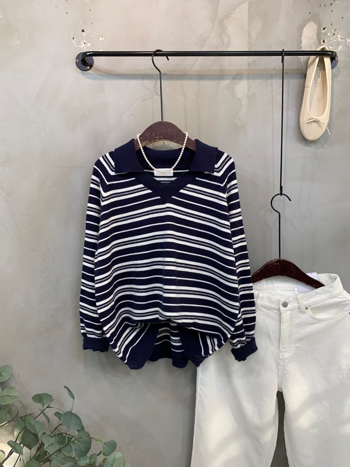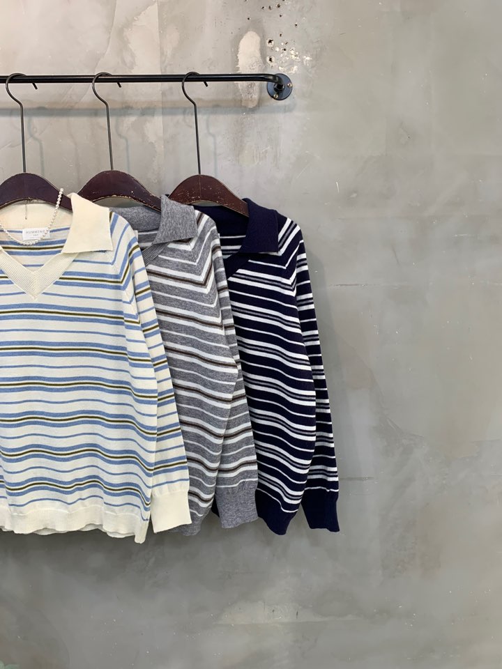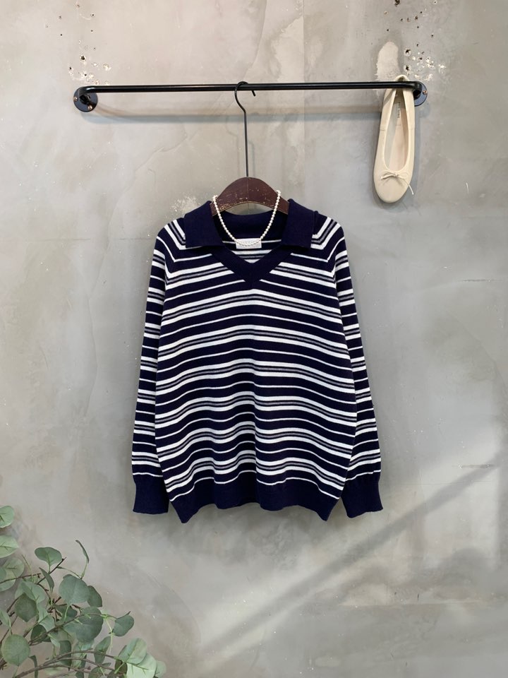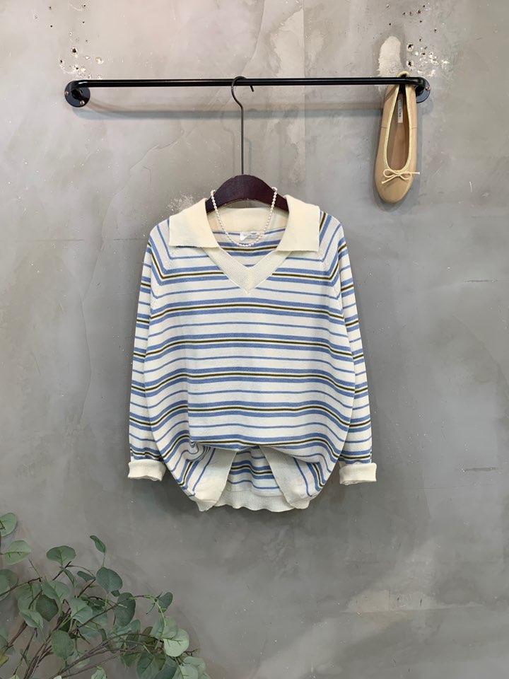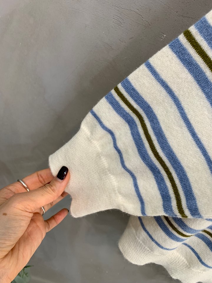 브이넥 라인과 소매 끝, 밑단의 시보리로