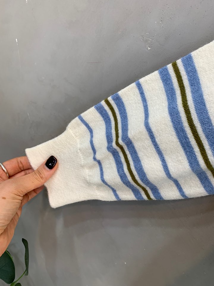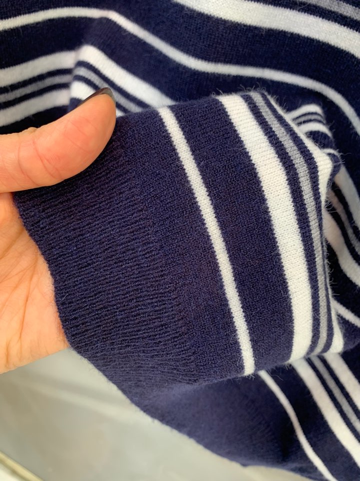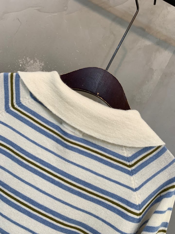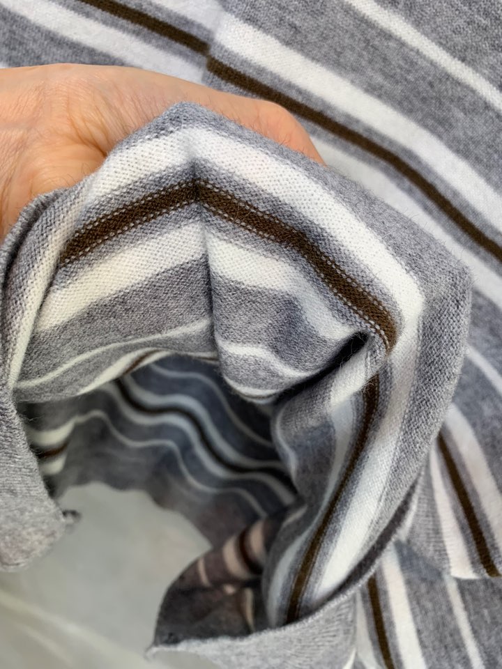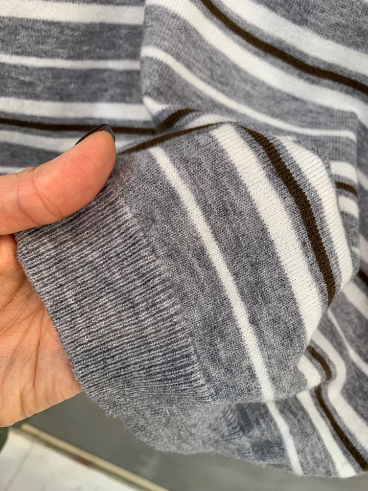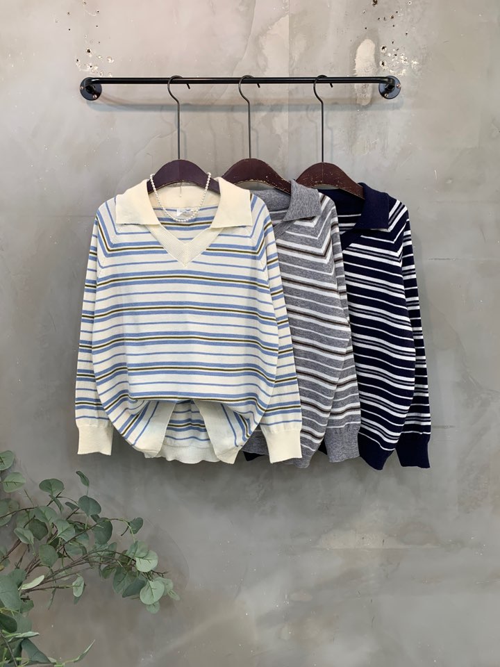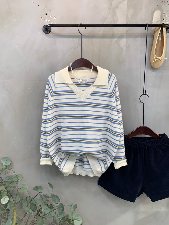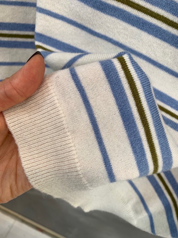 브이넥 라인과 소매 끝, 밑단의 시보리로