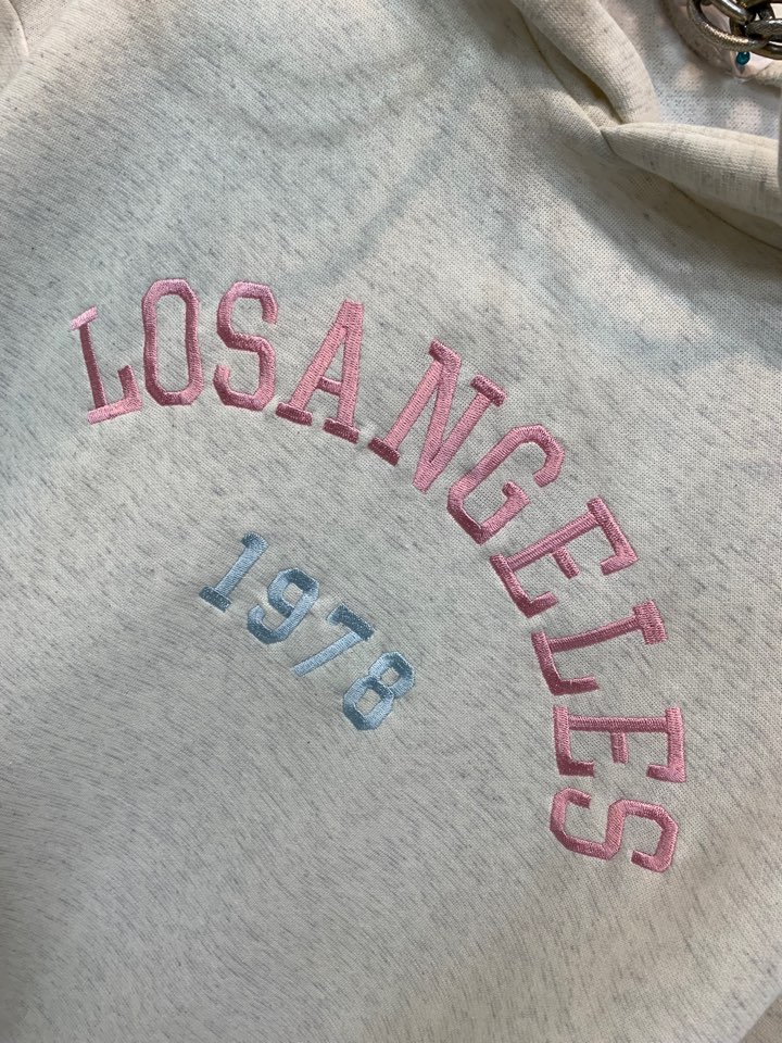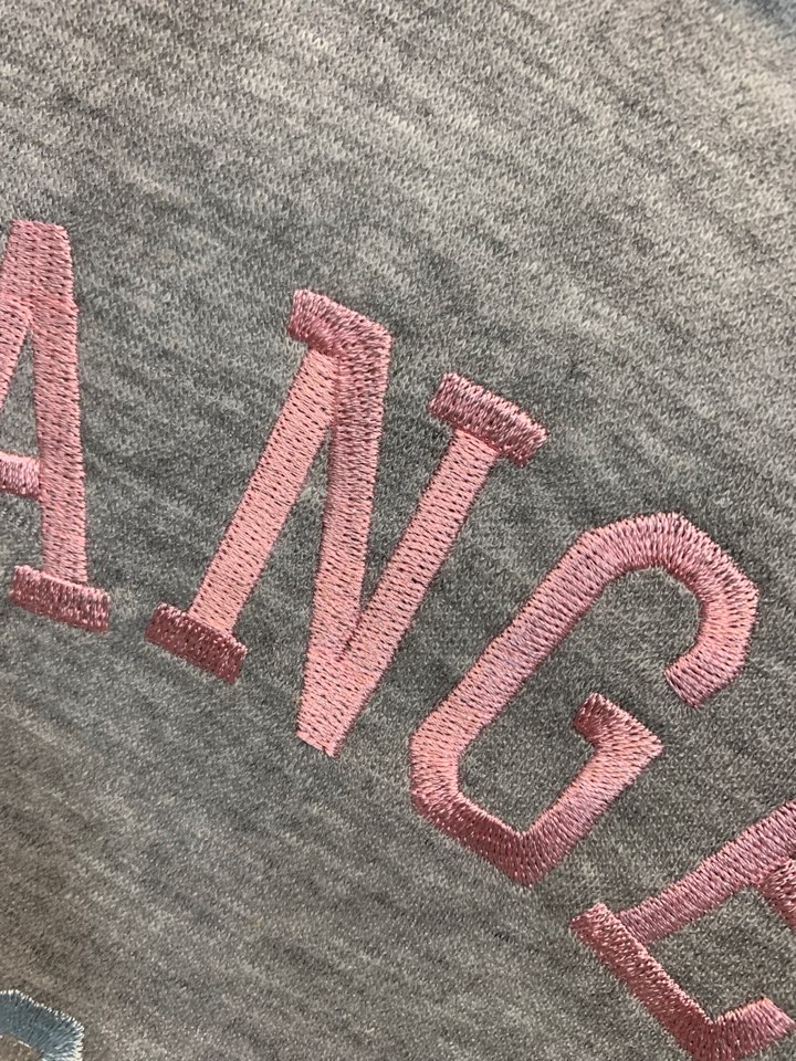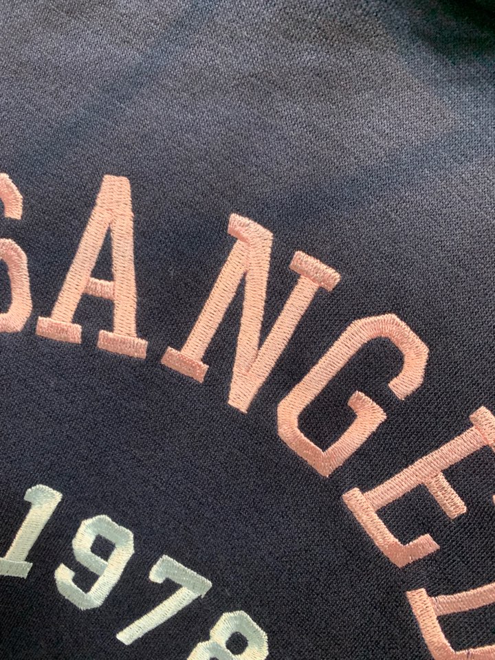 정면에 자수로 표현한 영문, 숫자 레터링으로