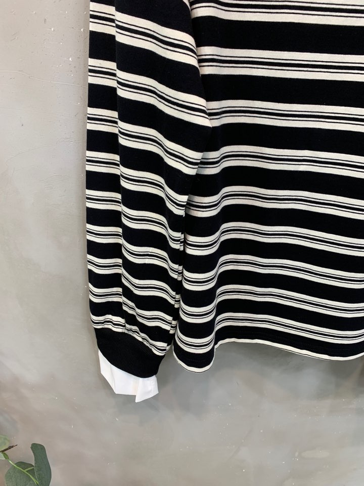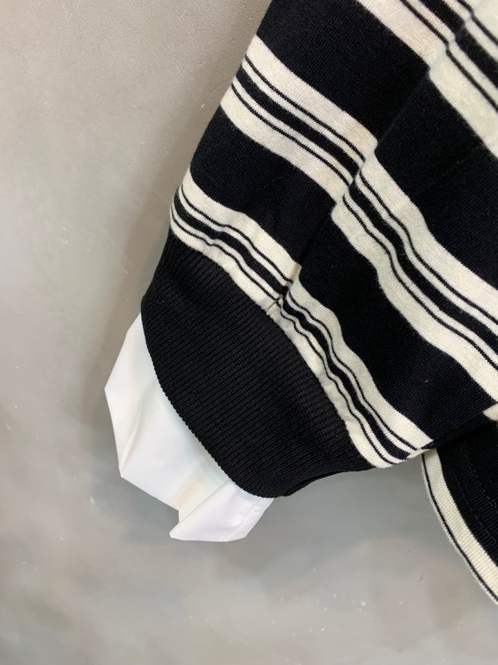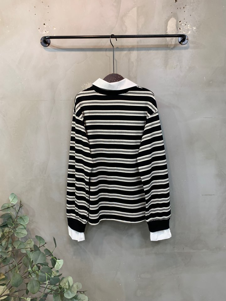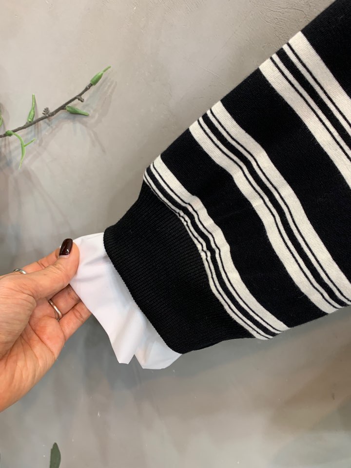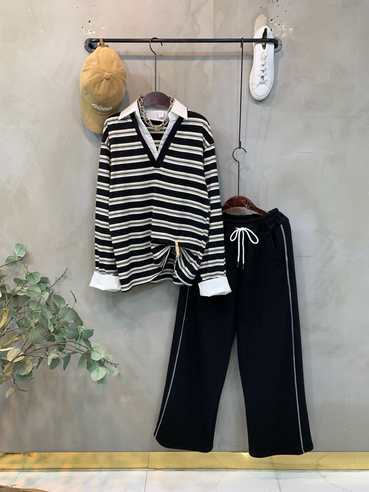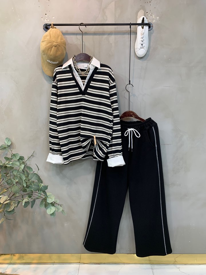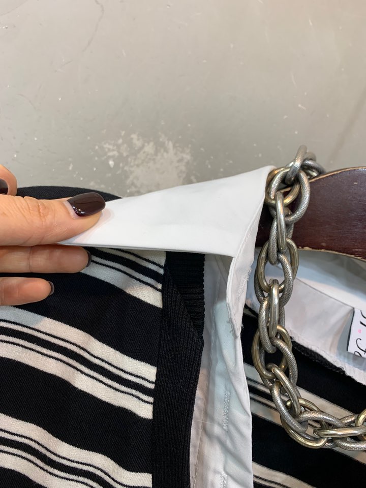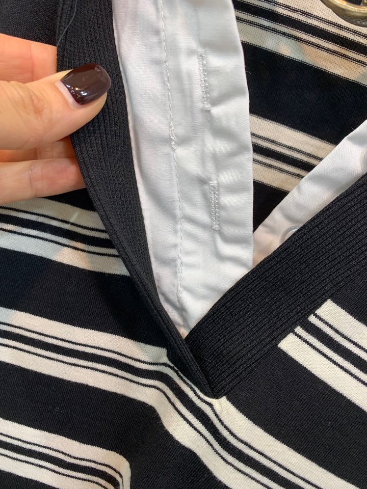 브이넥 라인 안쪽으로 셔츠를 레이어드해서