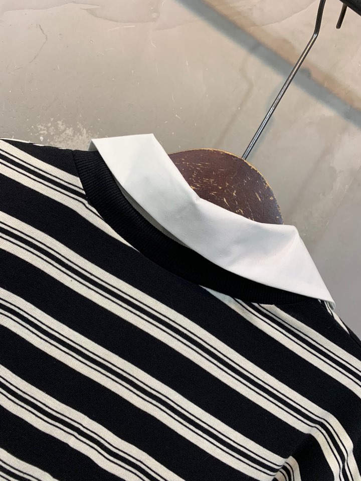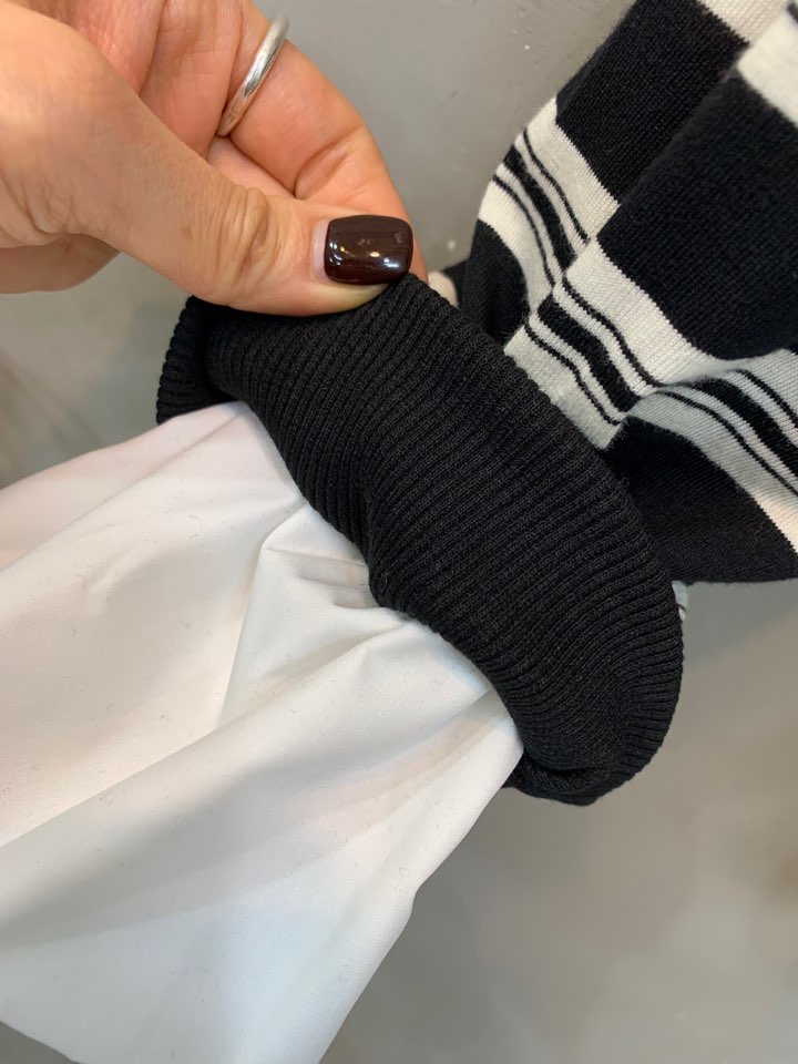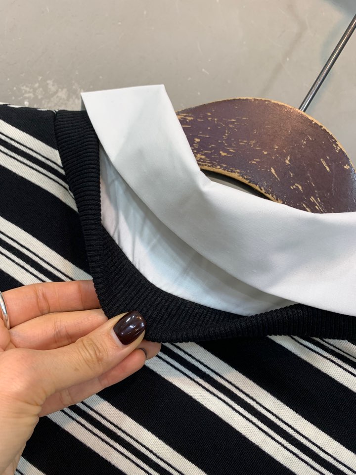 화이트 셔츠 카라와 버튼 디테일이 더해져