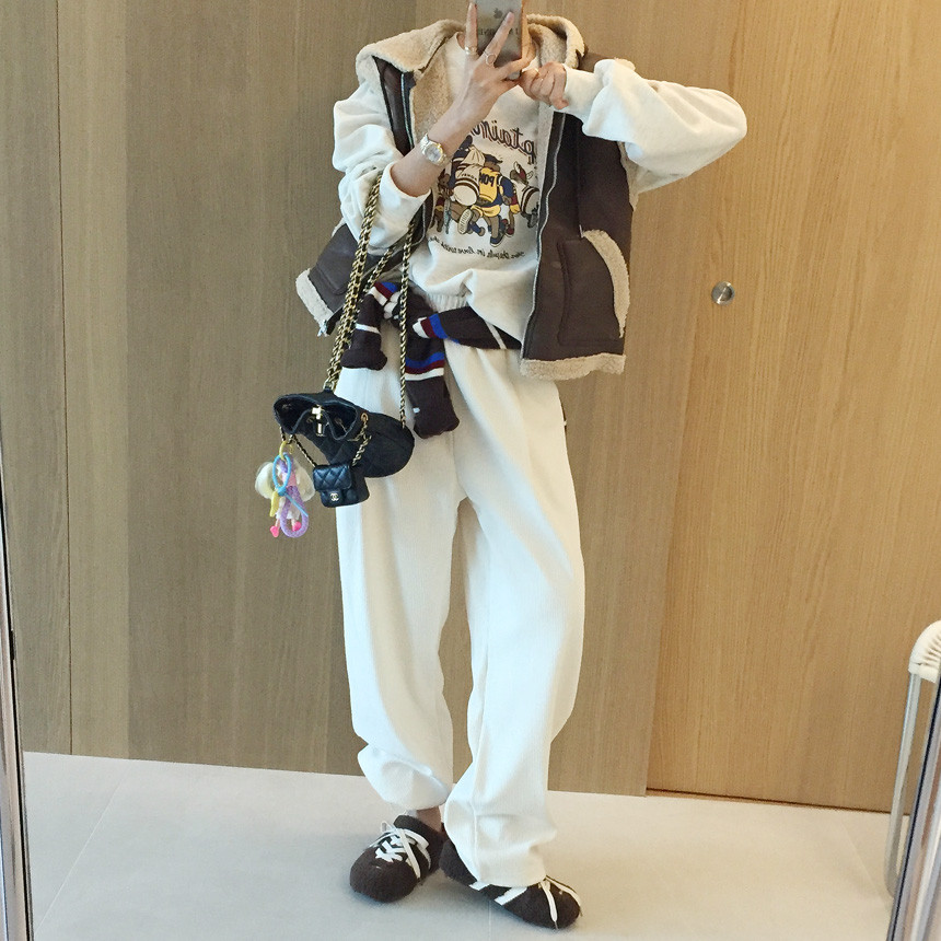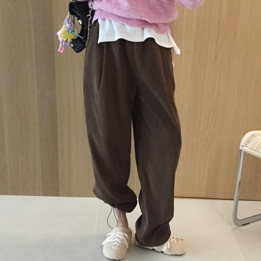 팬츠는 핀턱라인에 밑단은 스트링이 달린 제품으로