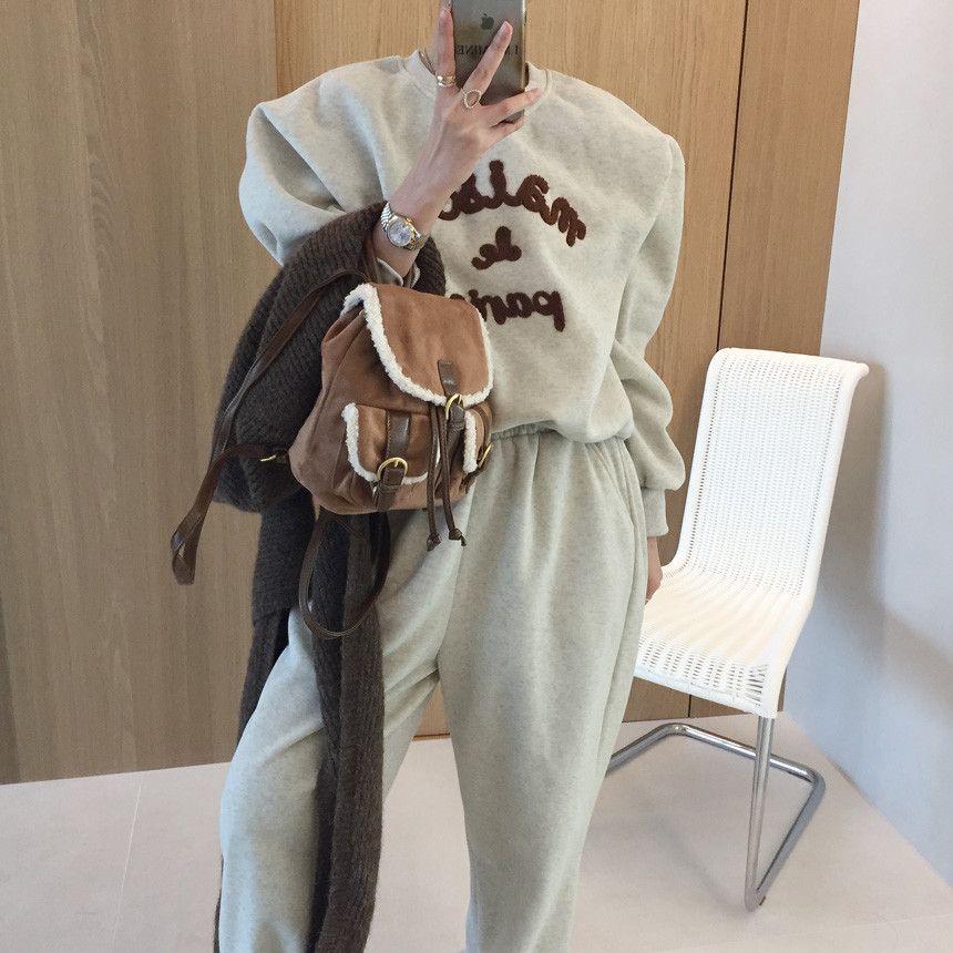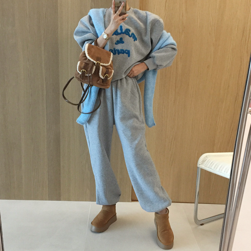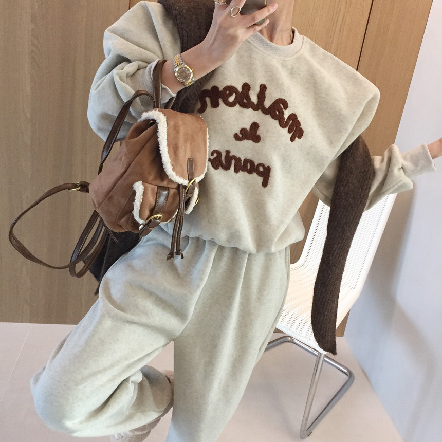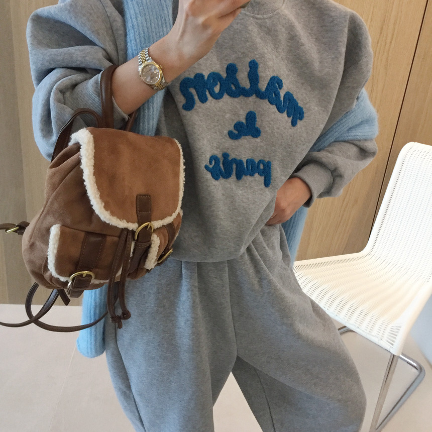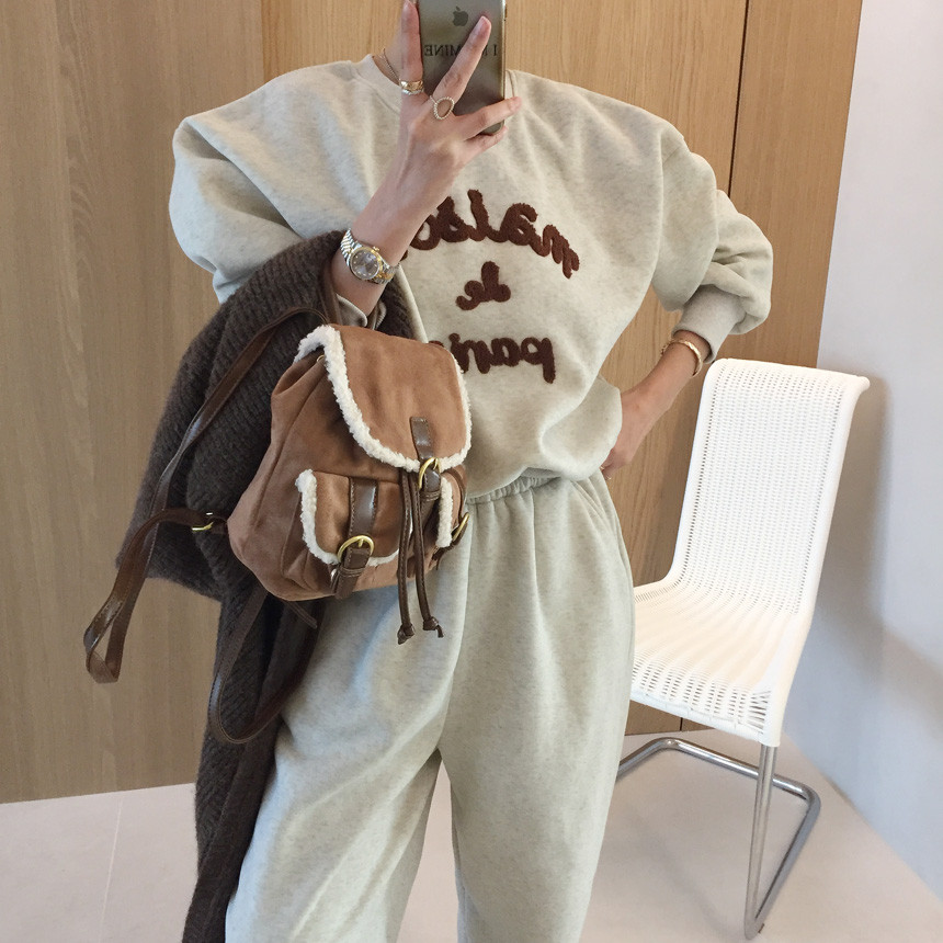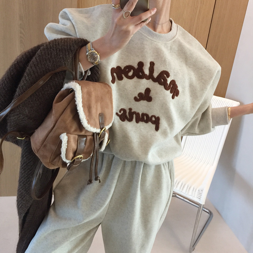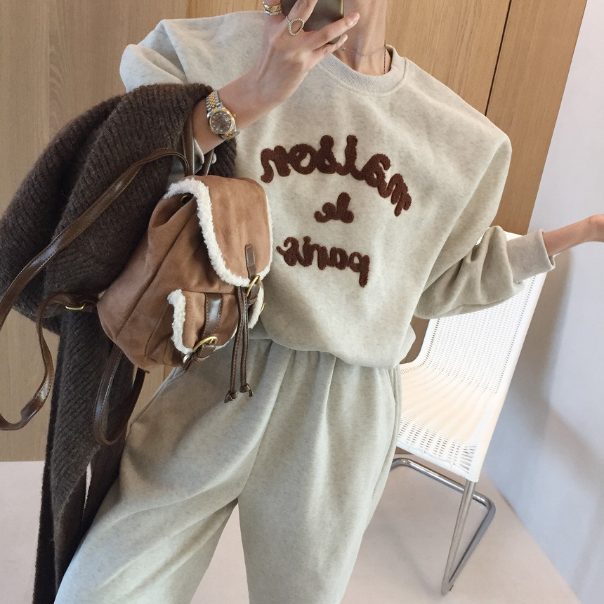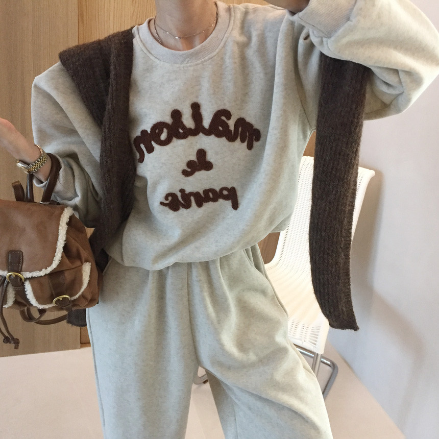 뽀글이 레터링 패치 기모 맨투맨 트레이닝 세트 가지고 왔어용~!