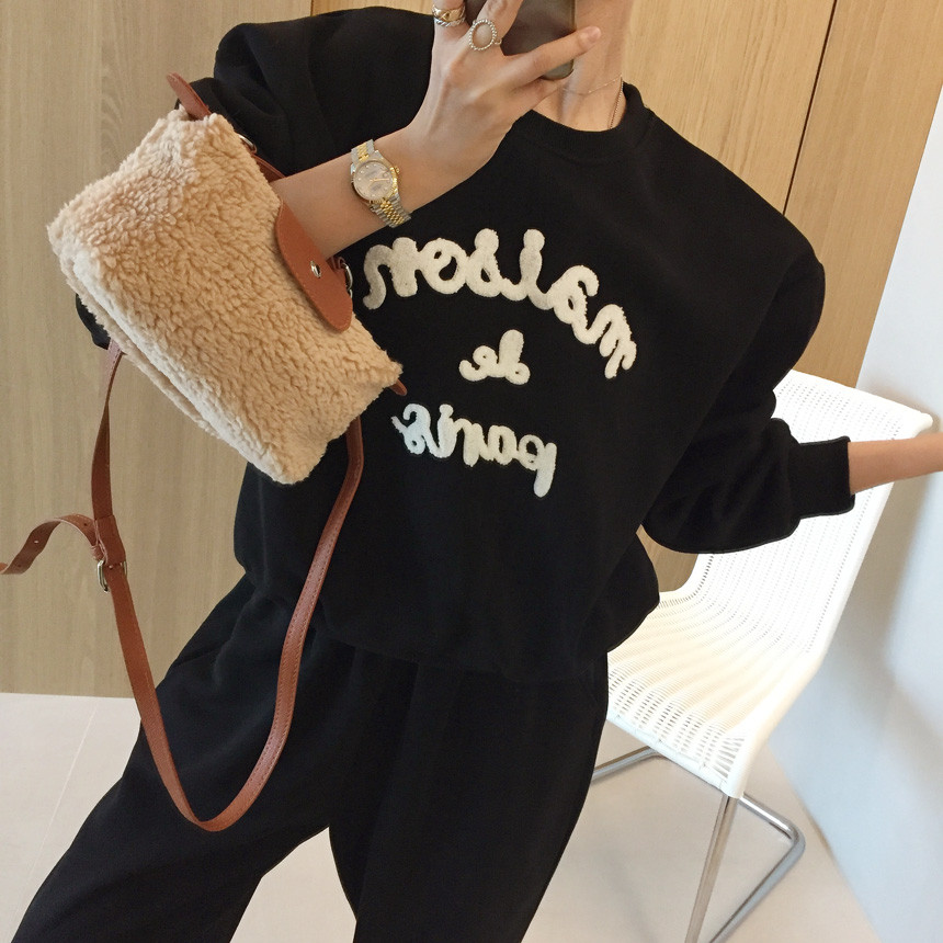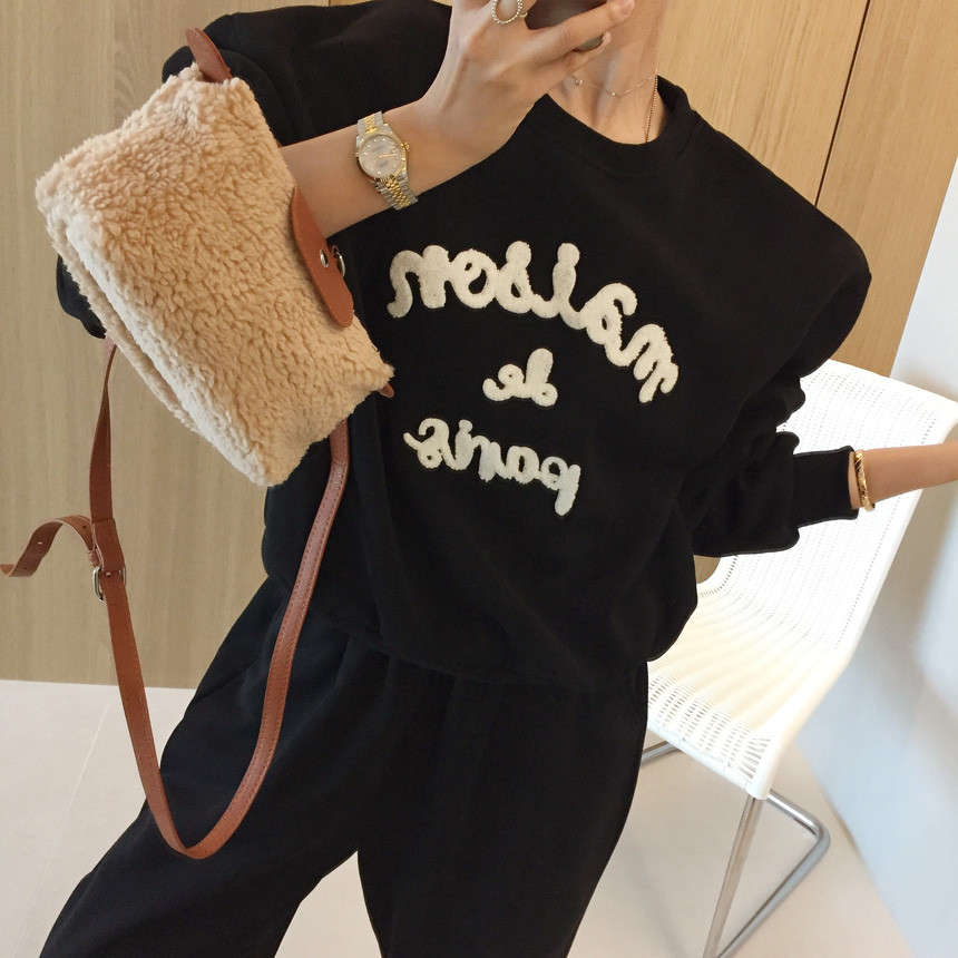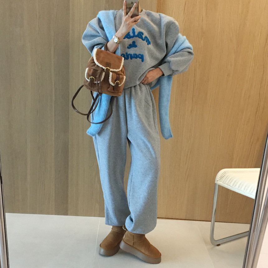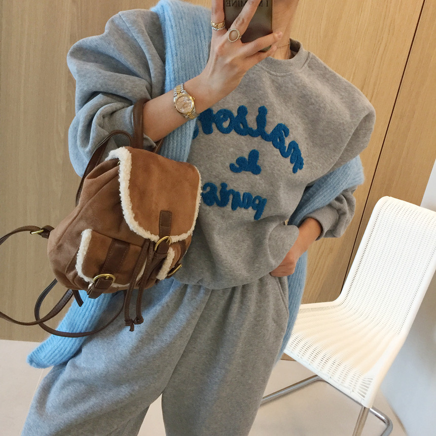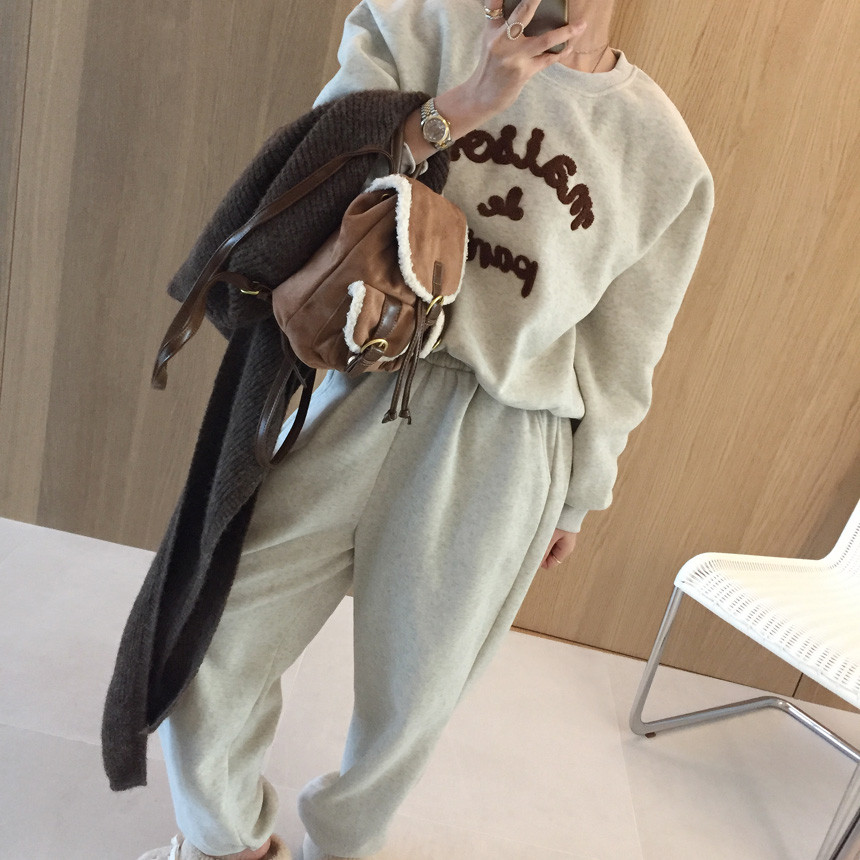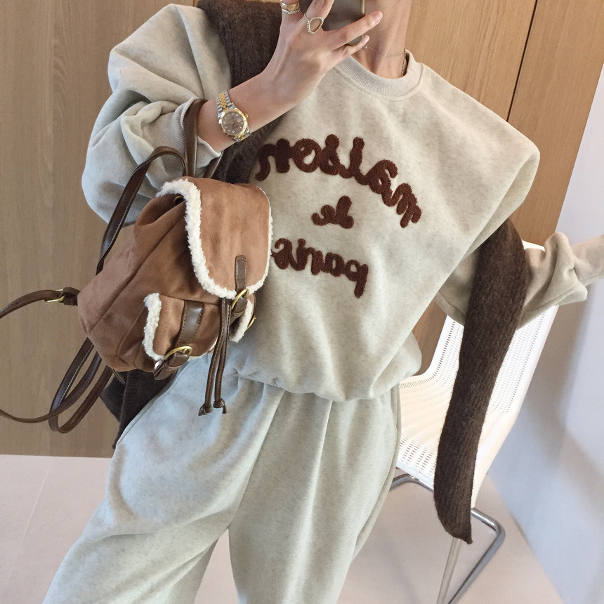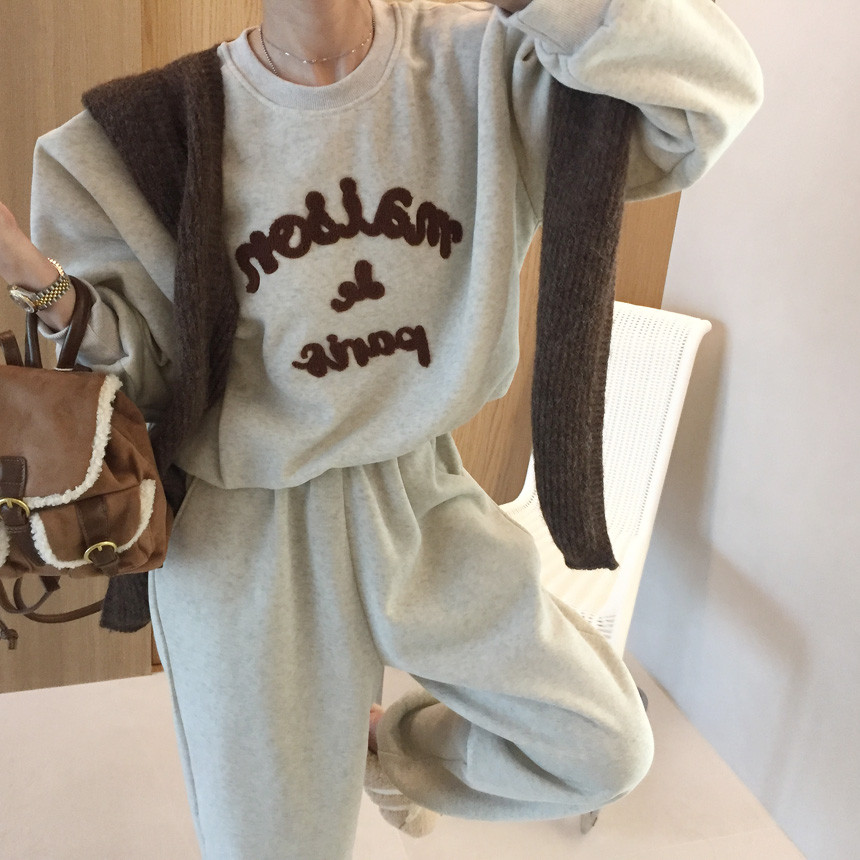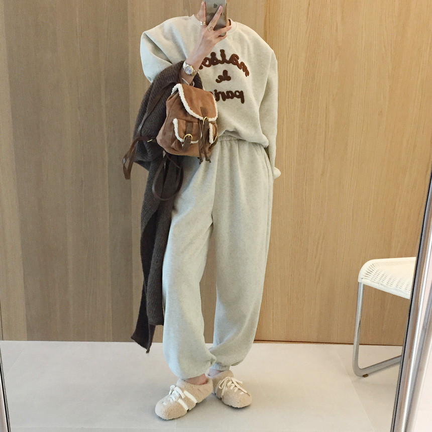 뽀글이 레터링 패치 기모 맨투맨 트레이닝 세트 가지고 왔어용~!