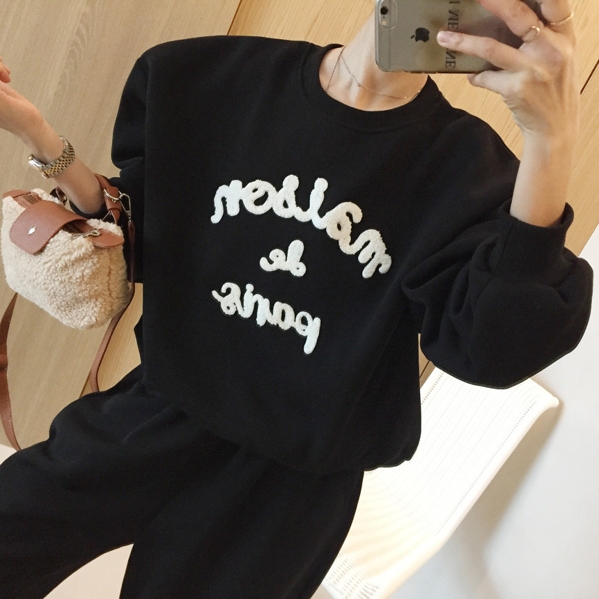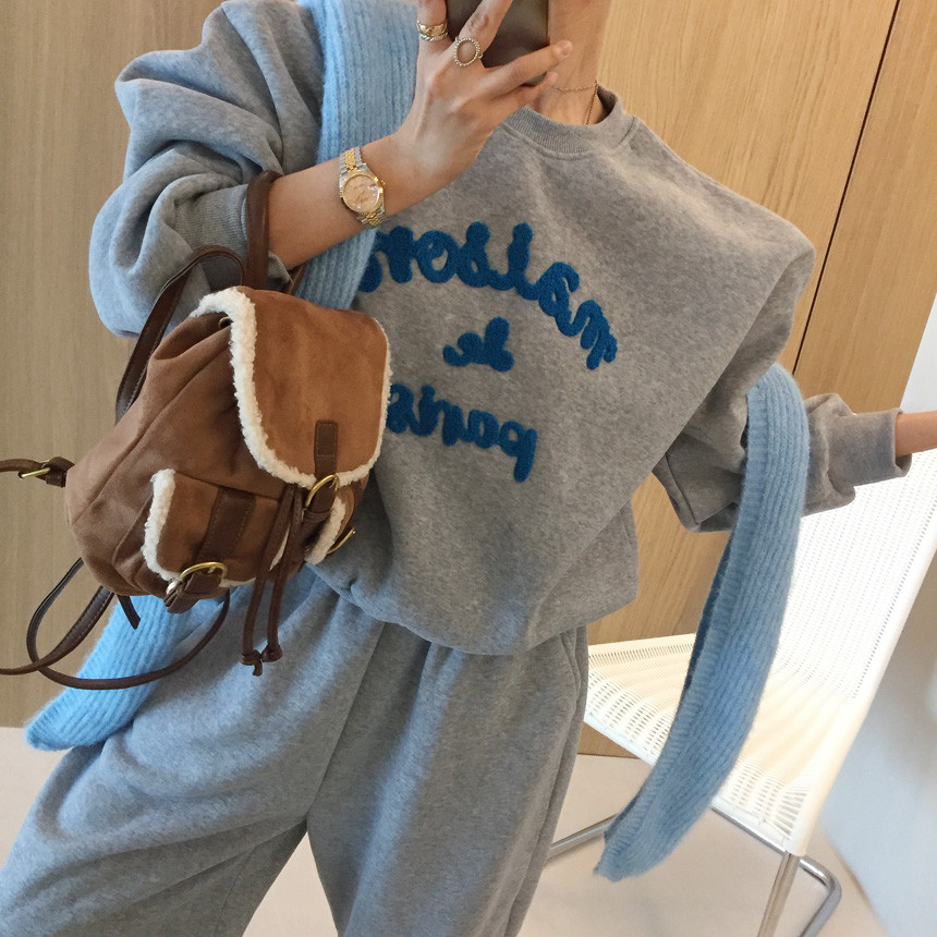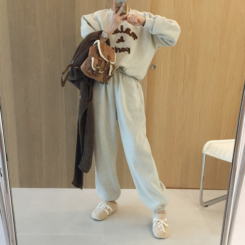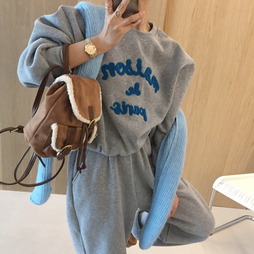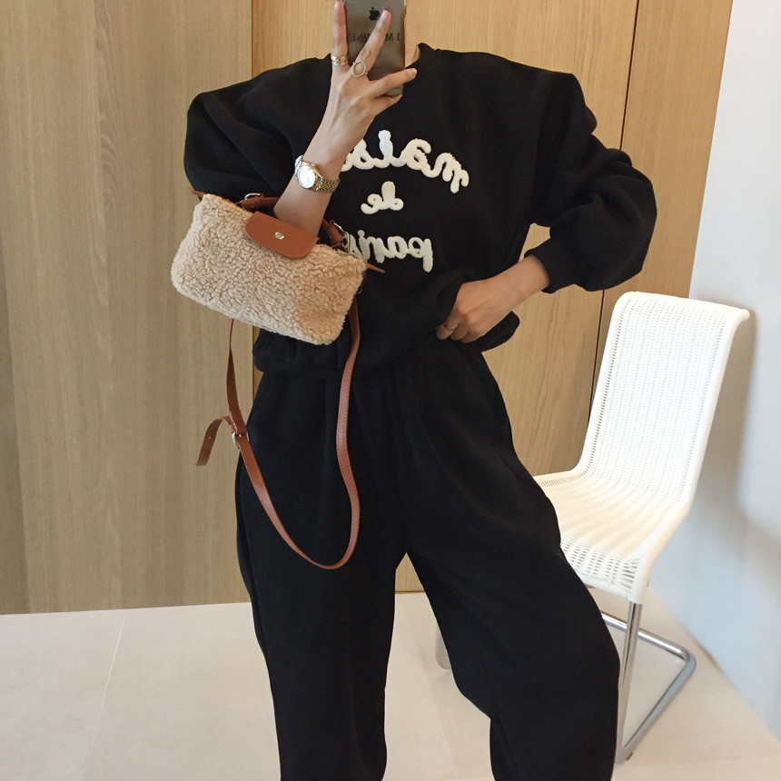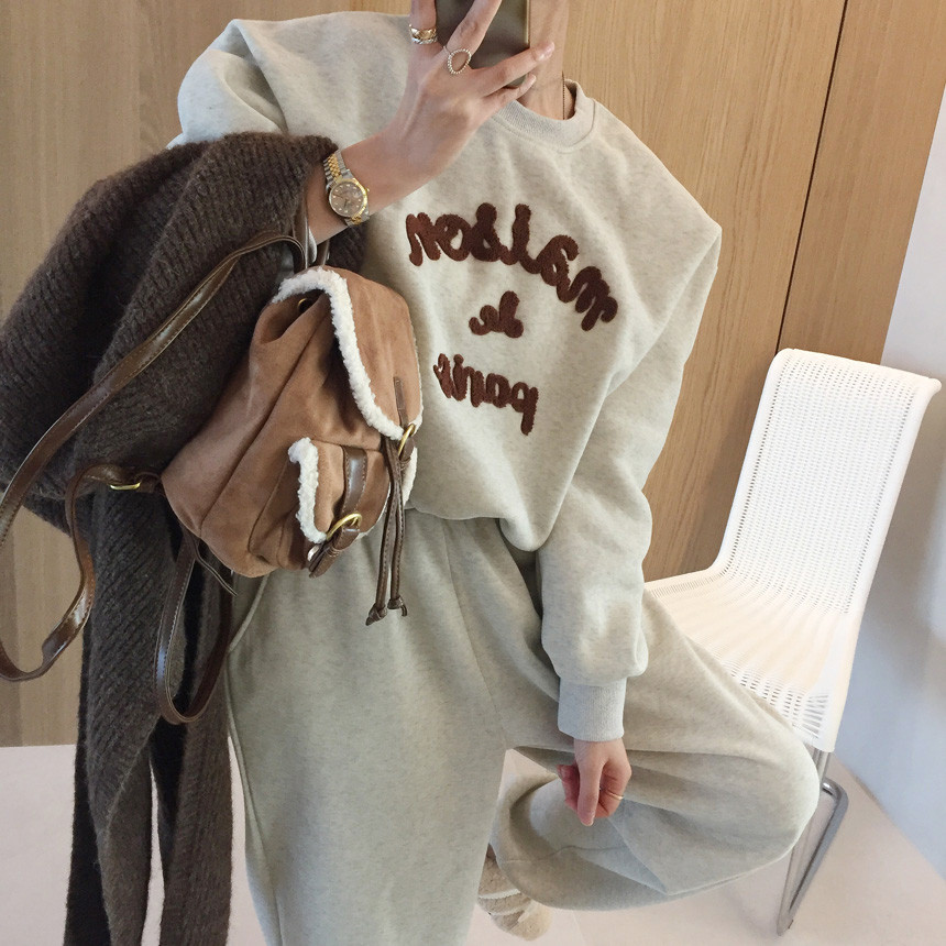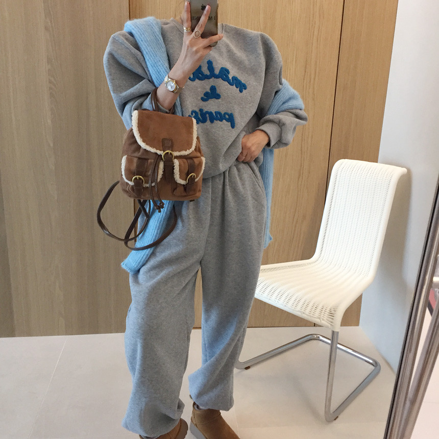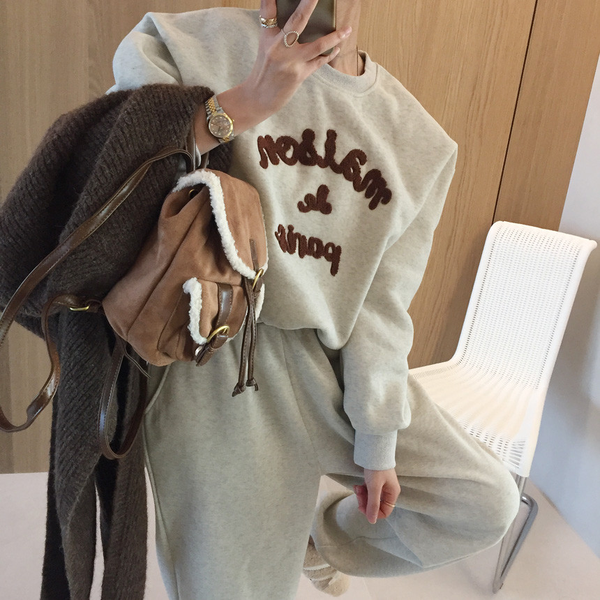 뽀글이 레터링 패치 기모 맨투맨 트레이닝 세트 가지고 왔어용~!