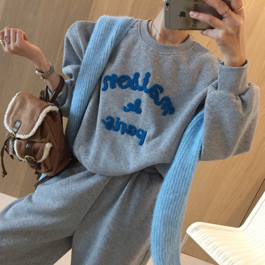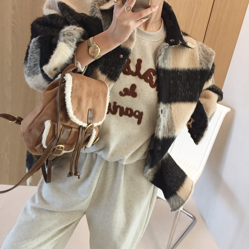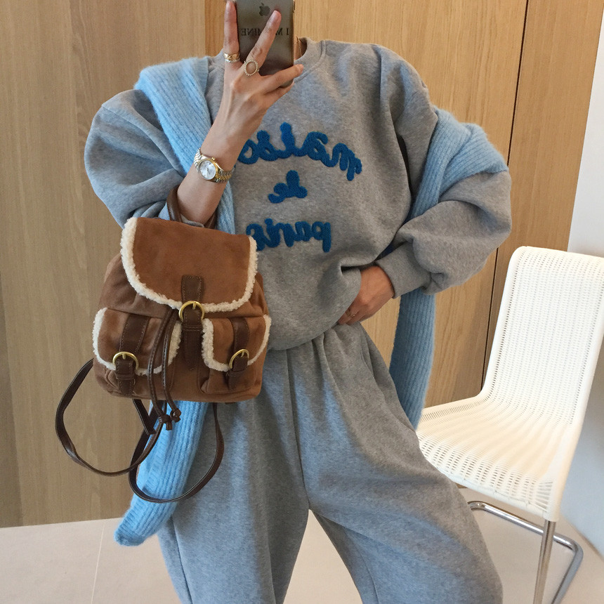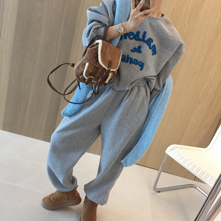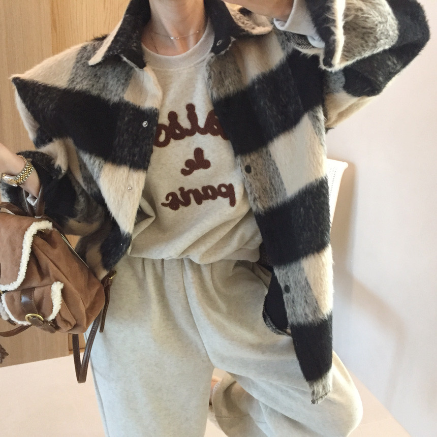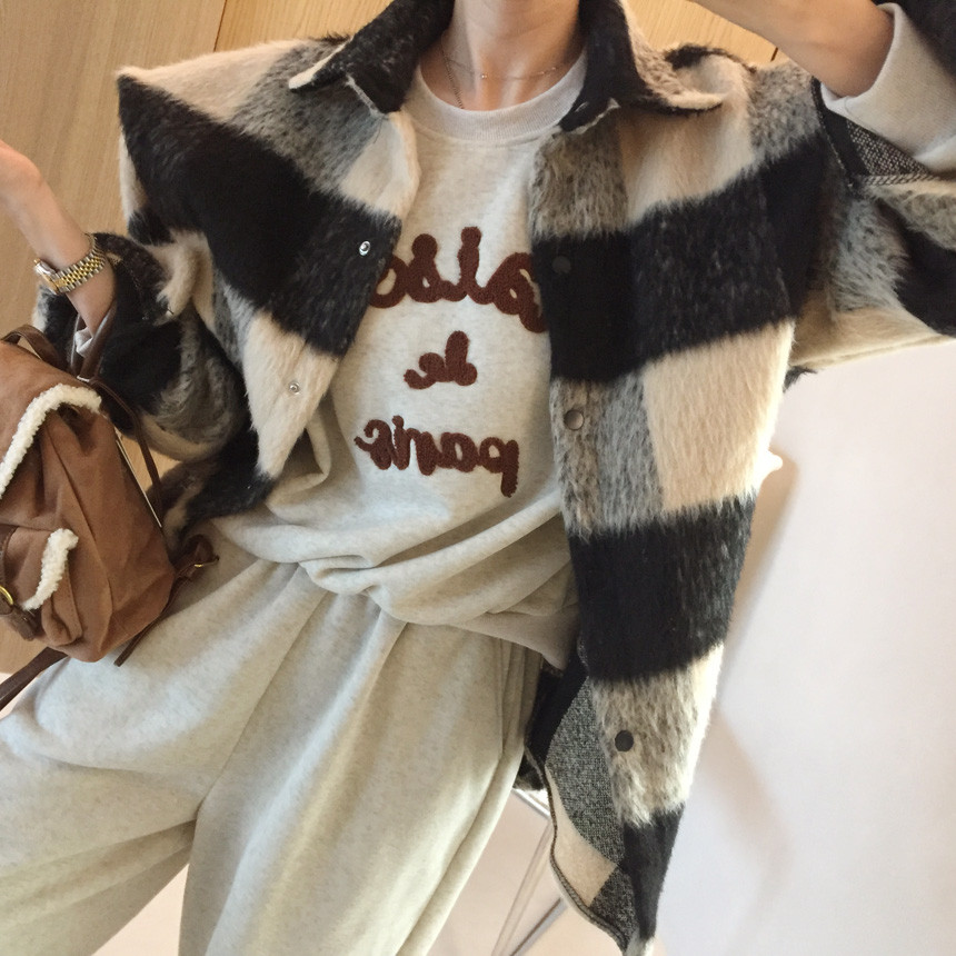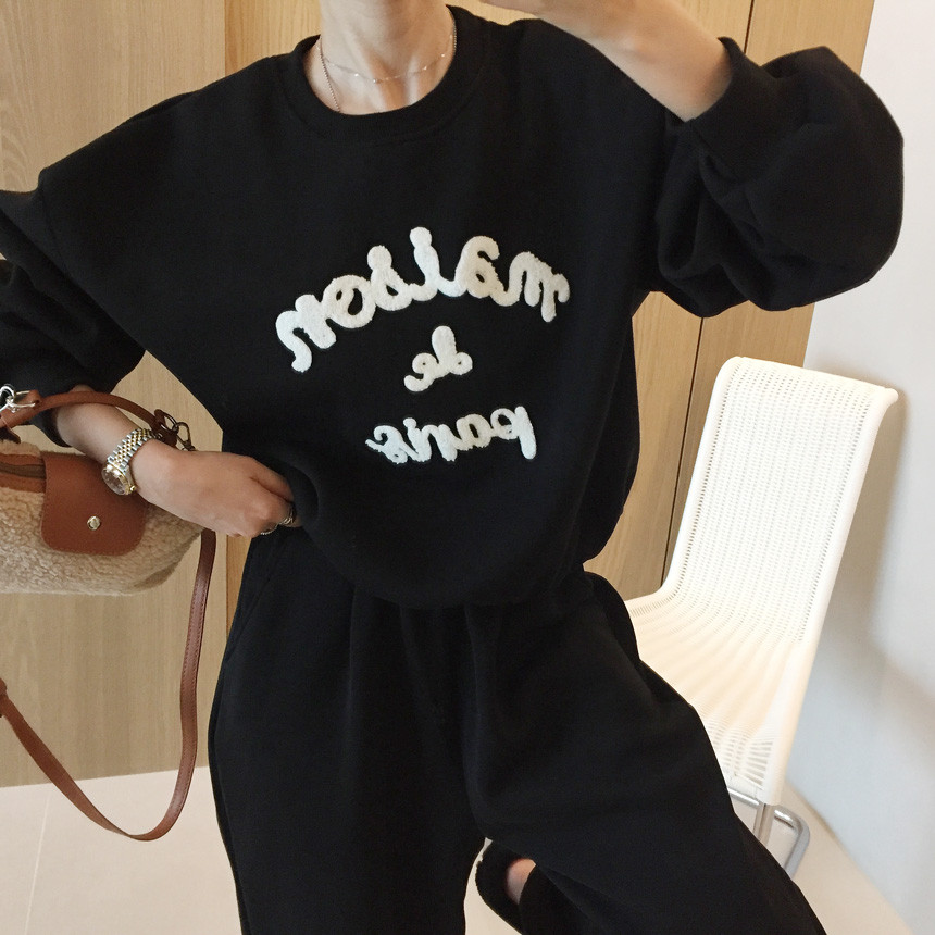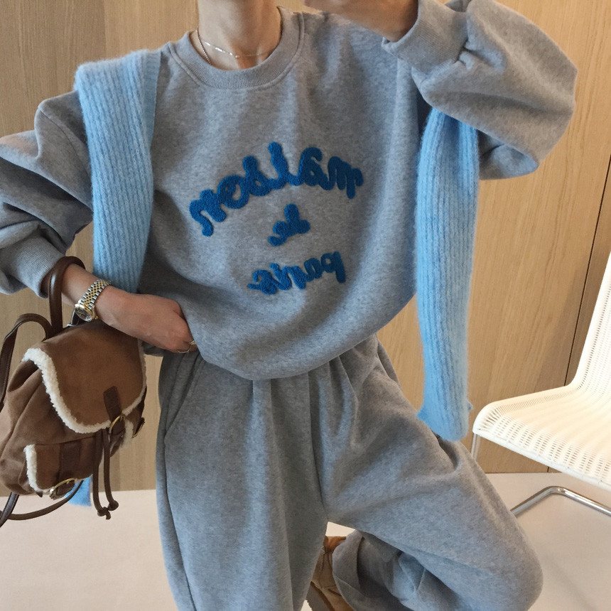뽀글이 레터링 패치 기모 맨투맨 트레이닝 세트 가지고 왔어용~!