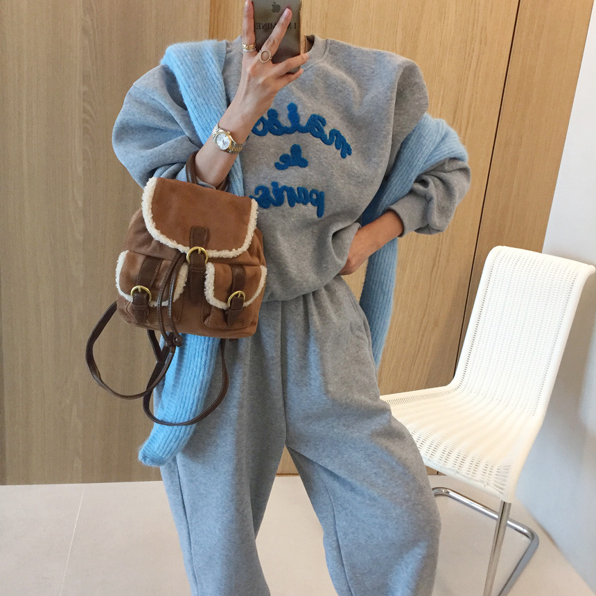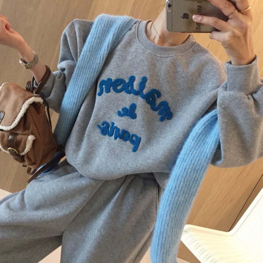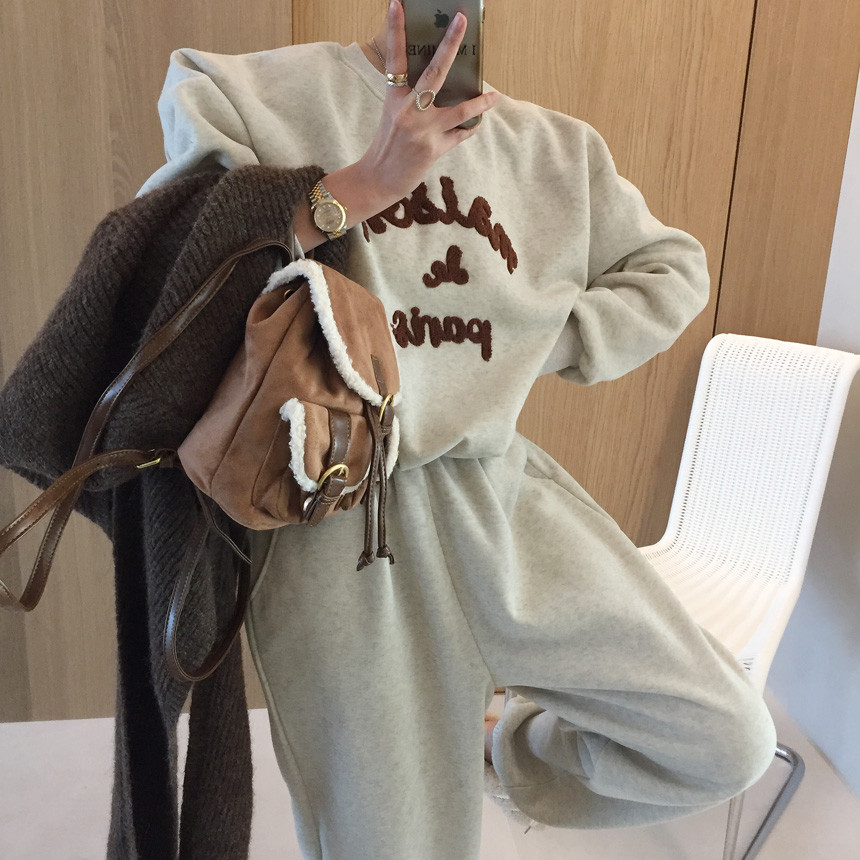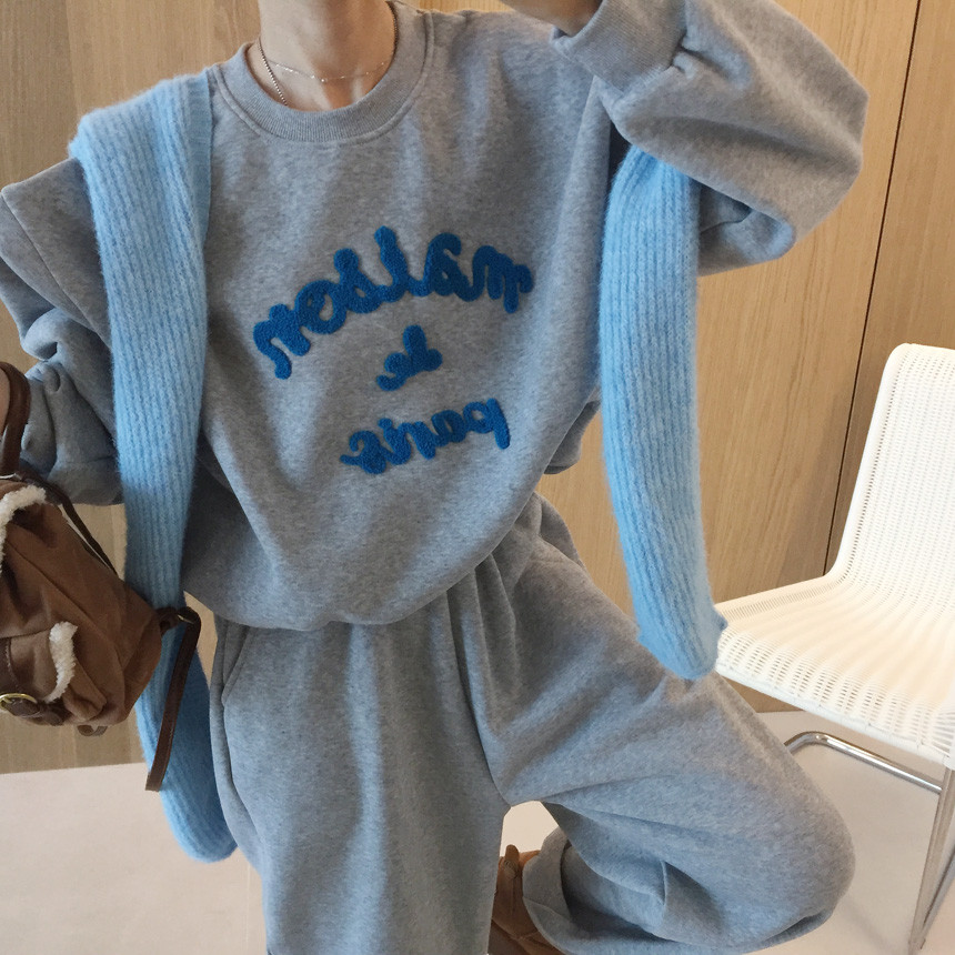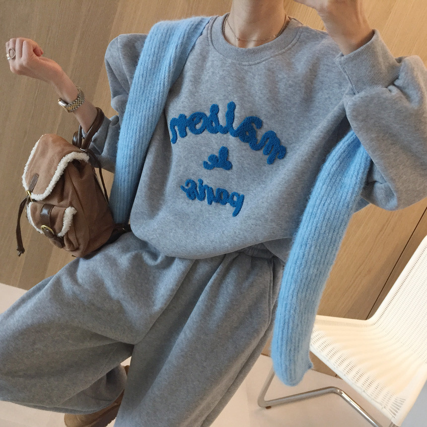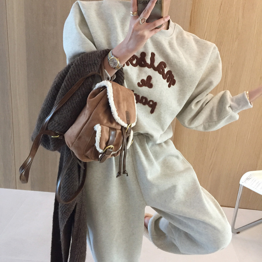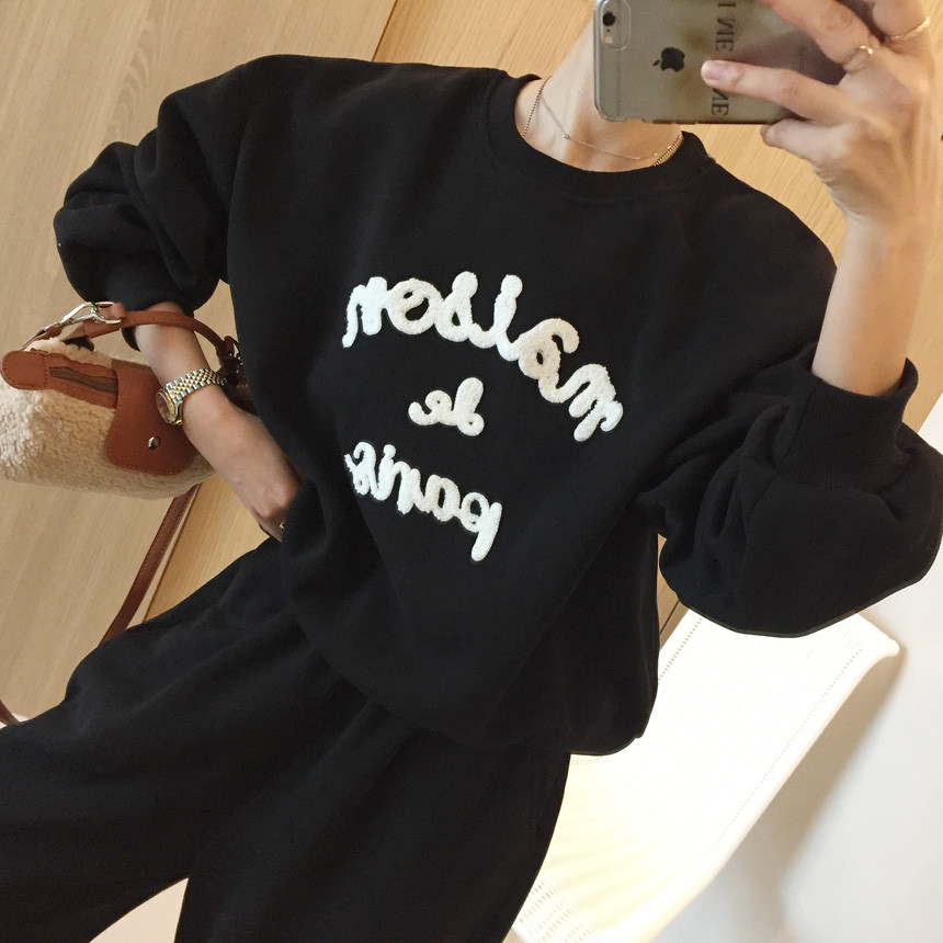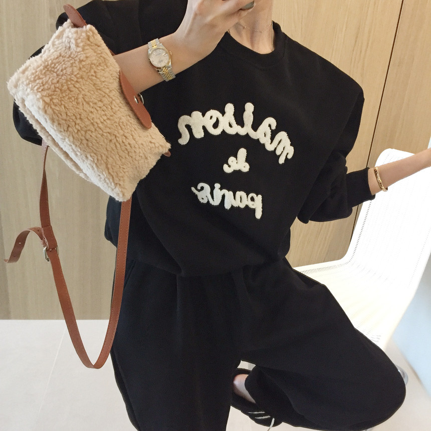 뽀글이 레터링 패치 기모 맨투맨 트레이닝 세트 가지고 왔어용~!