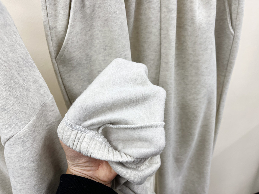 팬츠 또한 신축성 좋은 허리밴딩과 밑단 시보리로