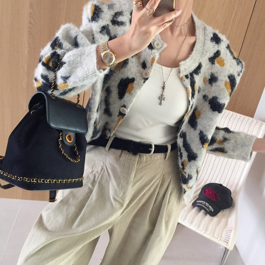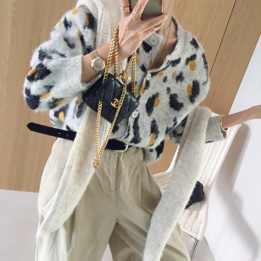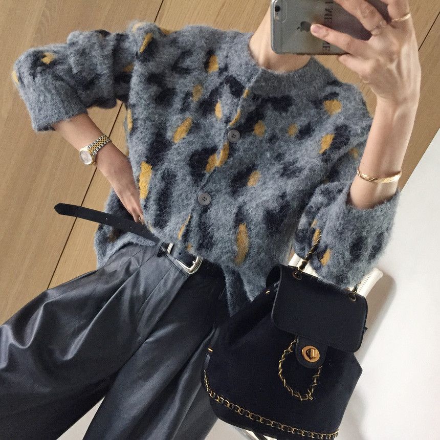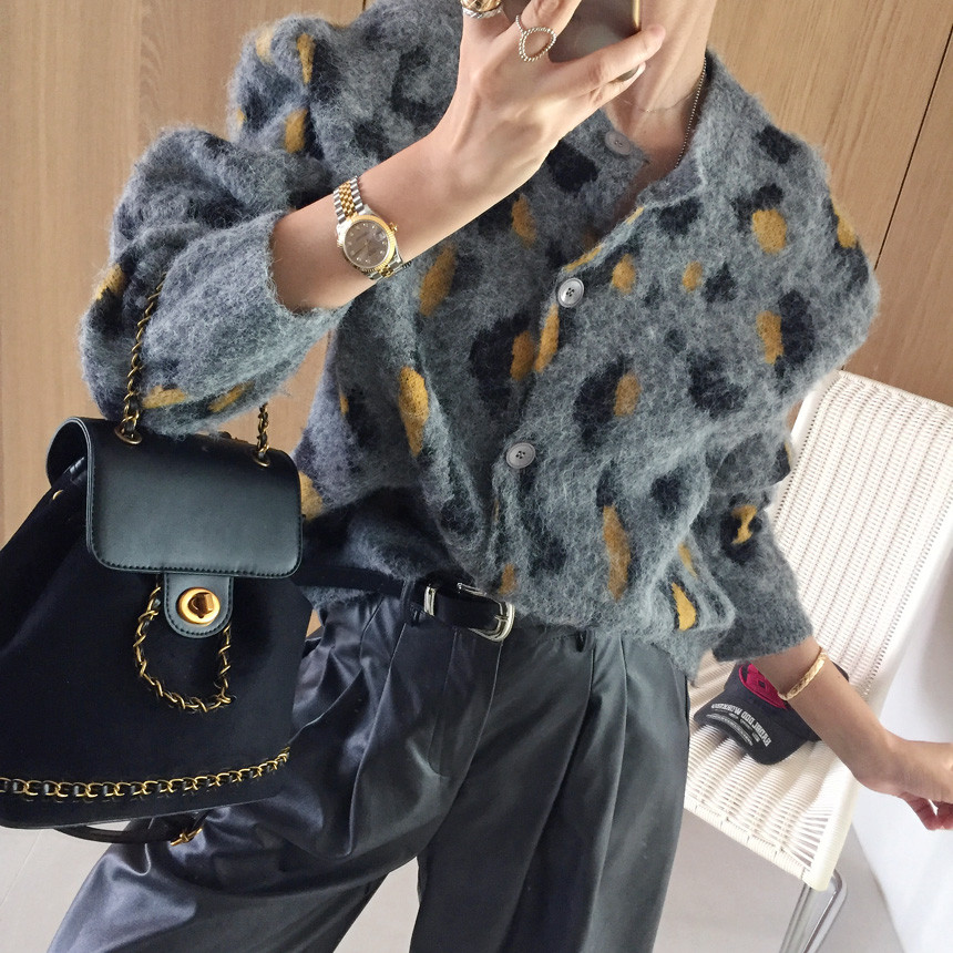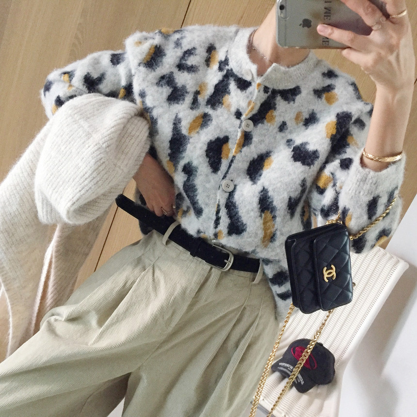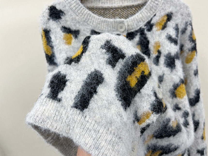 호피 패턴 라운드 긴팔 니트가디건 보여드릴게용~