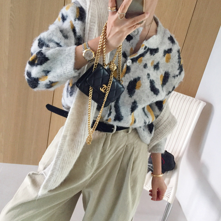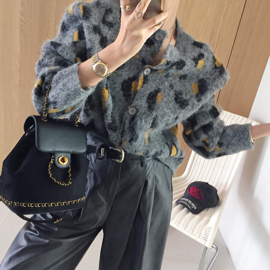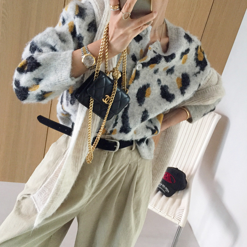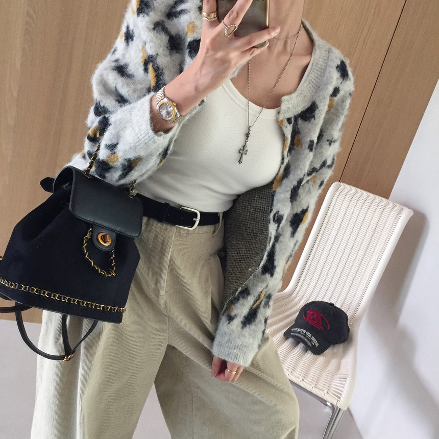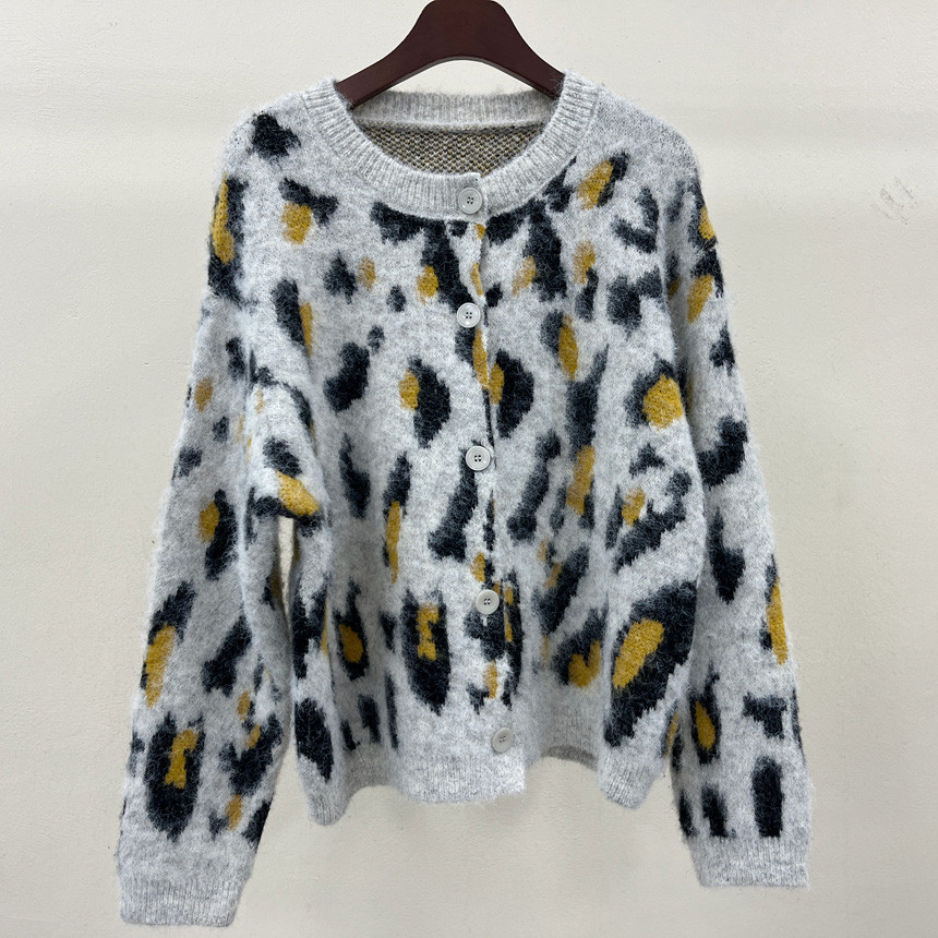 호피 패턴 라운드 긴팔 니트가디건 보여드릴게용~
