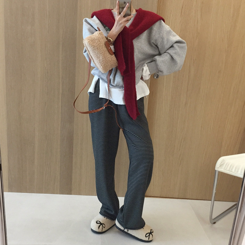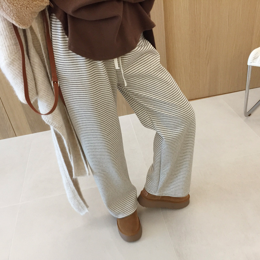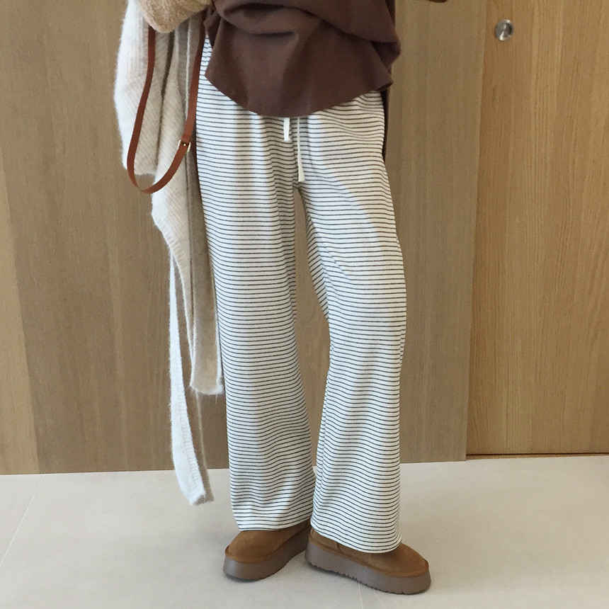 여성스러운 무드의 피치기모 융 밍크 밴딩 와이드 일자 팬츠 소개드릴게요~!