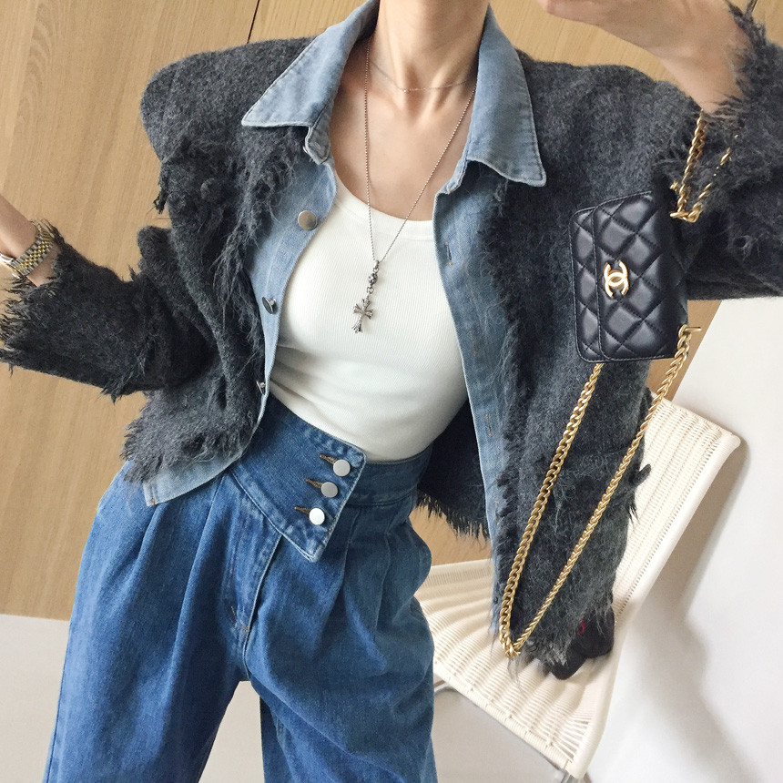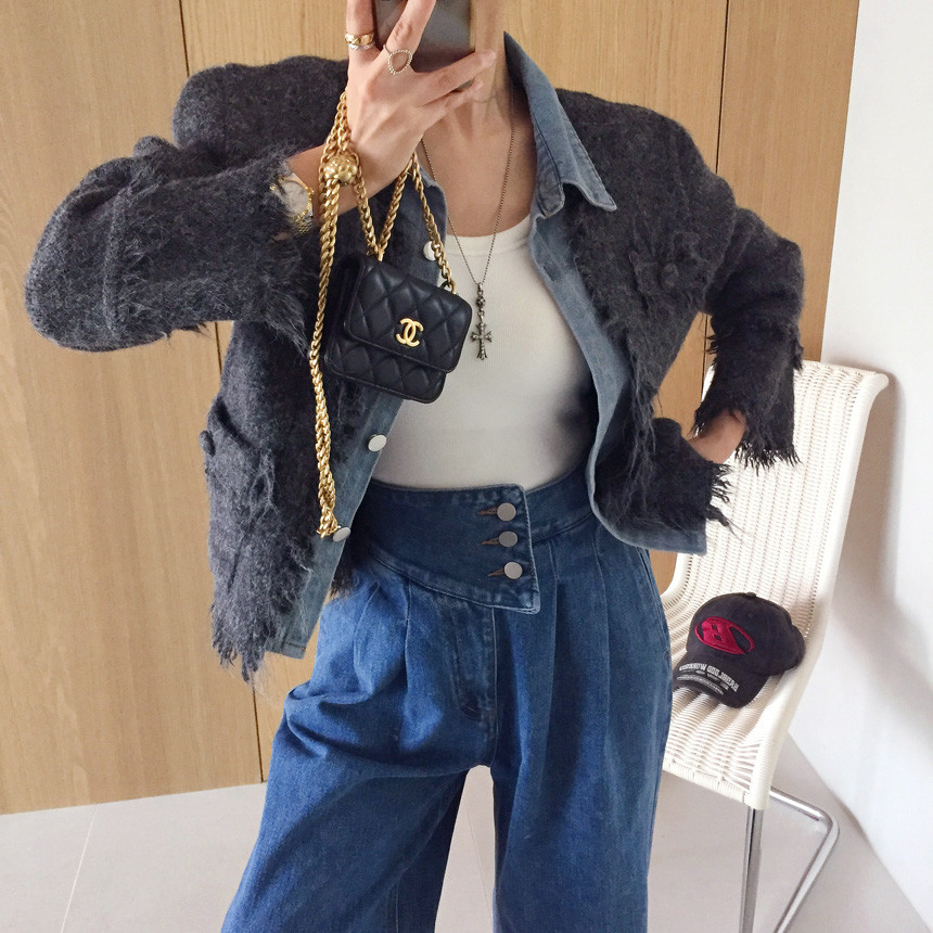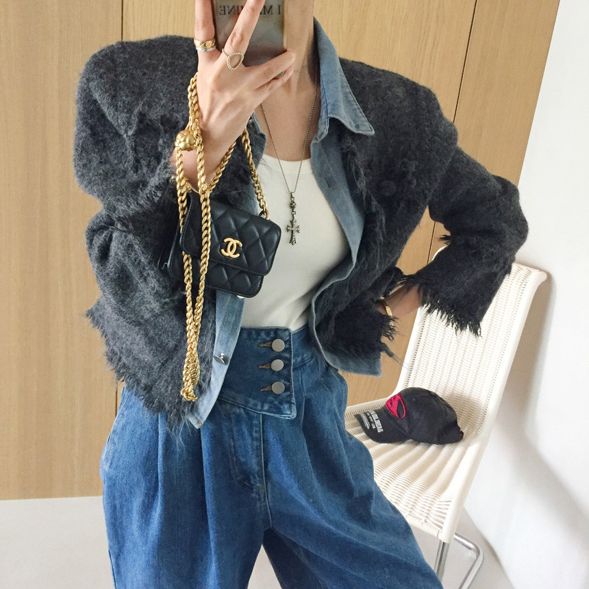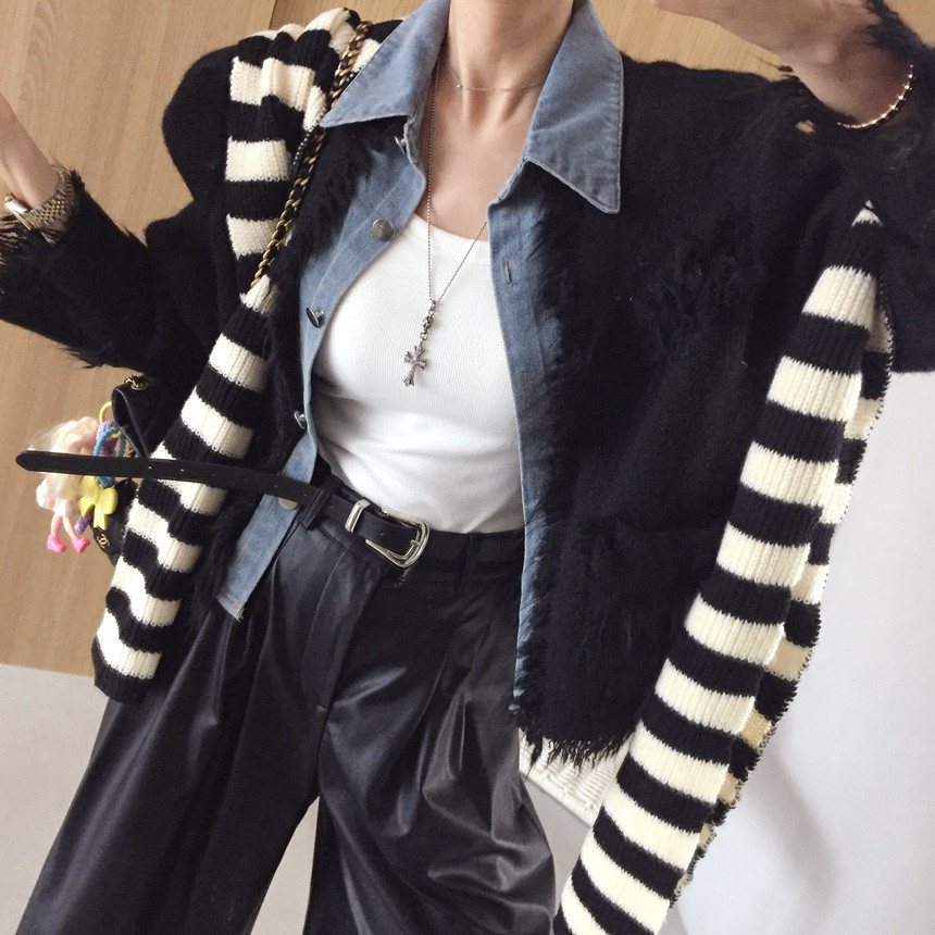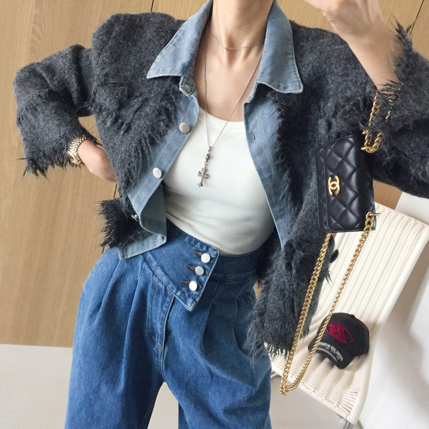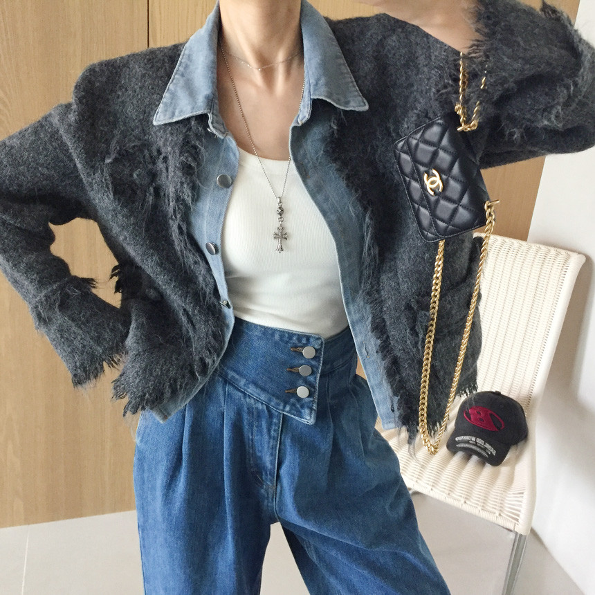 데님 레이어드 트위드 수술 니트자켓 소개해드릴께요 :)