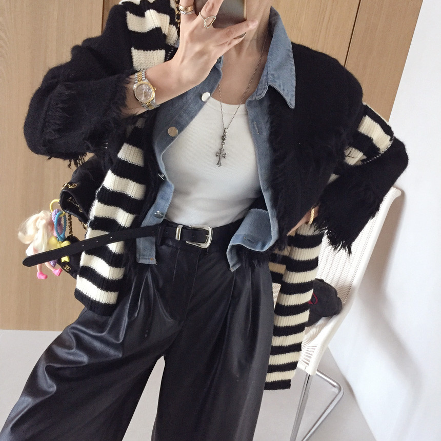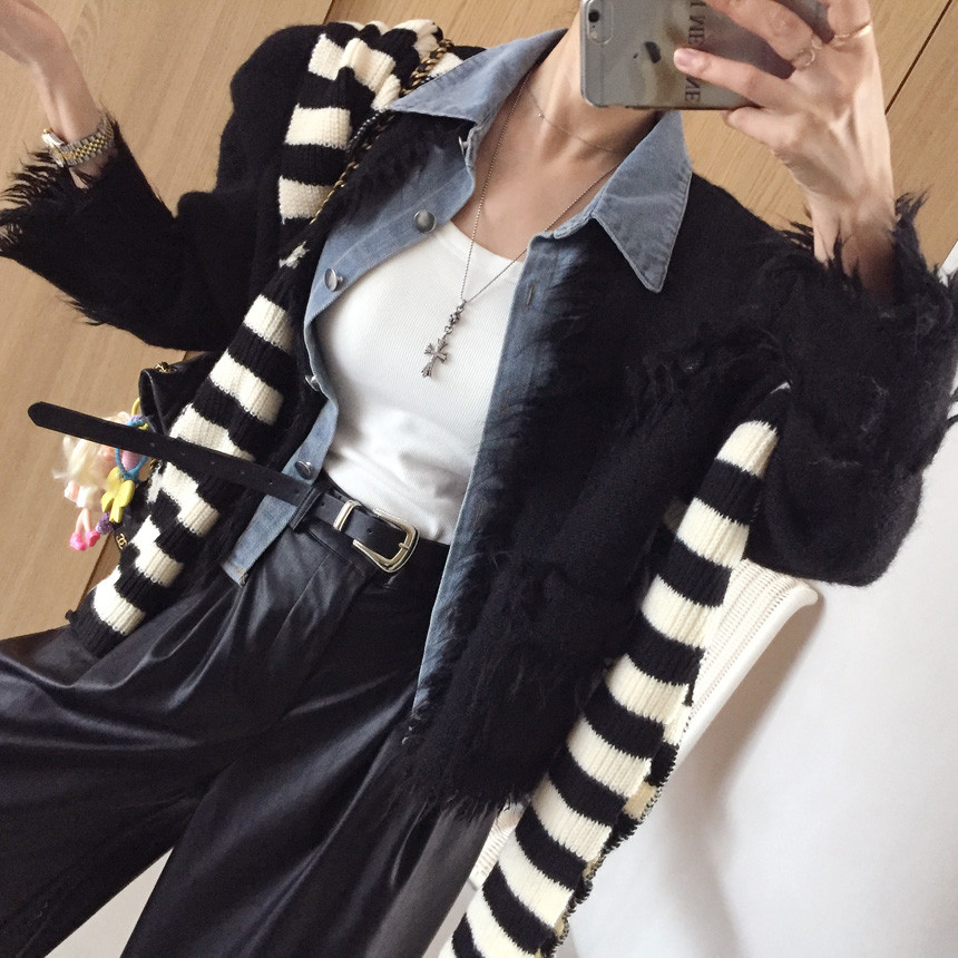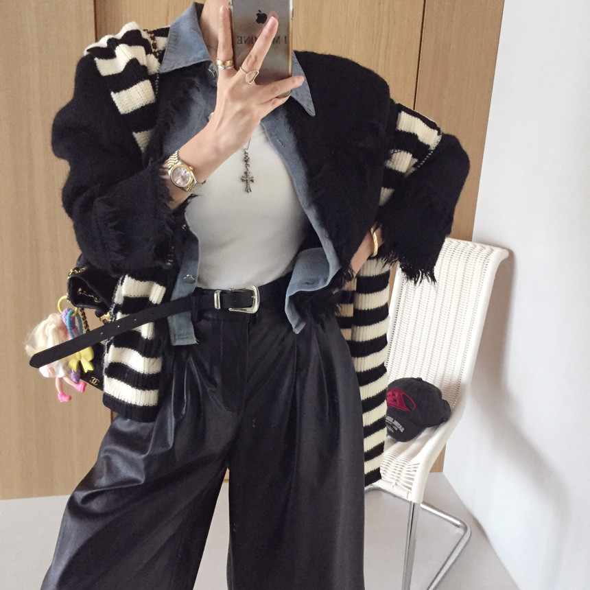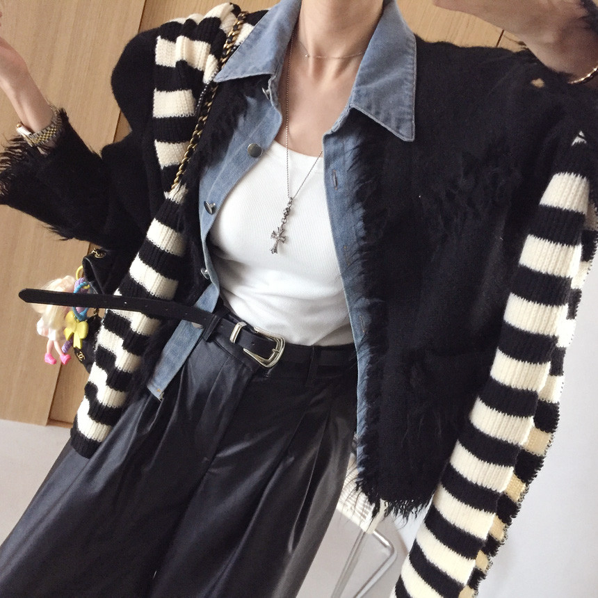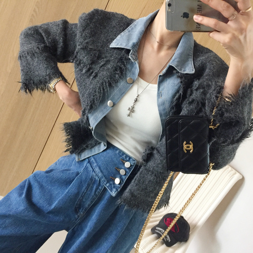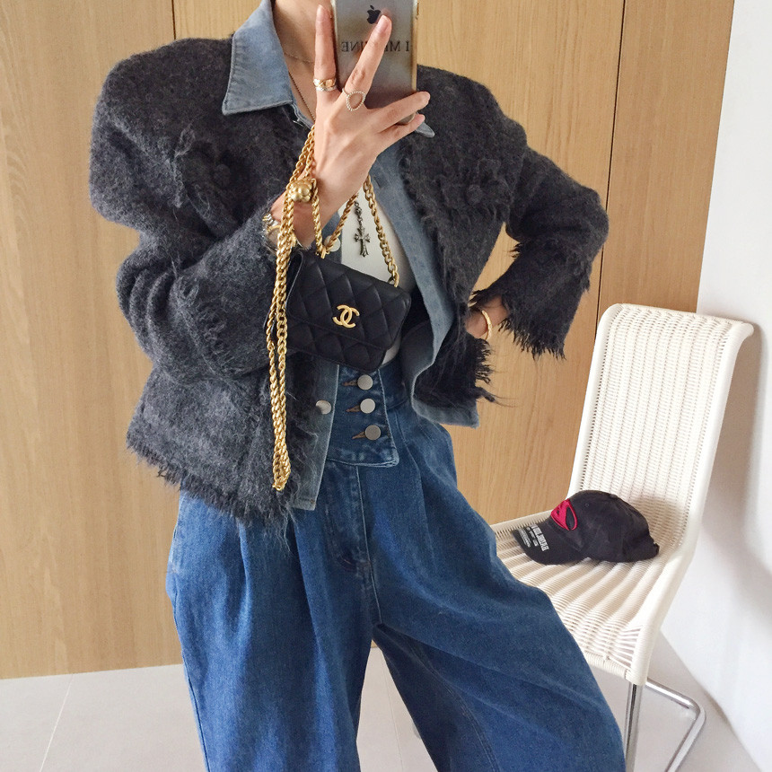 데님 레이어드 트위드 수술 니트자켓 소개해드릴께요 :)