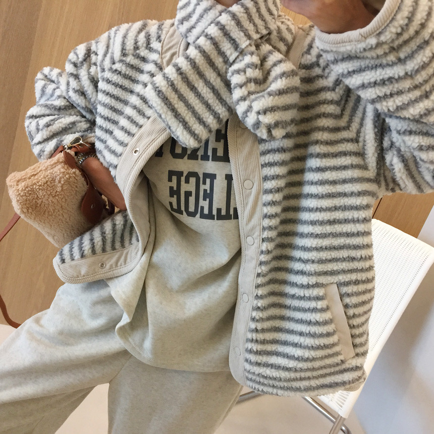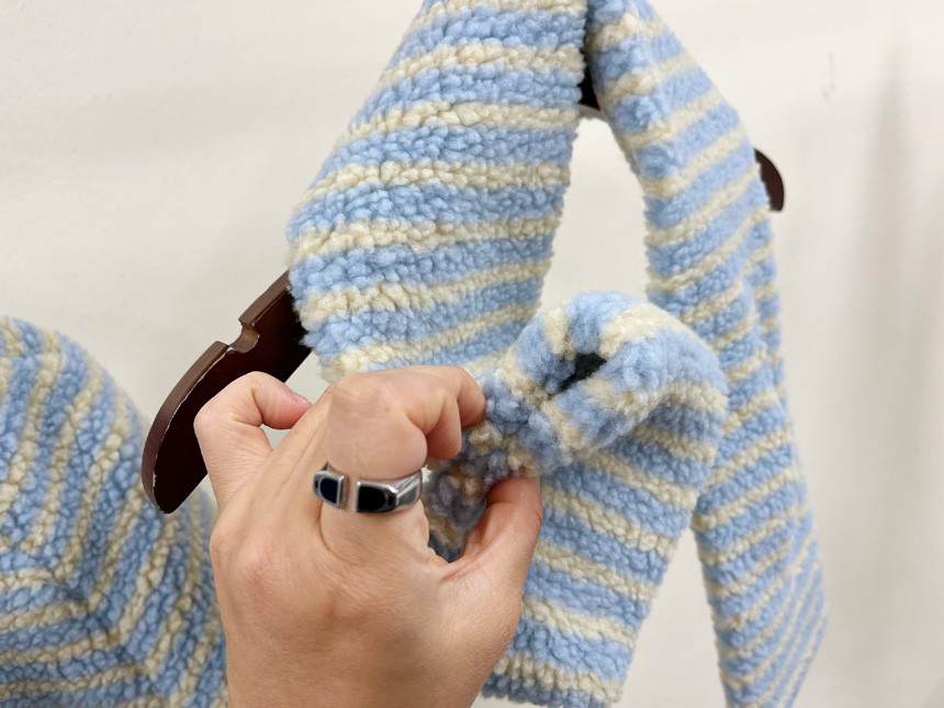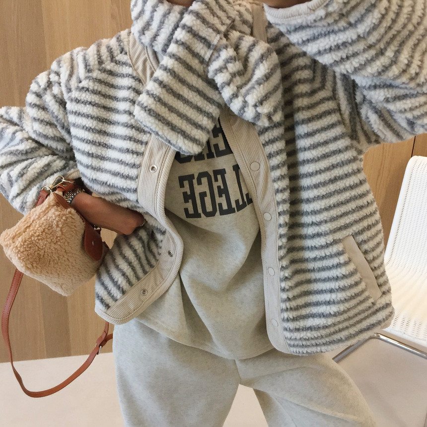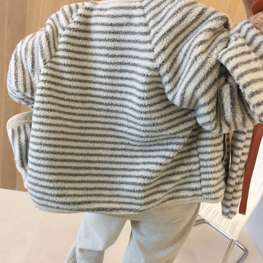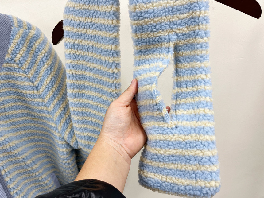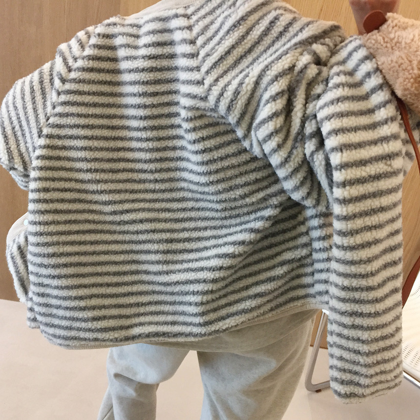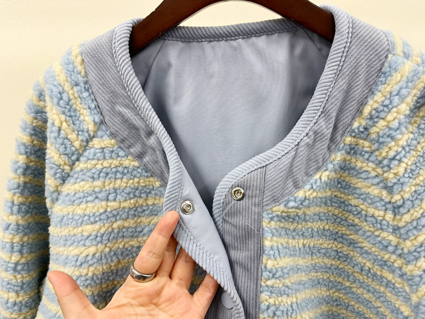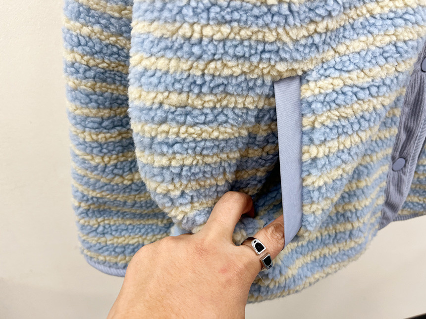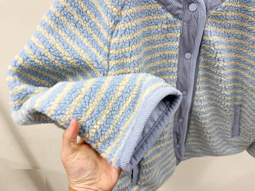 또다른 쪽은 배색 스트라이프 패턴 양털 뽀글이