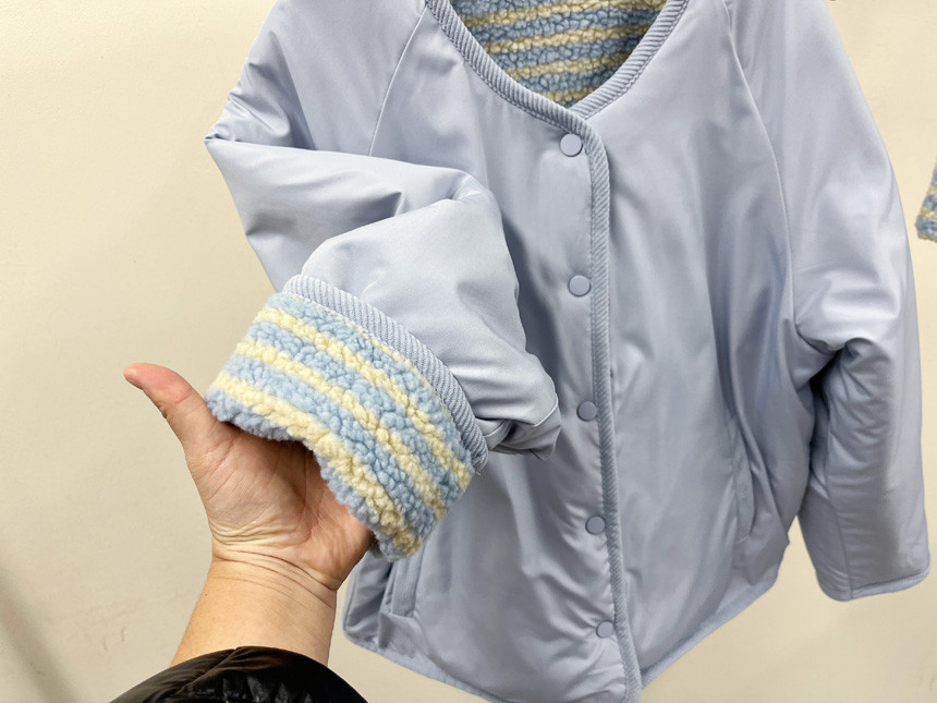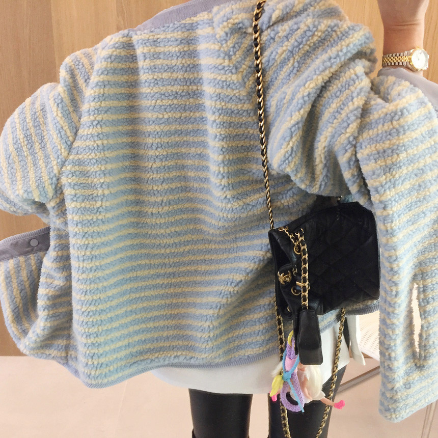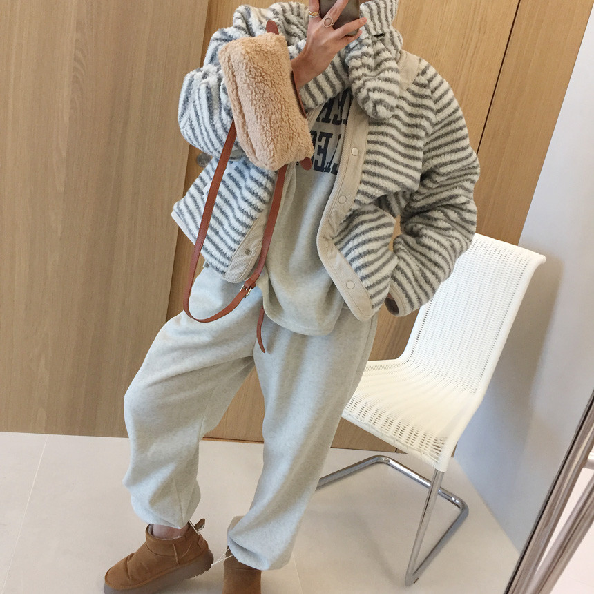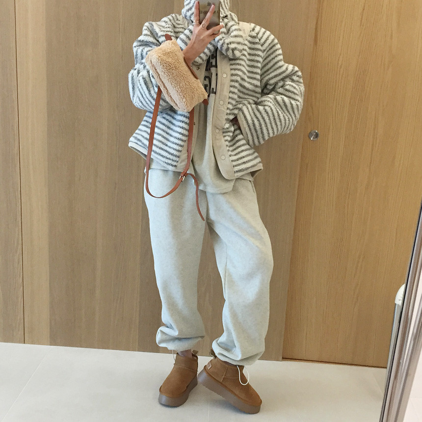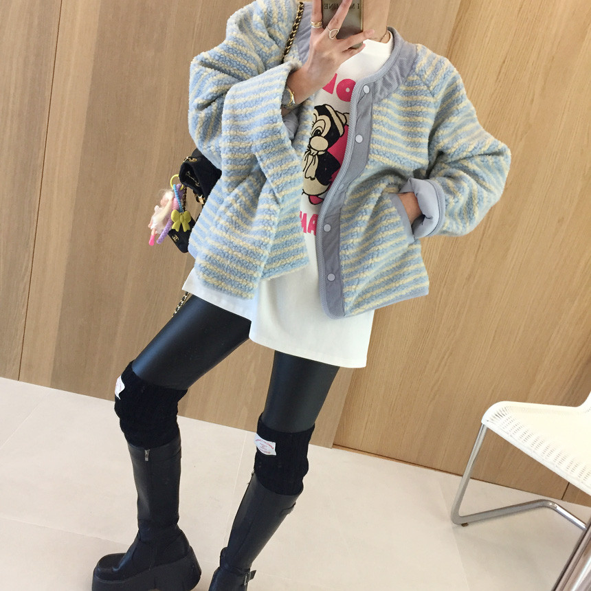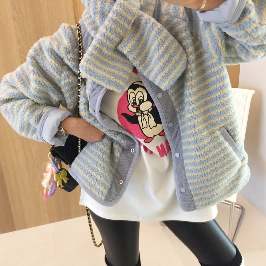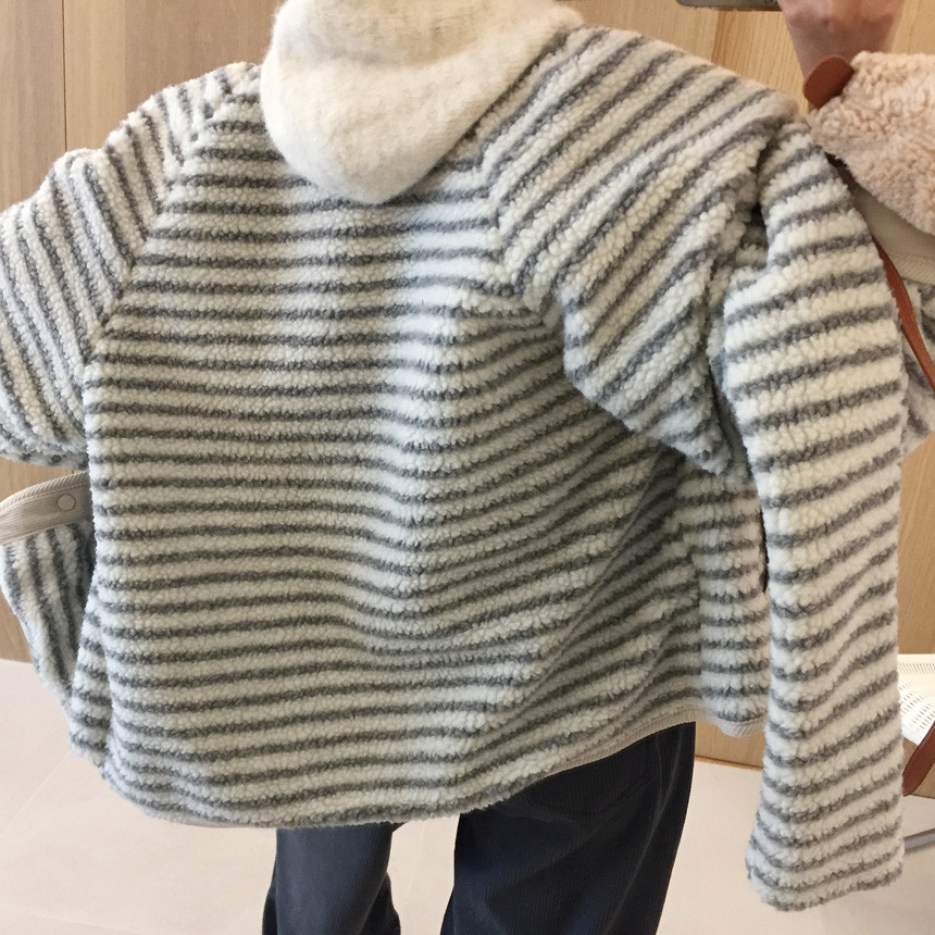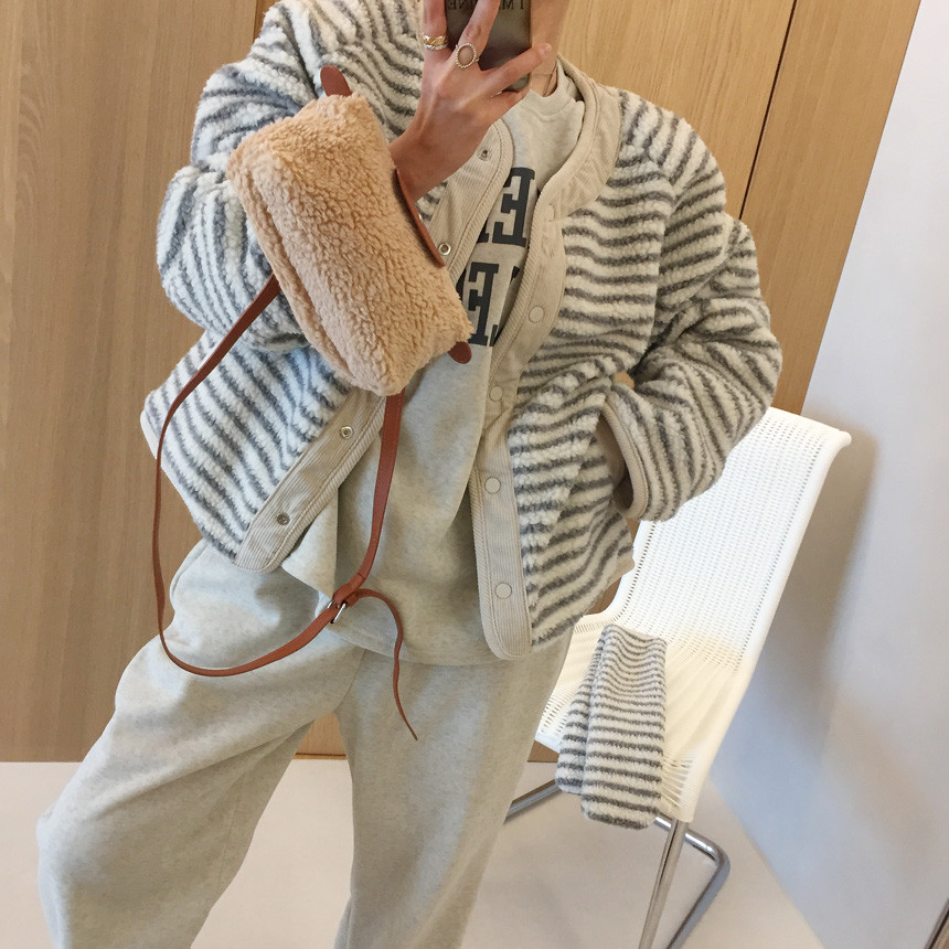 또다른 쪽은 배색 스트라이프 패턴 양털 뽀글이