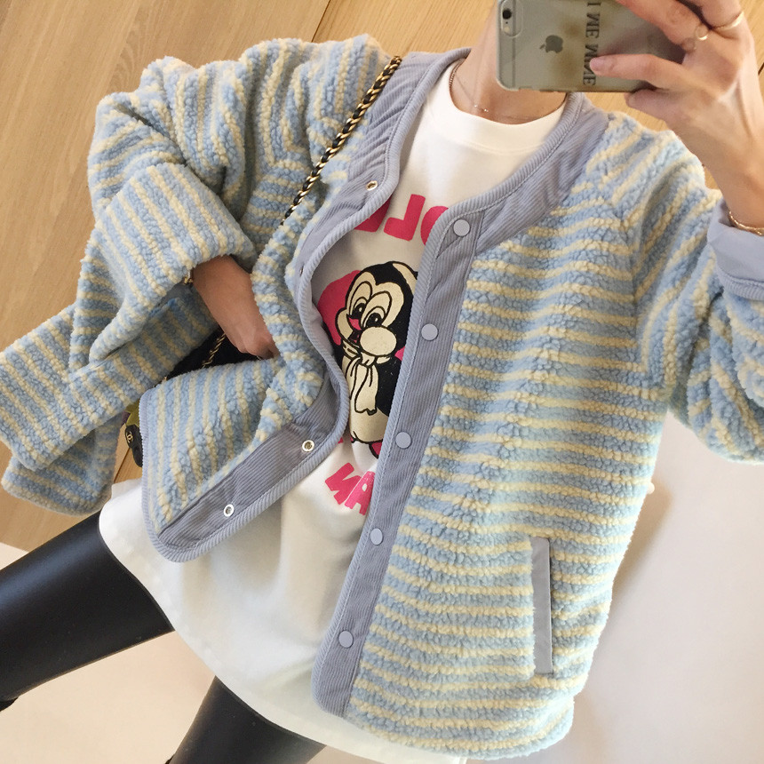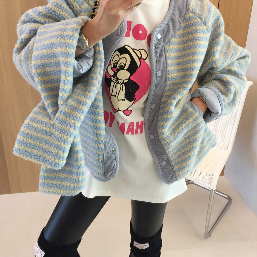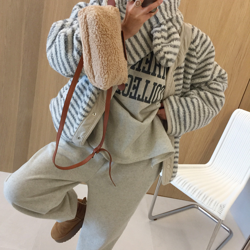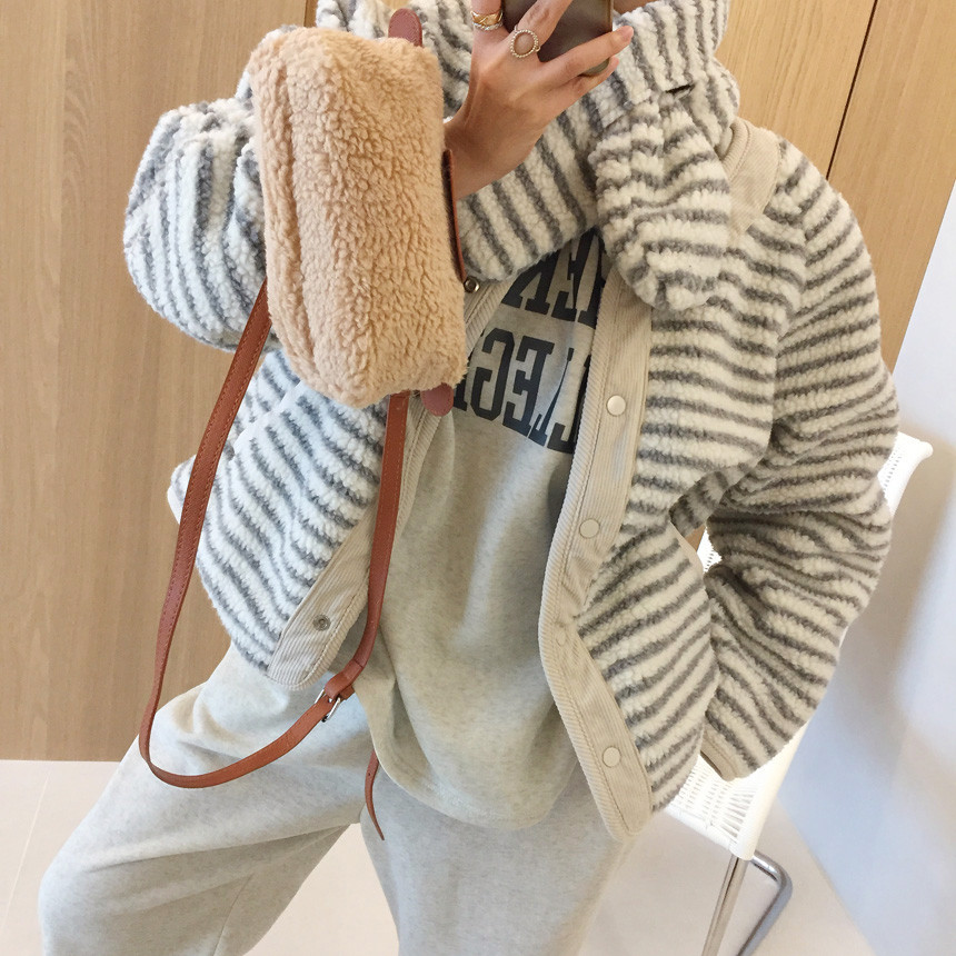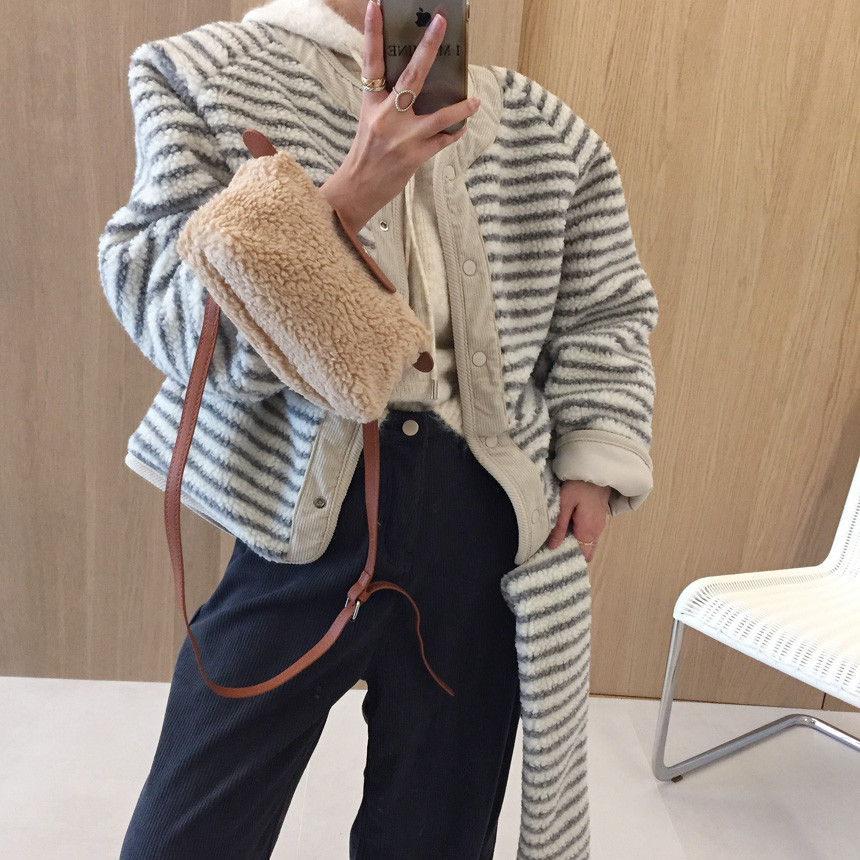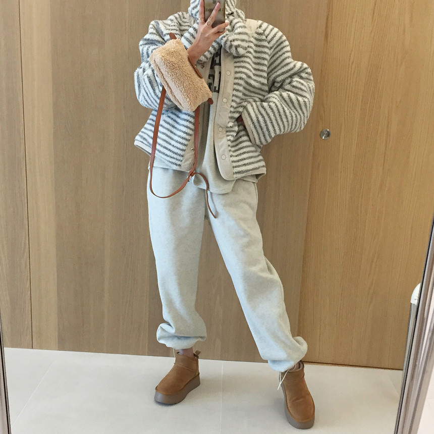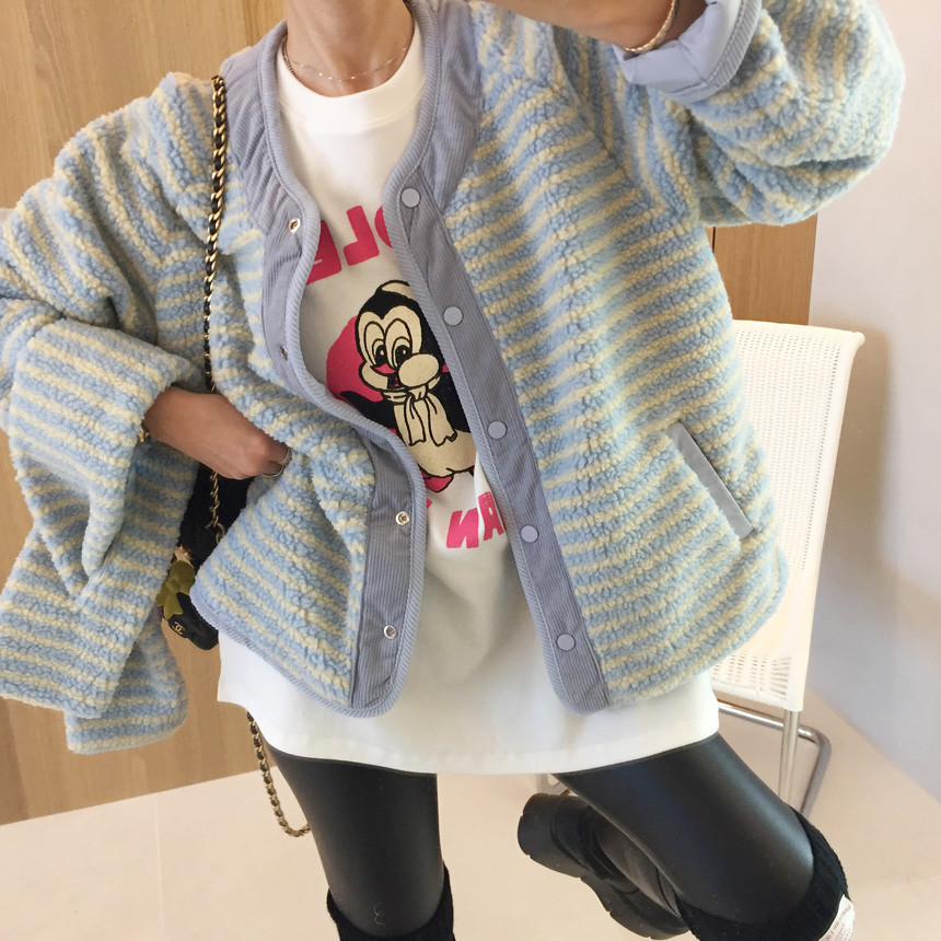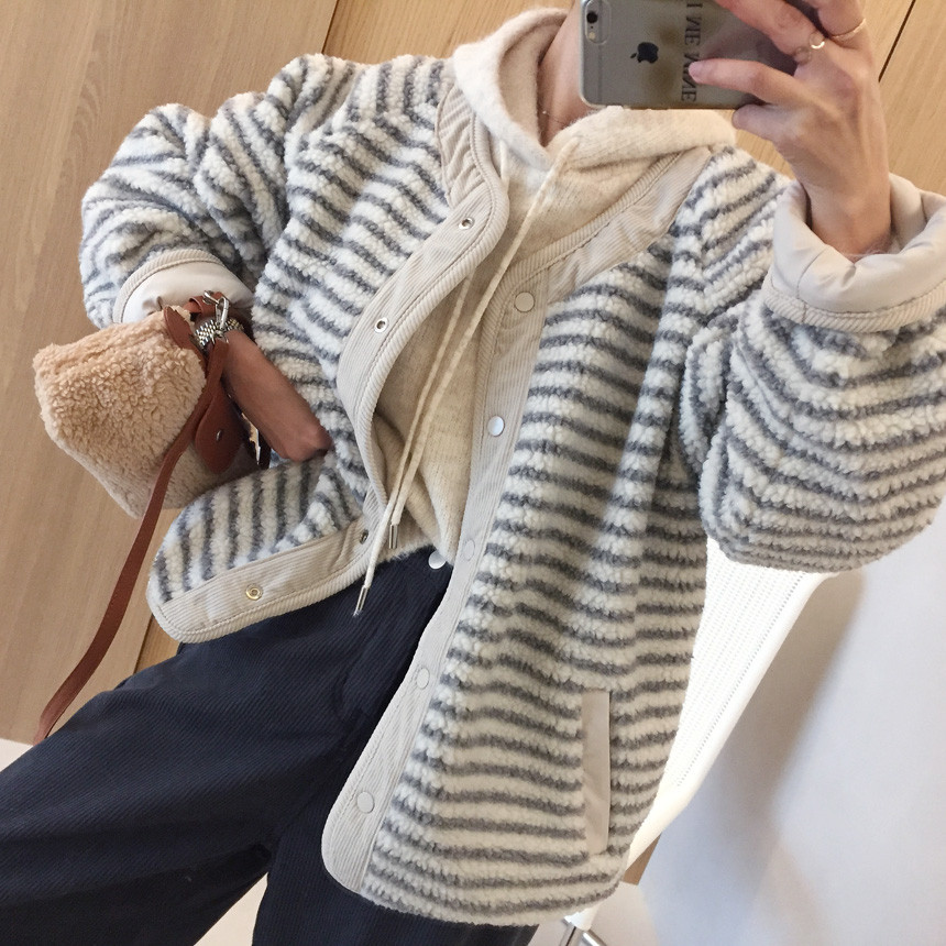 또다른 쪽은 배색 스트라이프 패턴 양털 뽀글이
