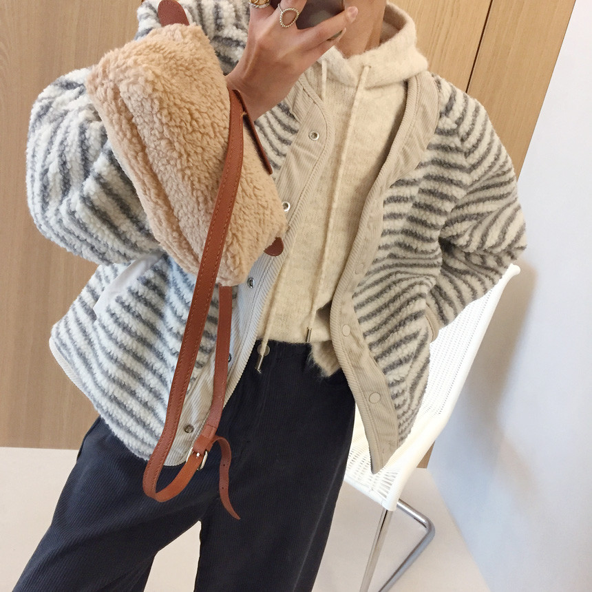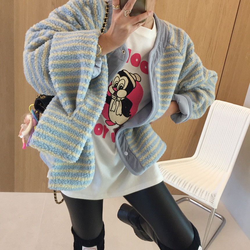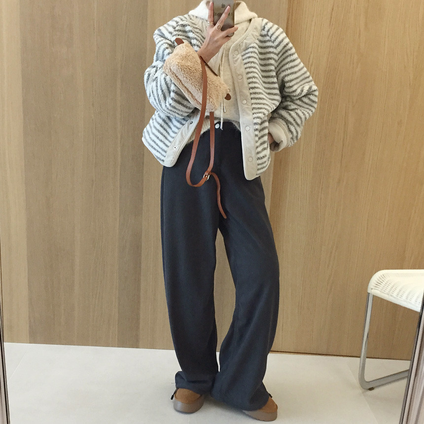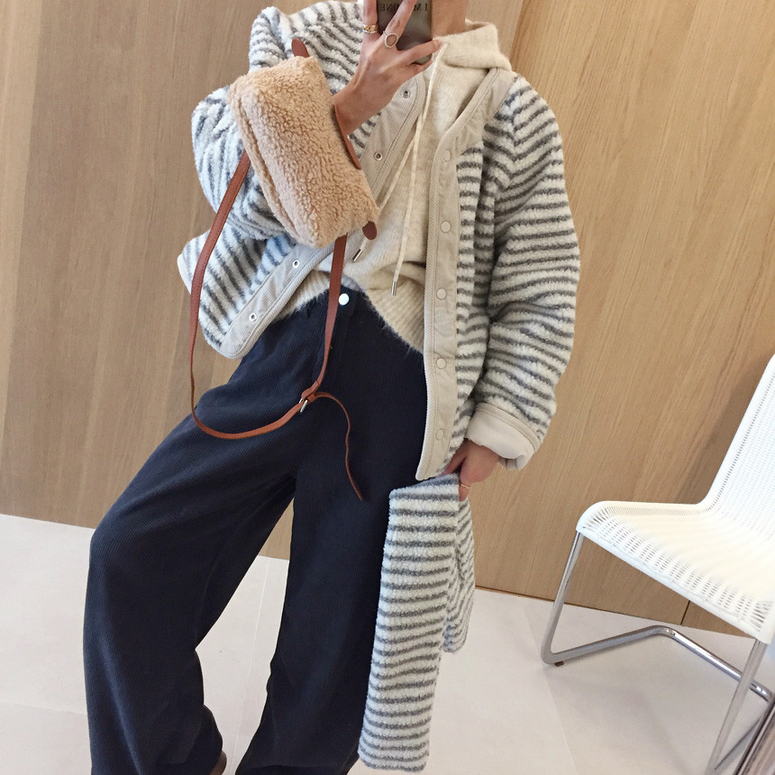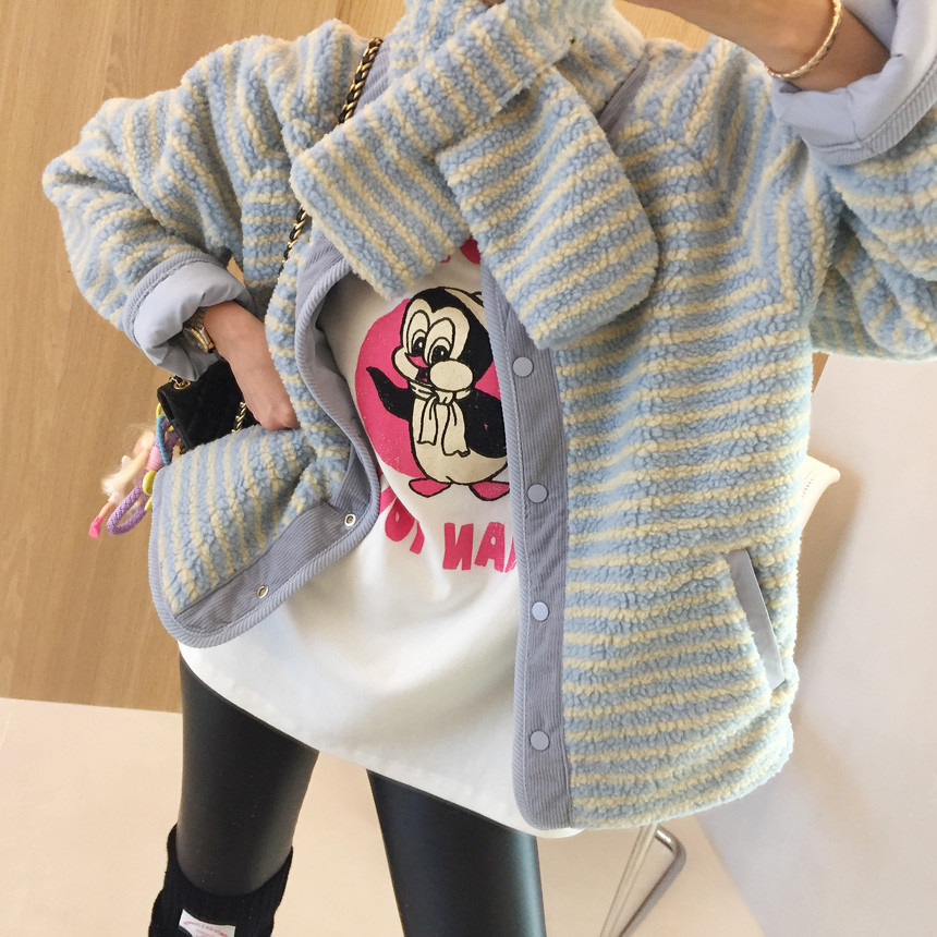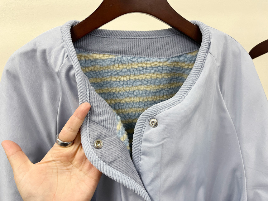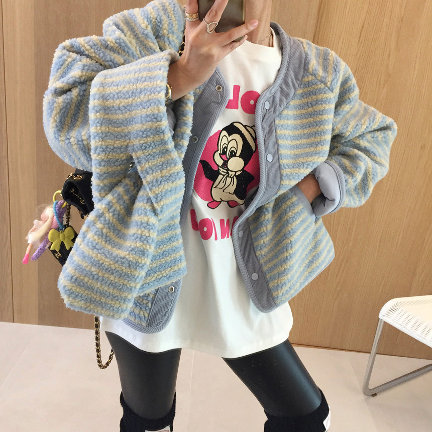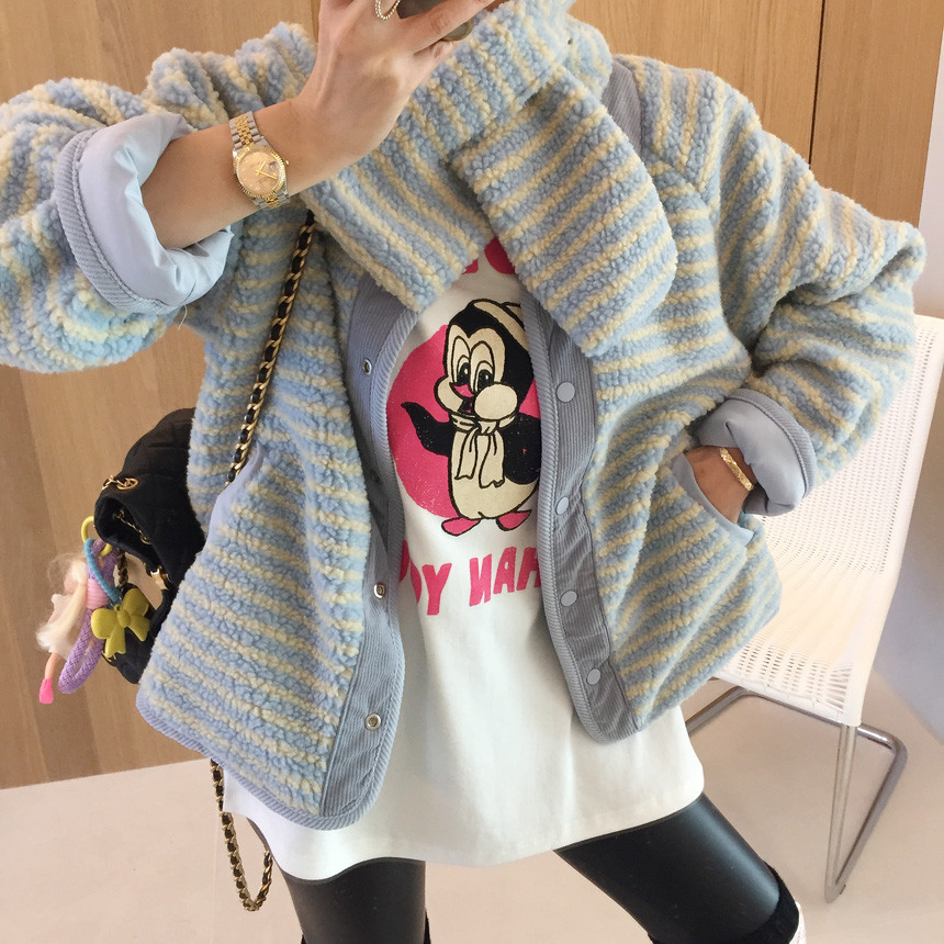 또다른 쪽은 배색 스트라이프 패턴 양털 뽀글이