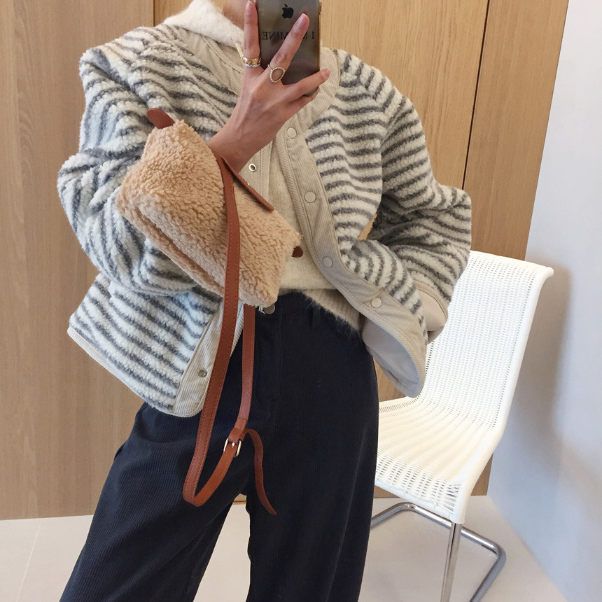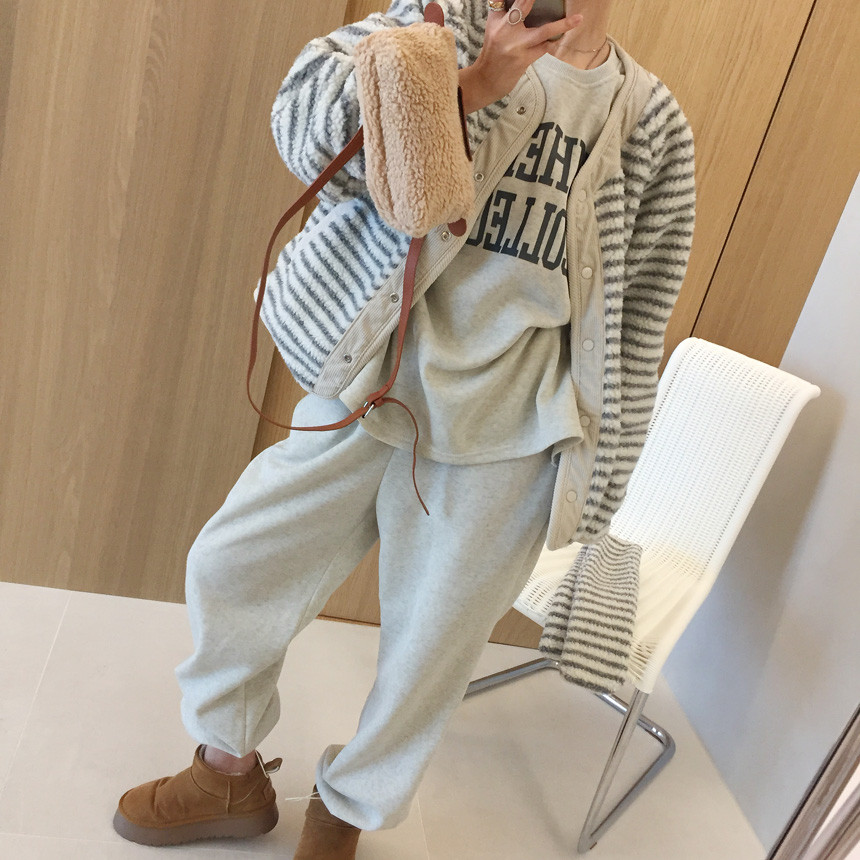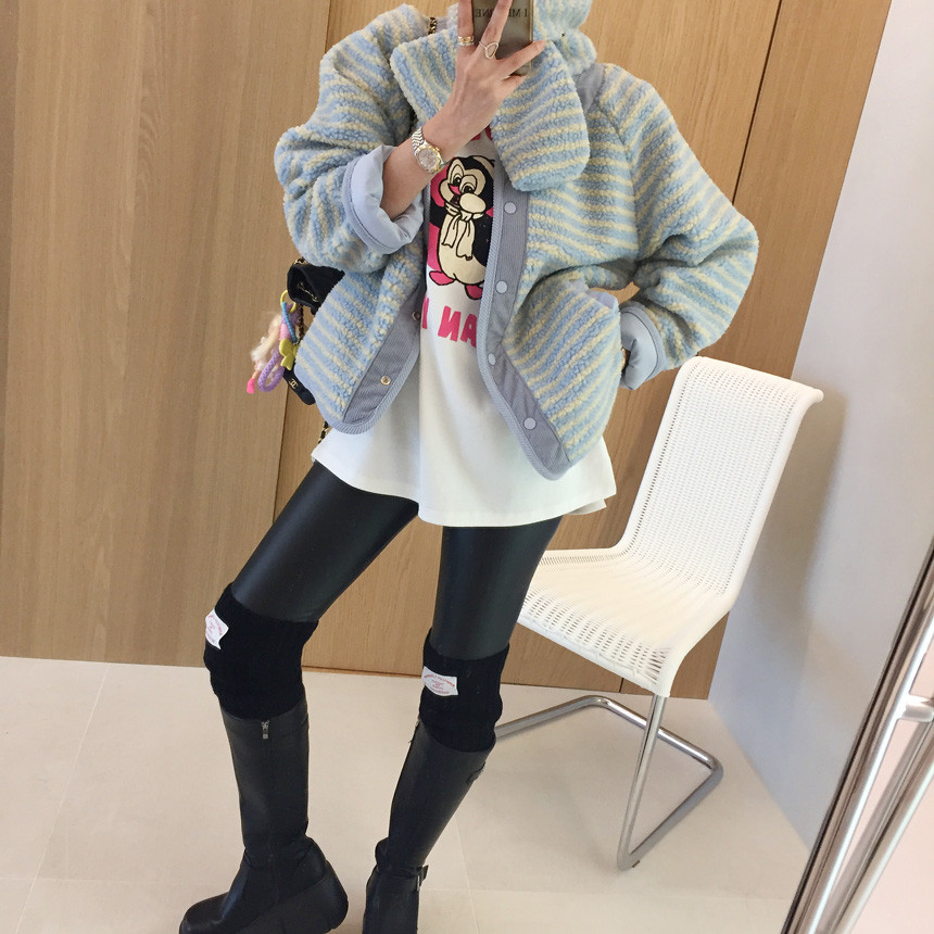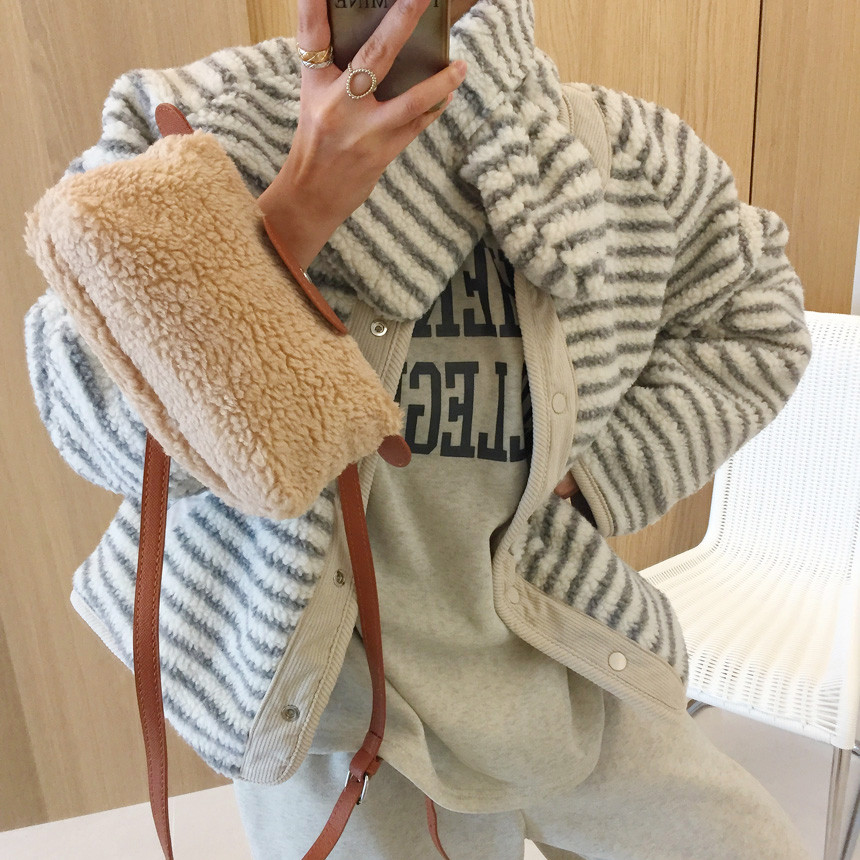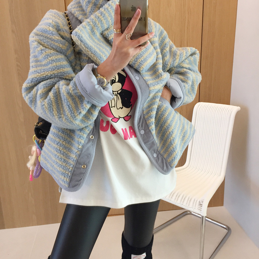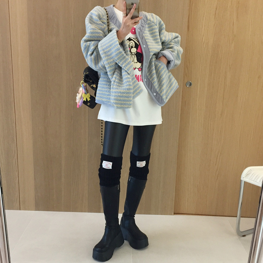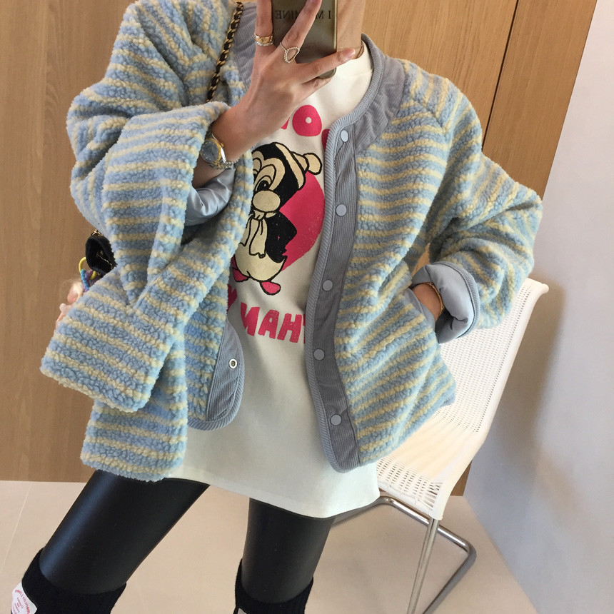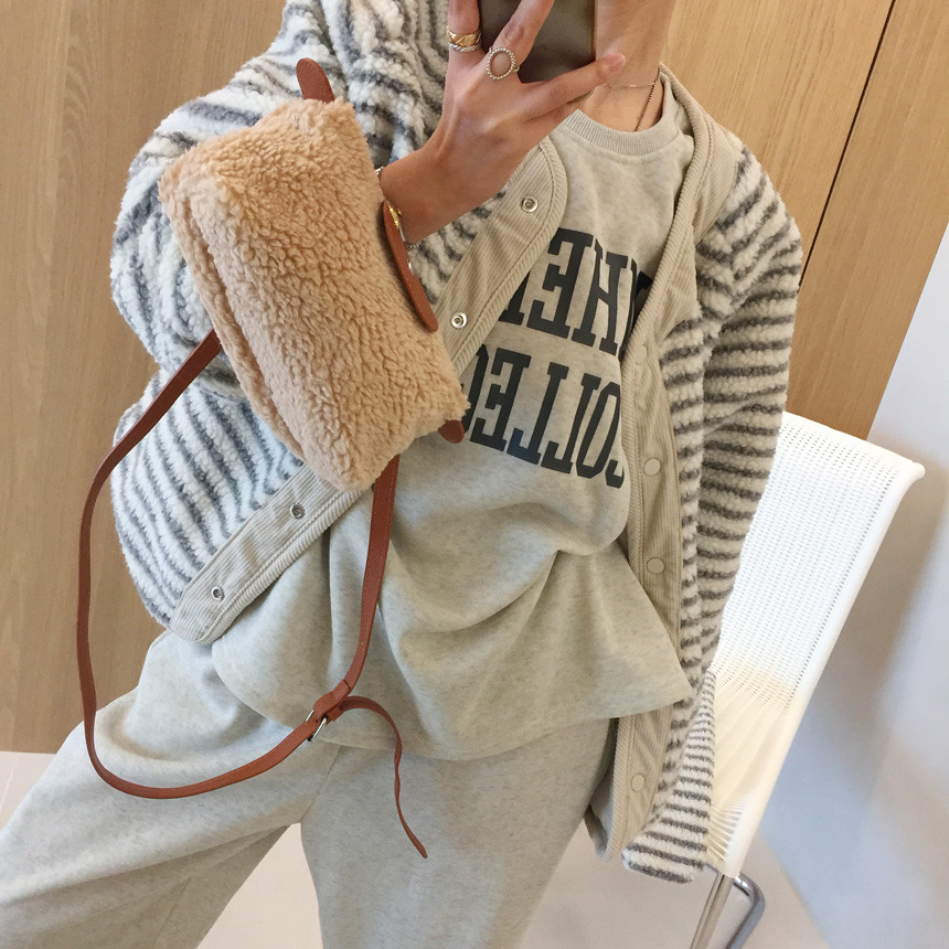 또다른 쪽은 배색 스트라이프 패턴 양털 뽀글이
