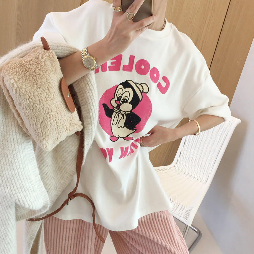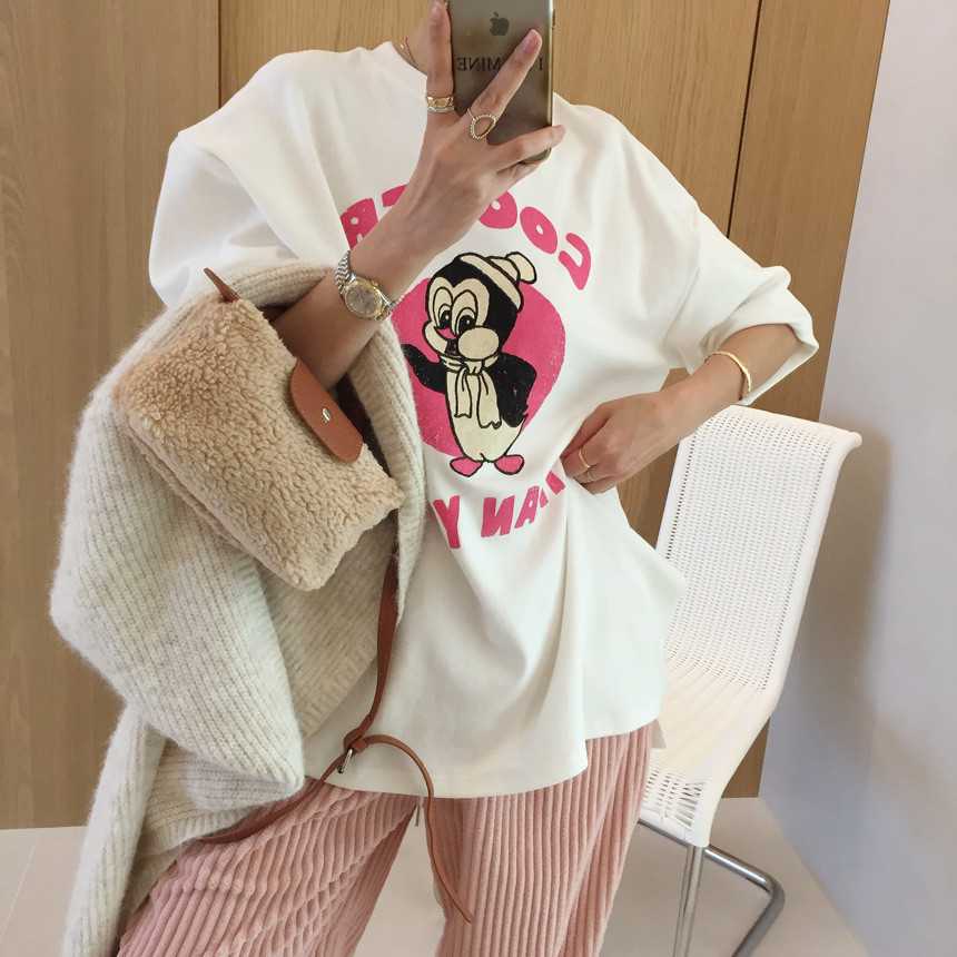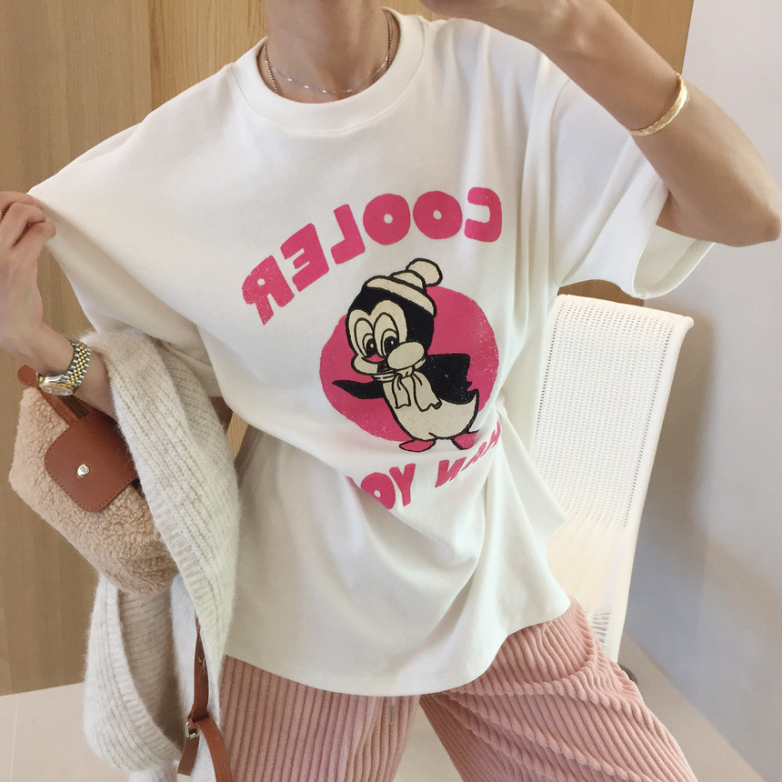 프린팅 라운드 피치기모 반팔 티셔츠 보여드릴게용~