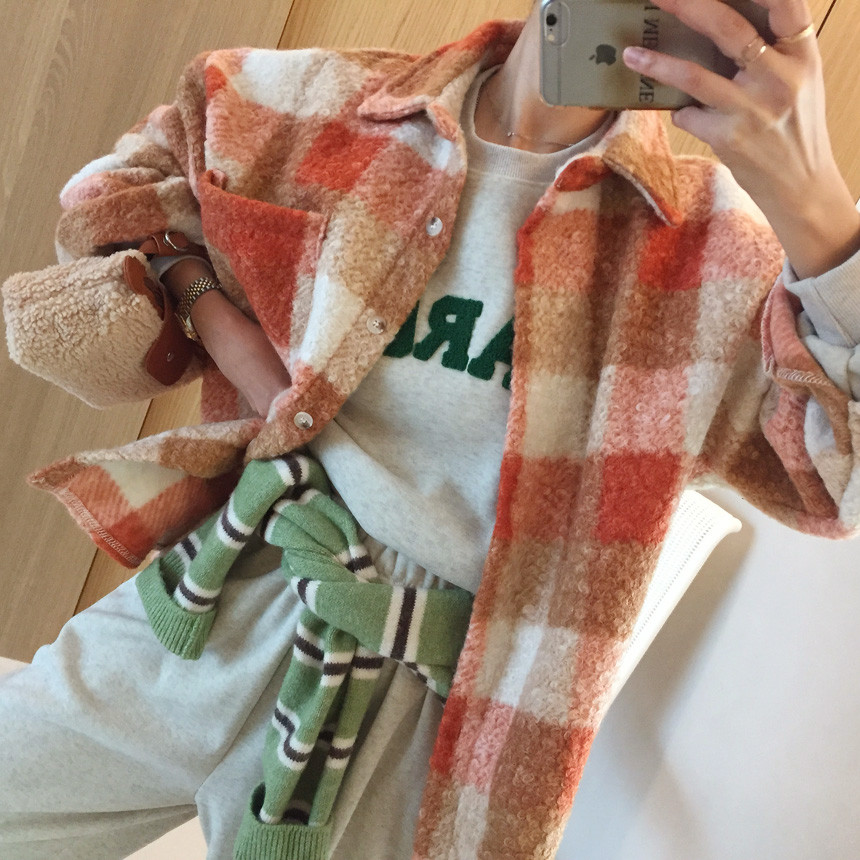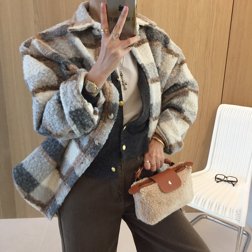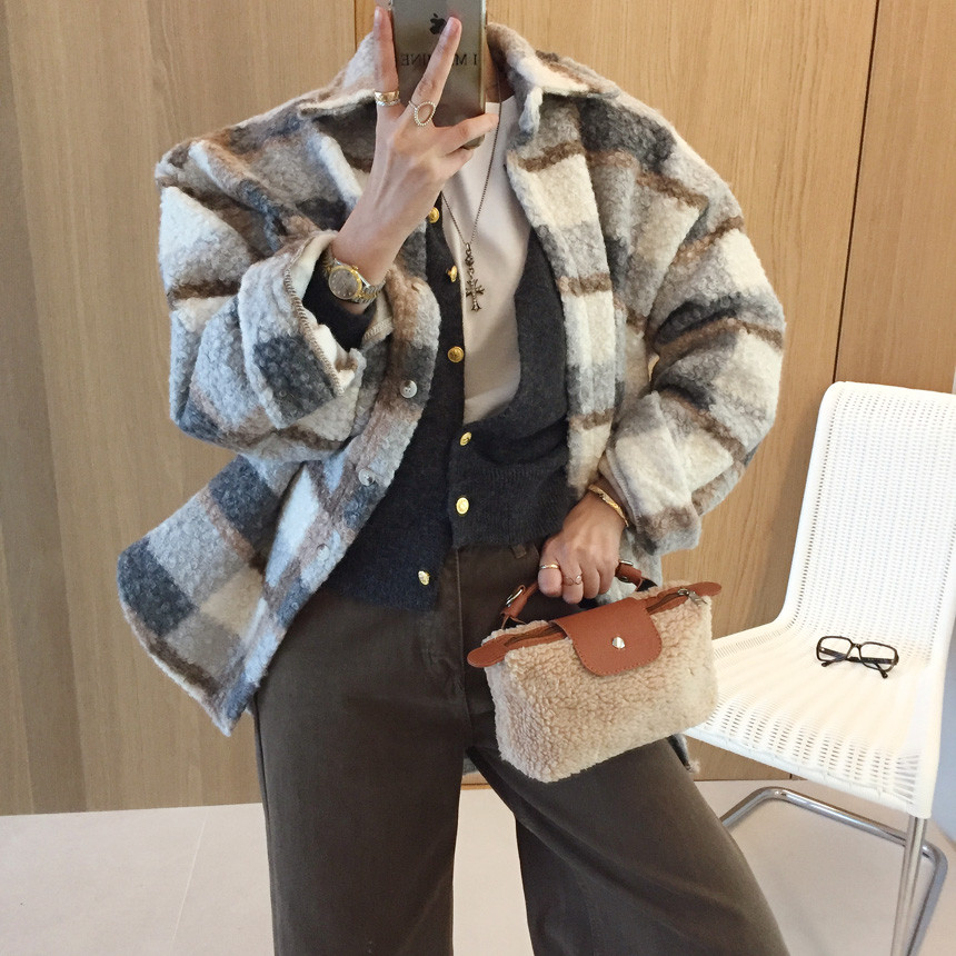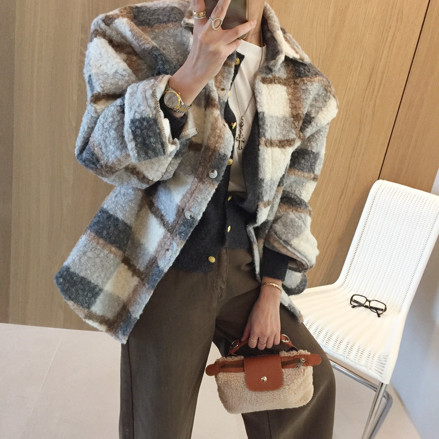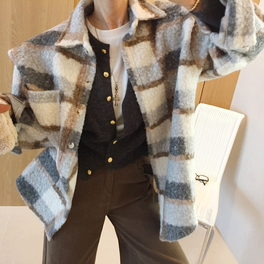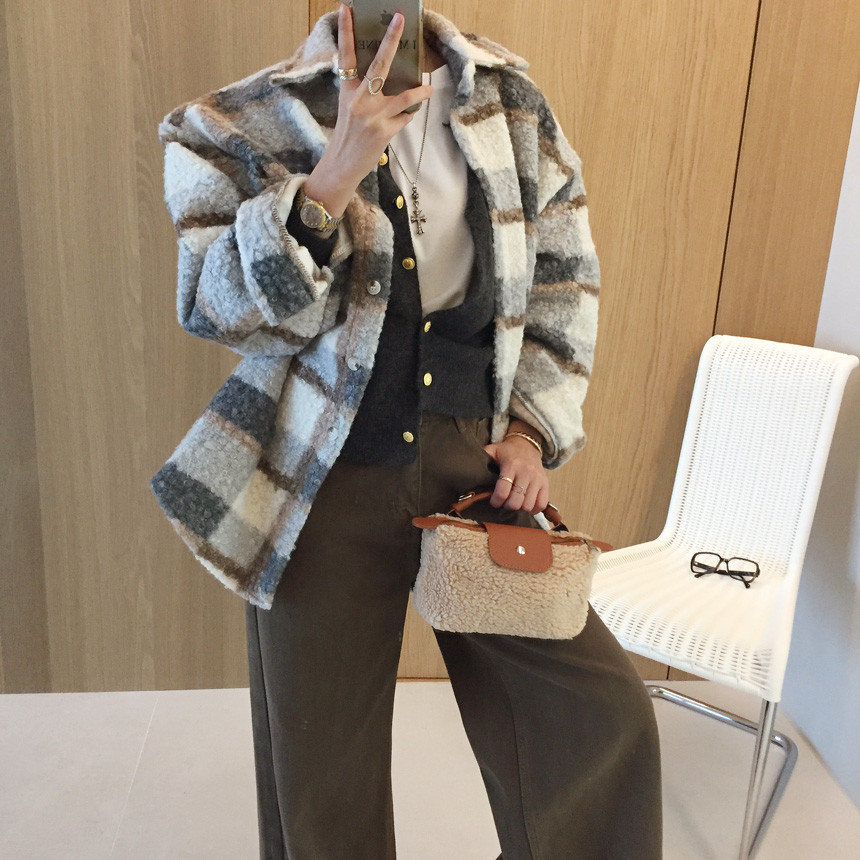 오버핏 체크 덤블 부클 남방자켓을 보여드릴게용~