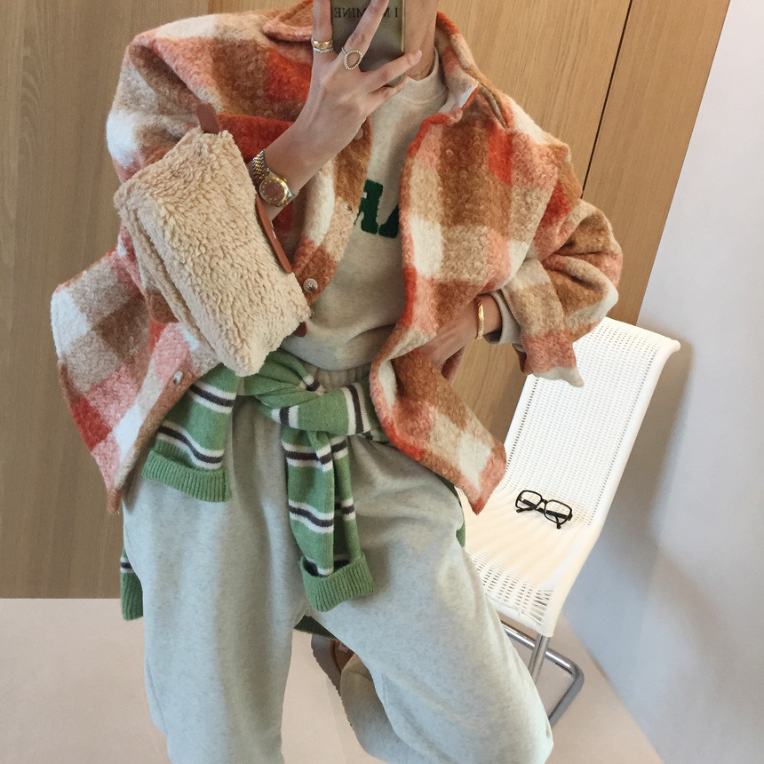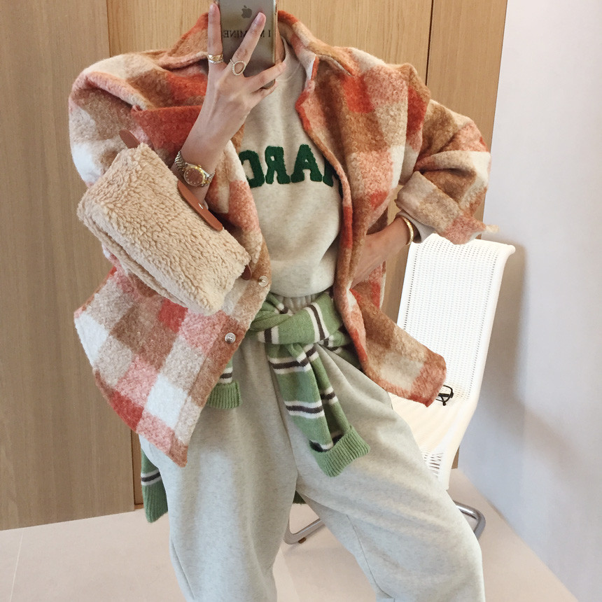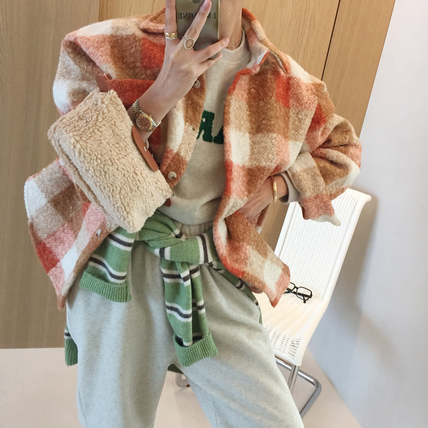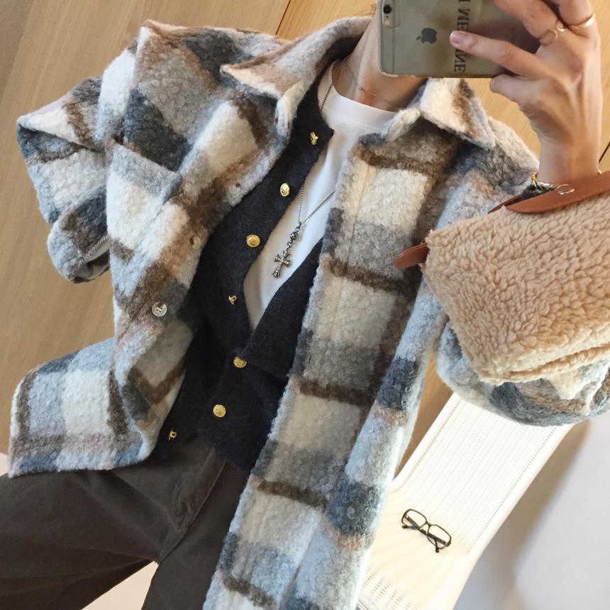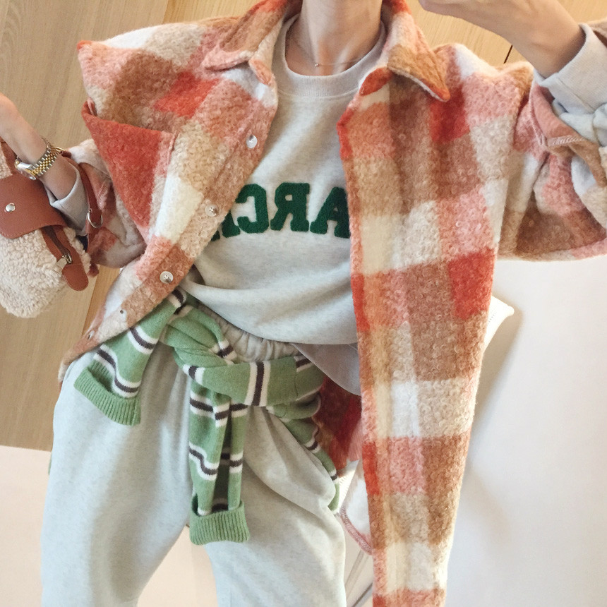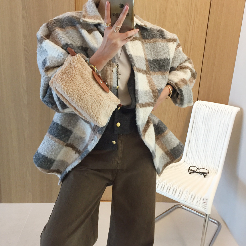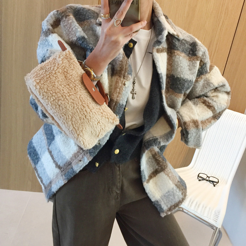 오버핏 체크 덤블 부클 남방자켓을 보여드릴게용~