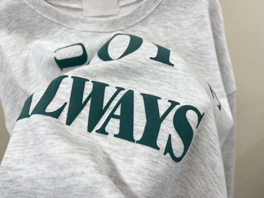 무난한 디자인에 입체감 있는 발포 레터링 프린팅으로