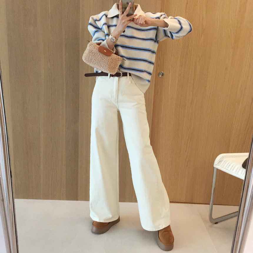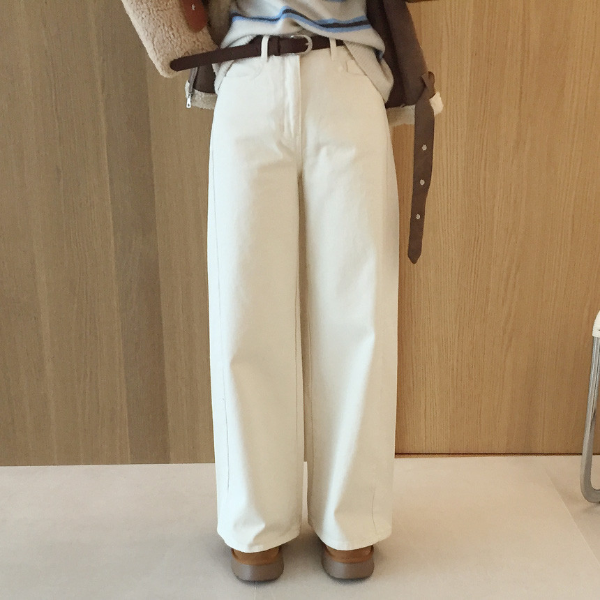 하체라인을 커버해주는 여유있는 와이드 부츠컷 실루엣이라