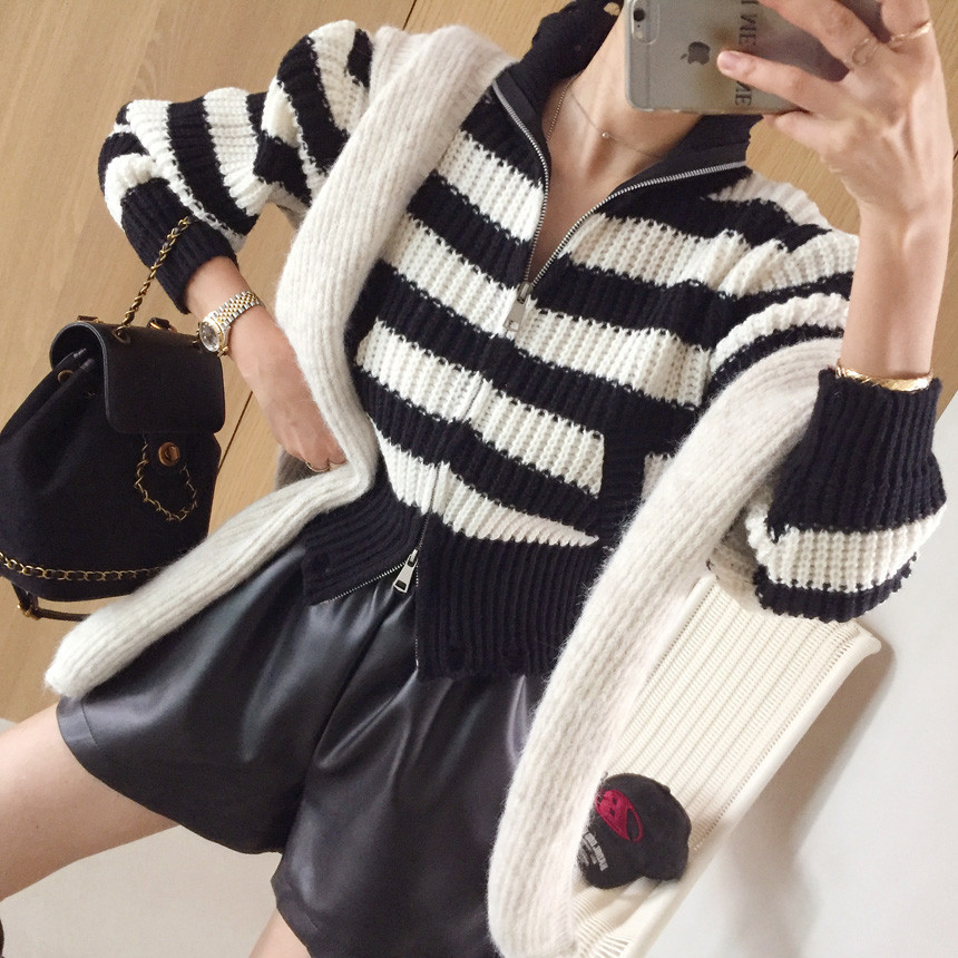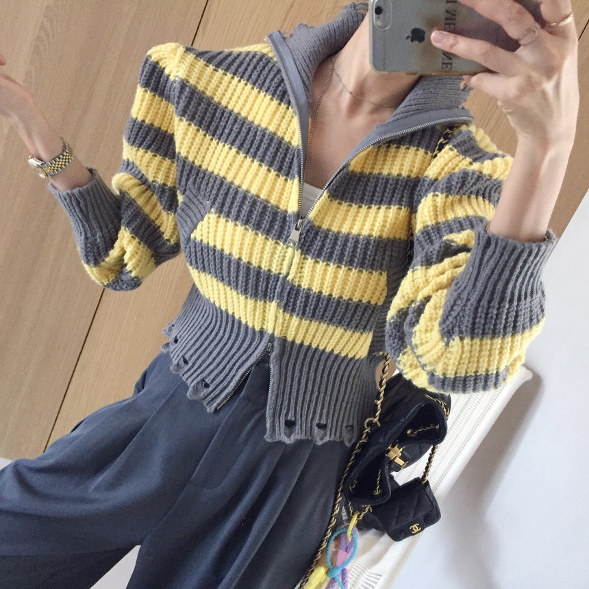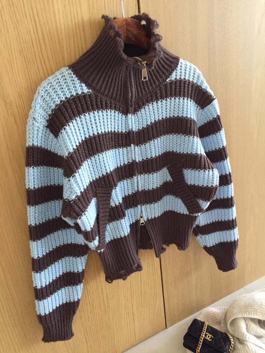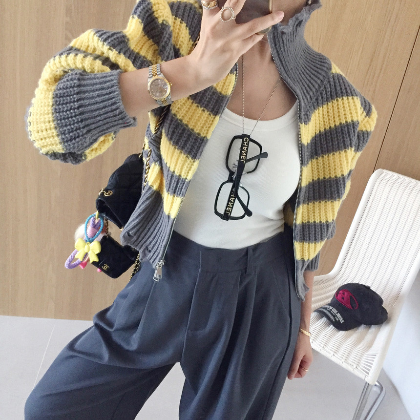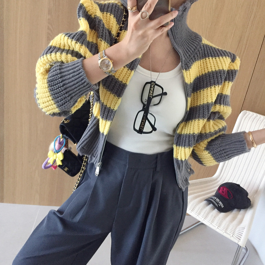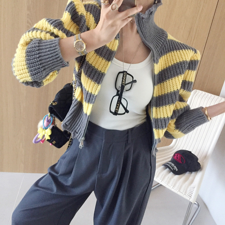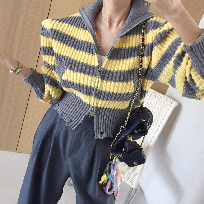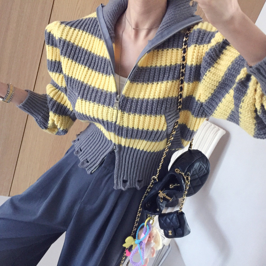 스트라이프 카라 크롭 집업 가디건 소개드릴게요^^