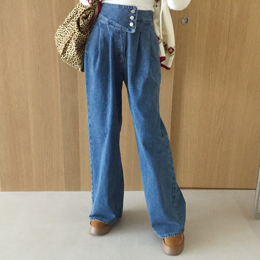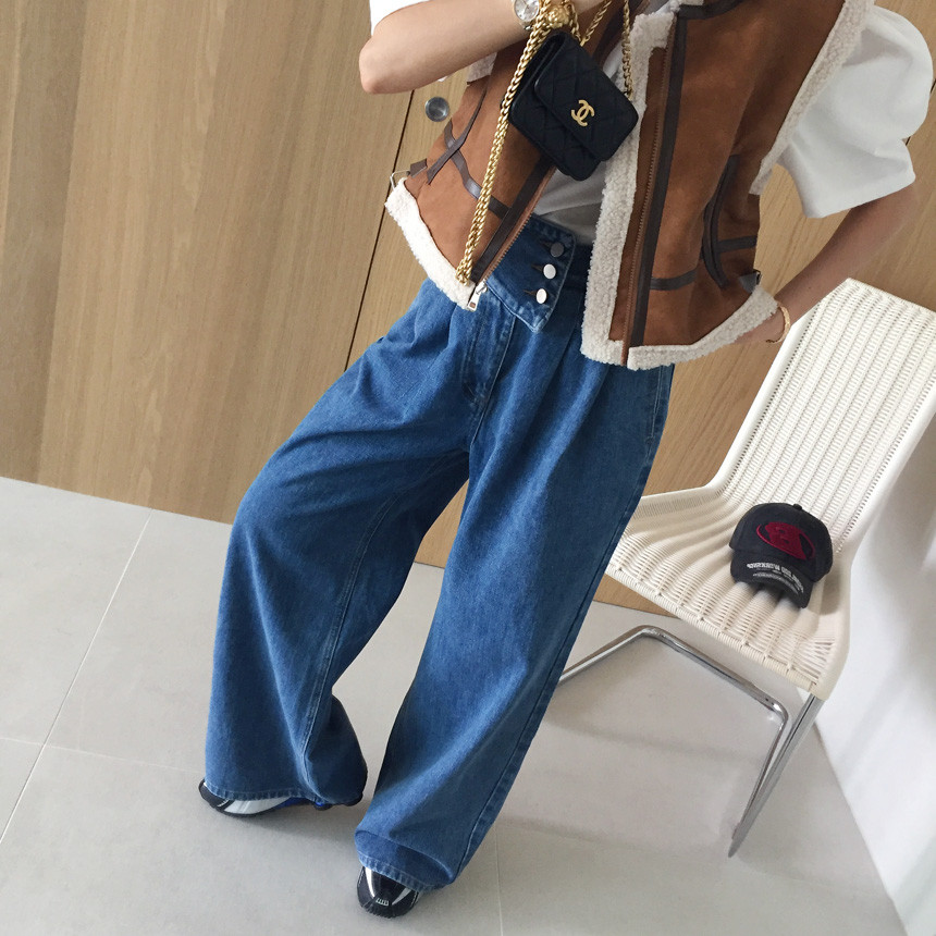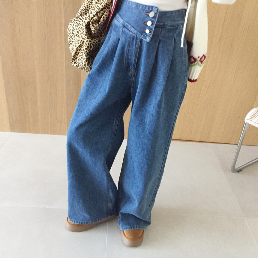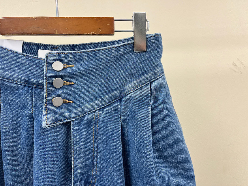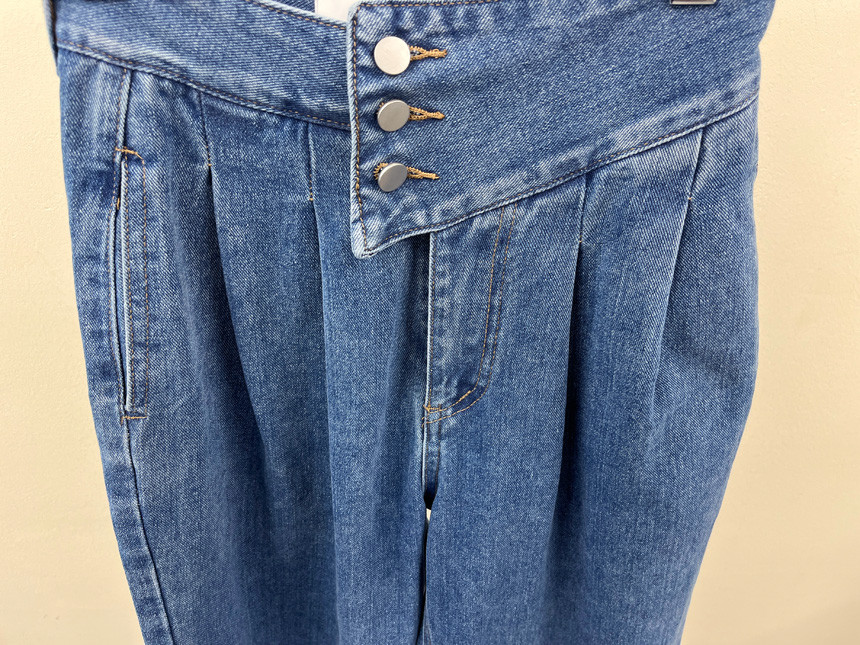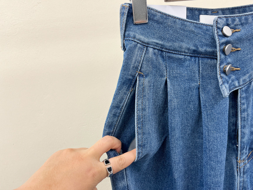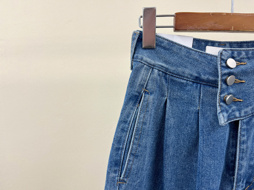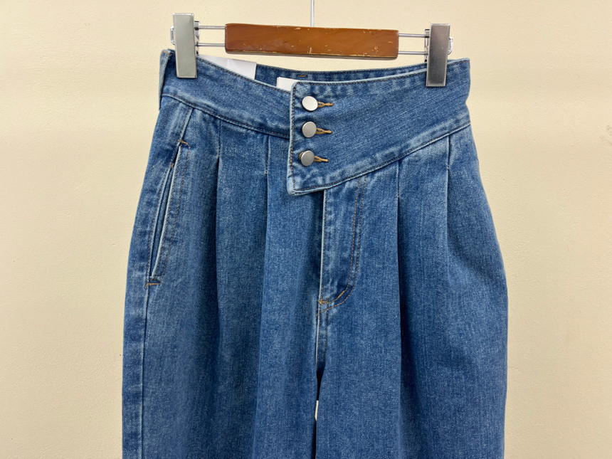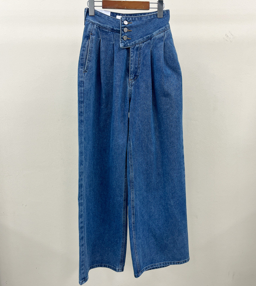 쓰리버튼 하이웨스트 핀턱 와이드 데님팬츠 보여드릴게요^^