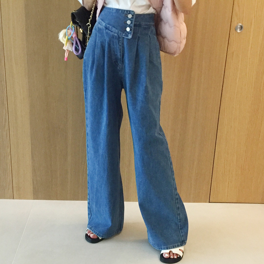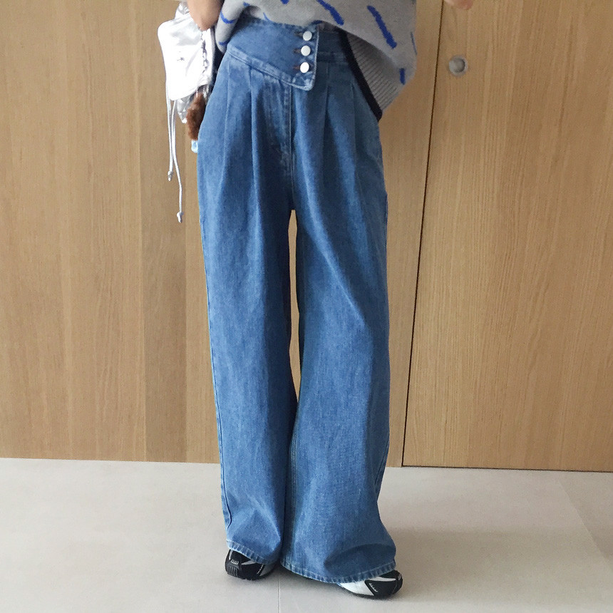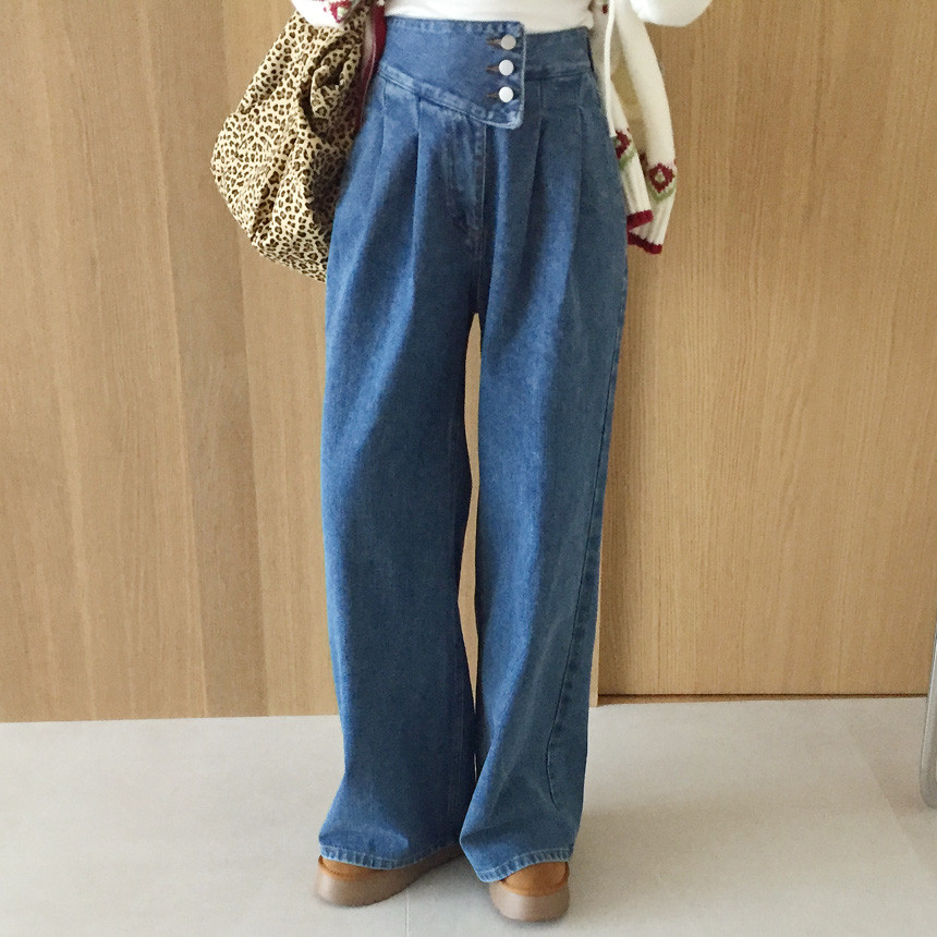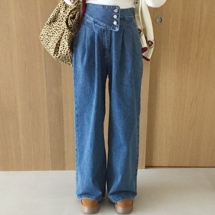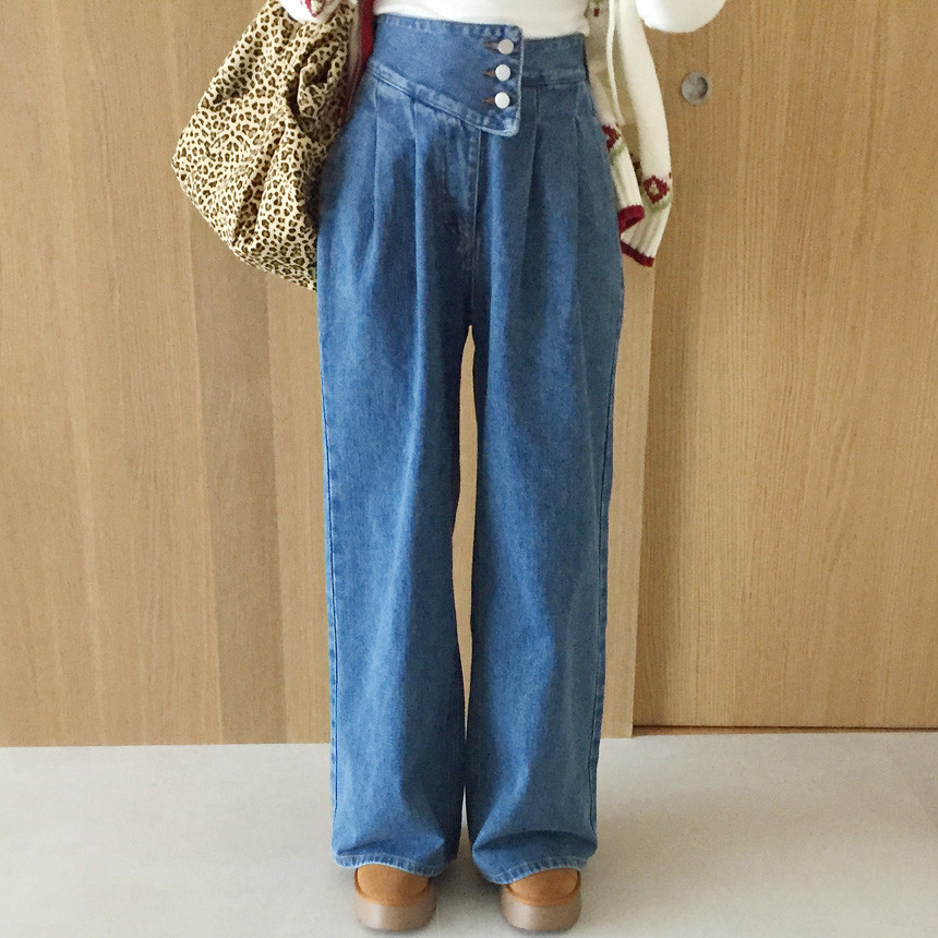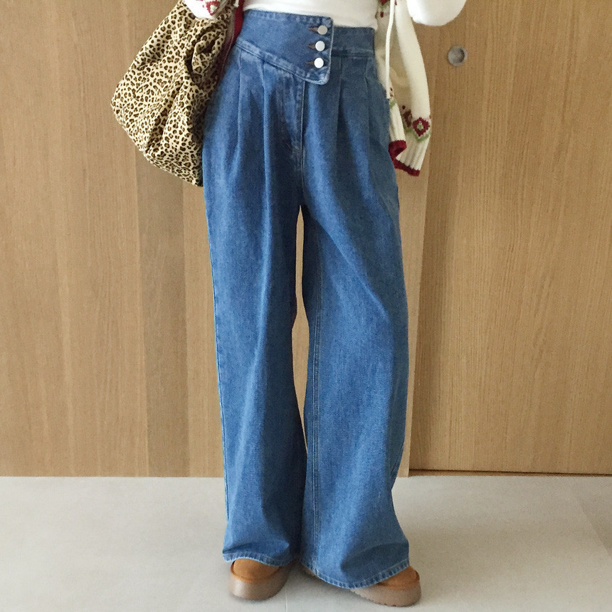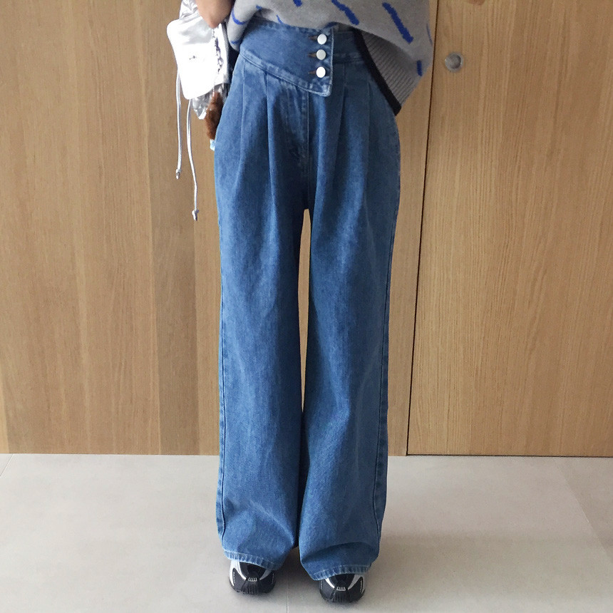 쓰리버튼 하이웨스트 핀턱 와이드 데님팬츠 보여드릴게요^^
