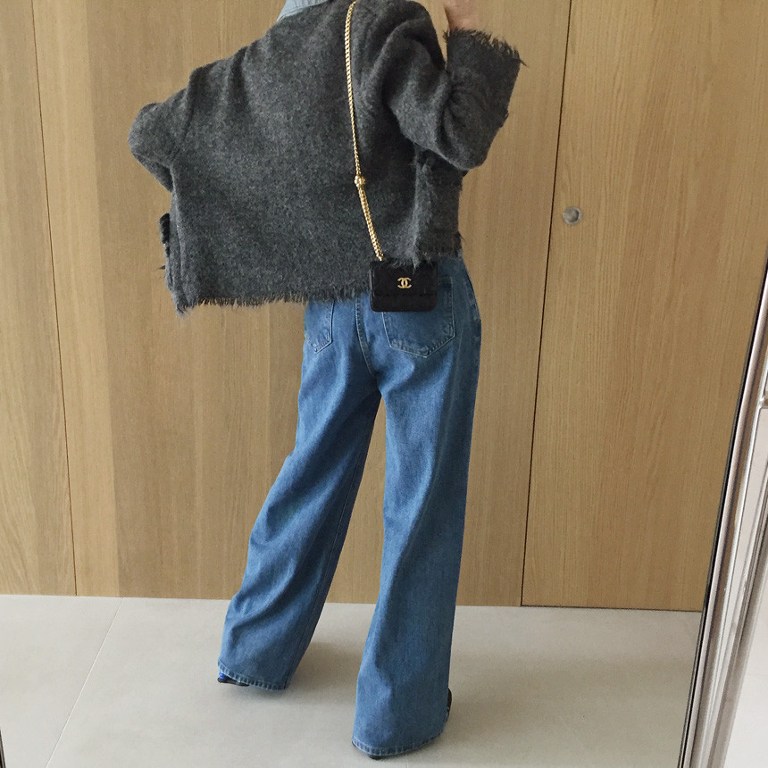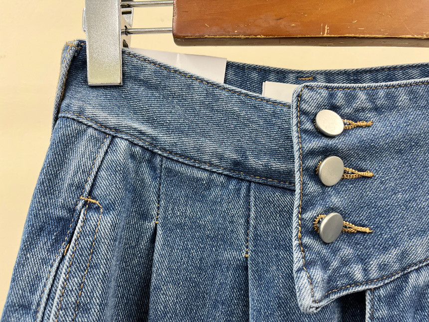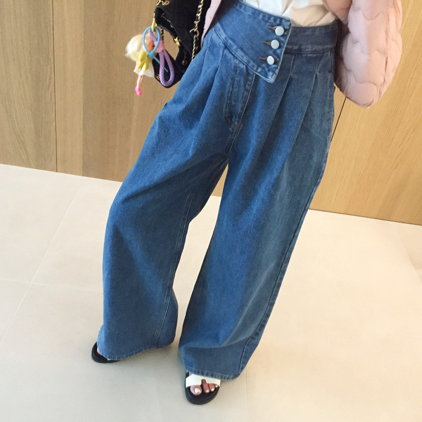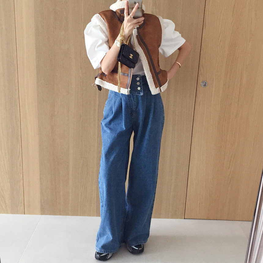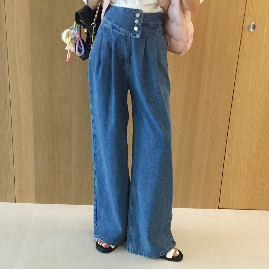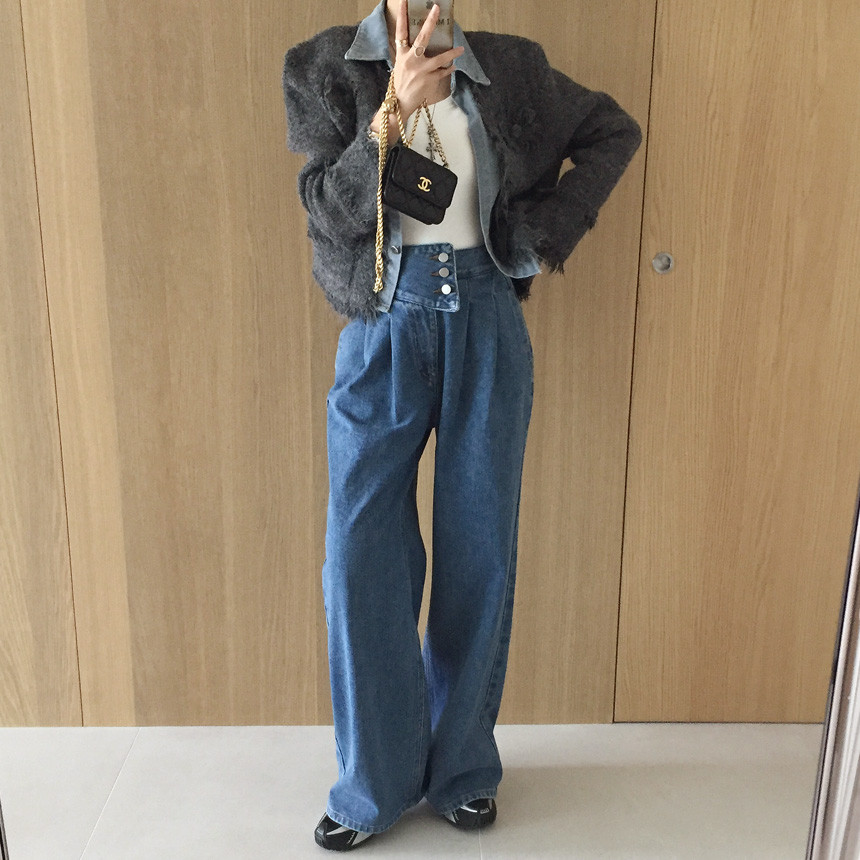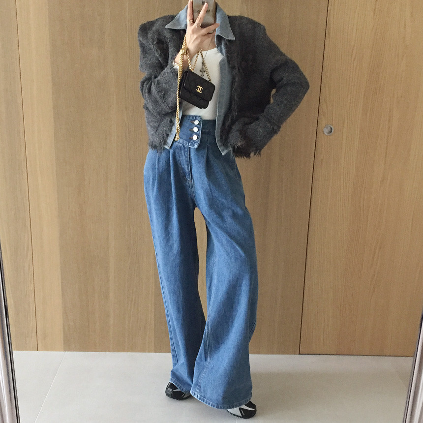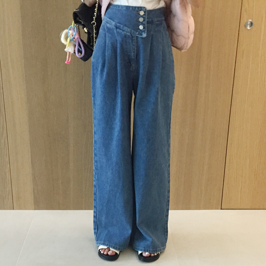 쓰리버튼 하이웨스트 핀턱 와이드 데님팬츠 보여드릴게요^^
