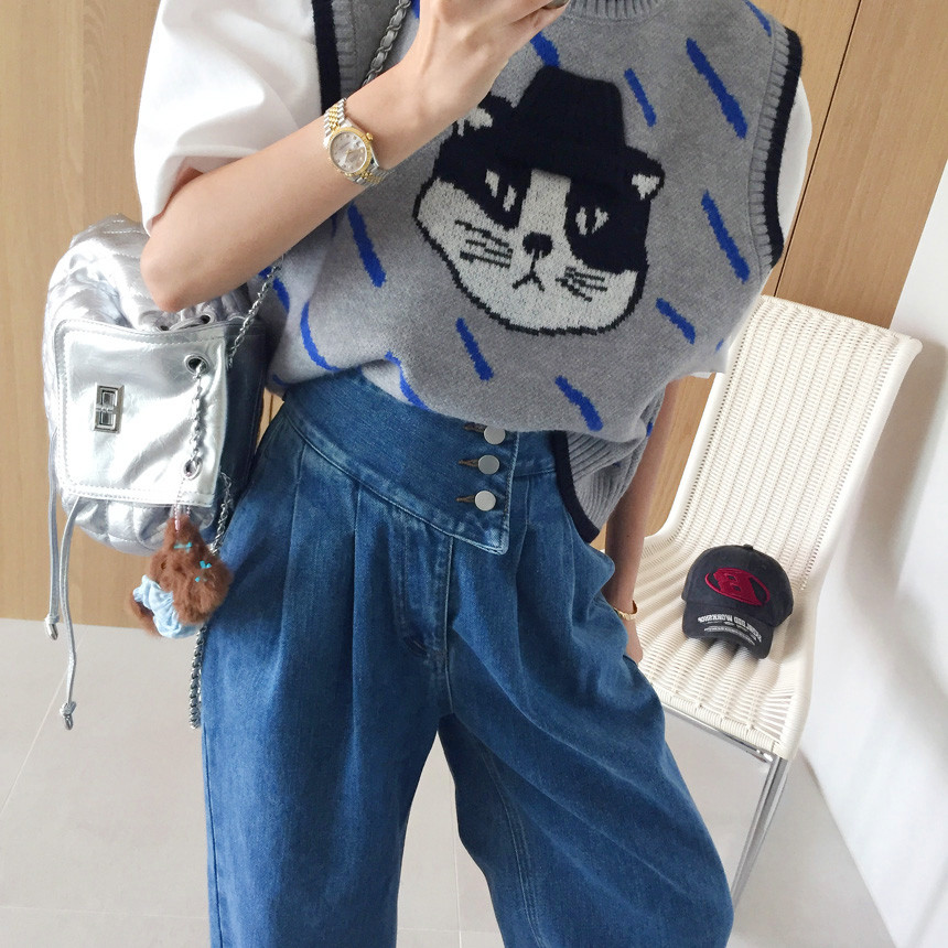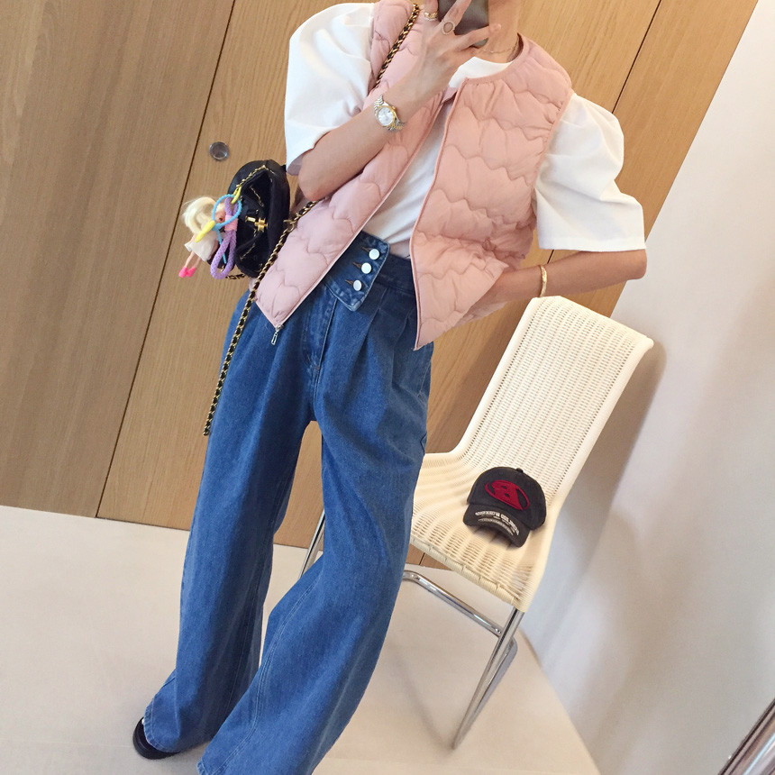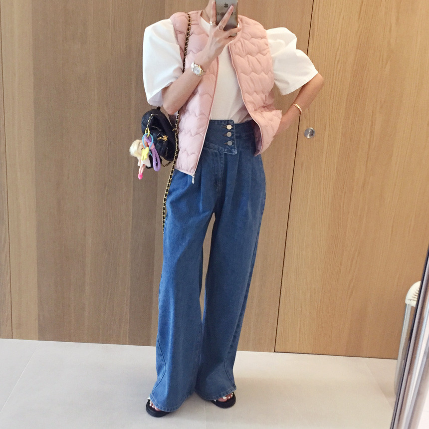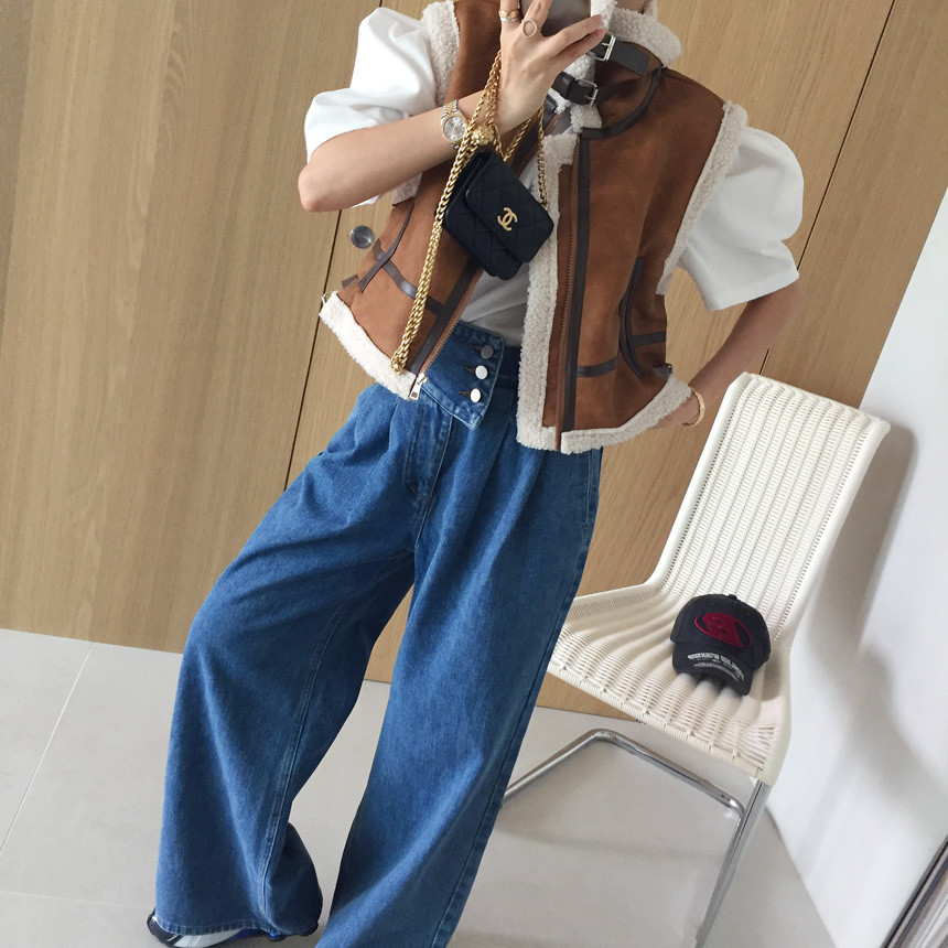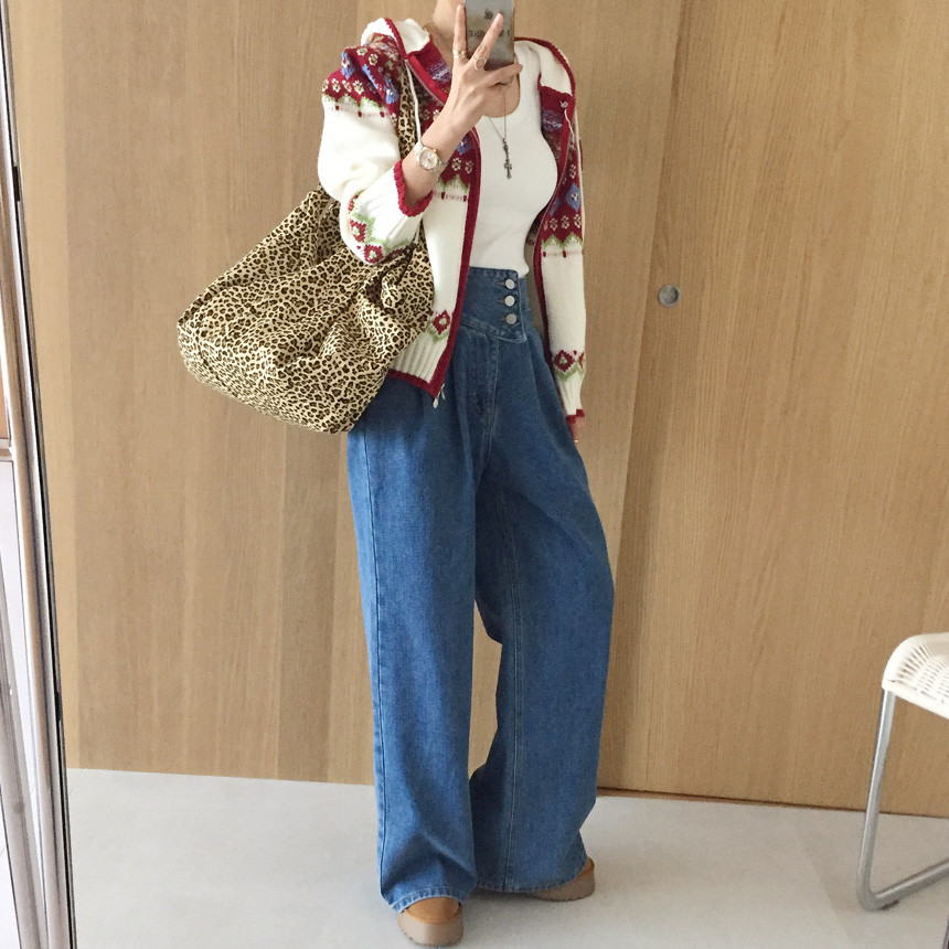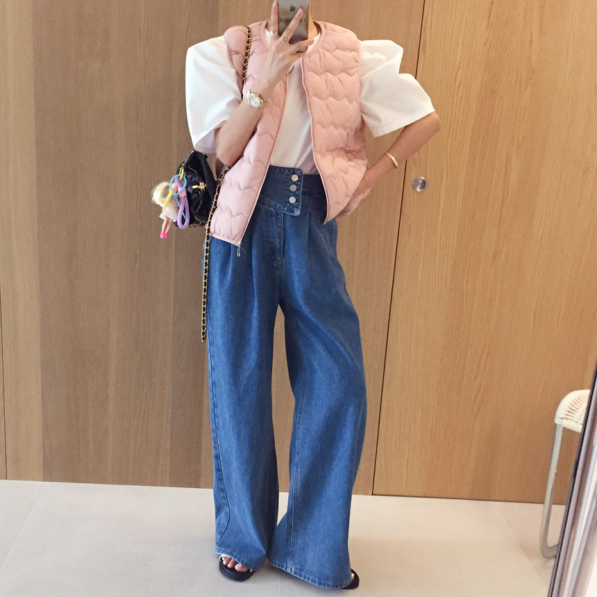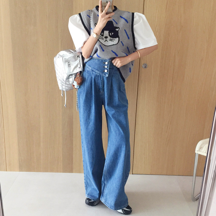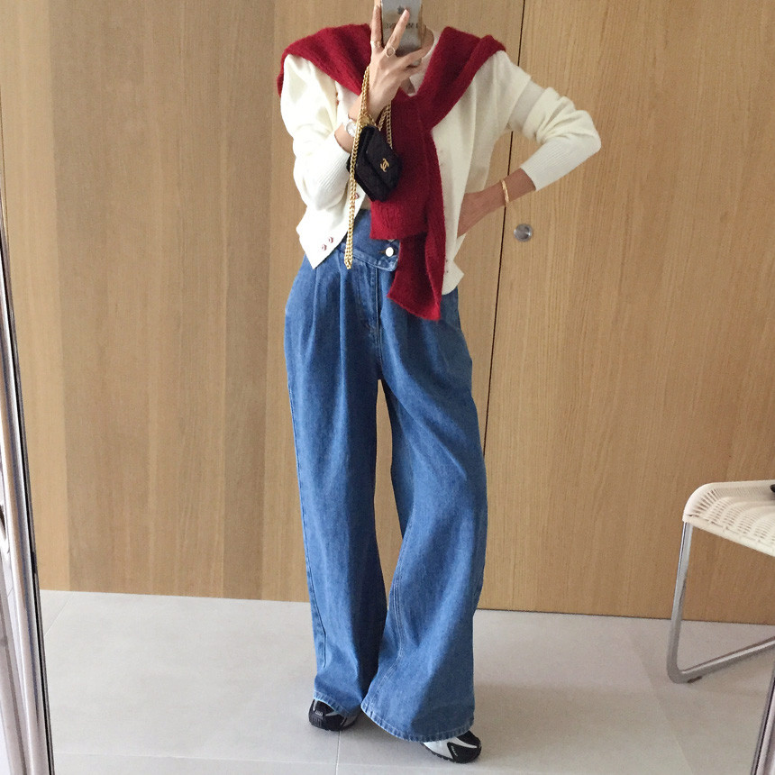 쓰리버튼 하이웨스트 핀턱 와이드 데님팬츠 보여드릴게요^^