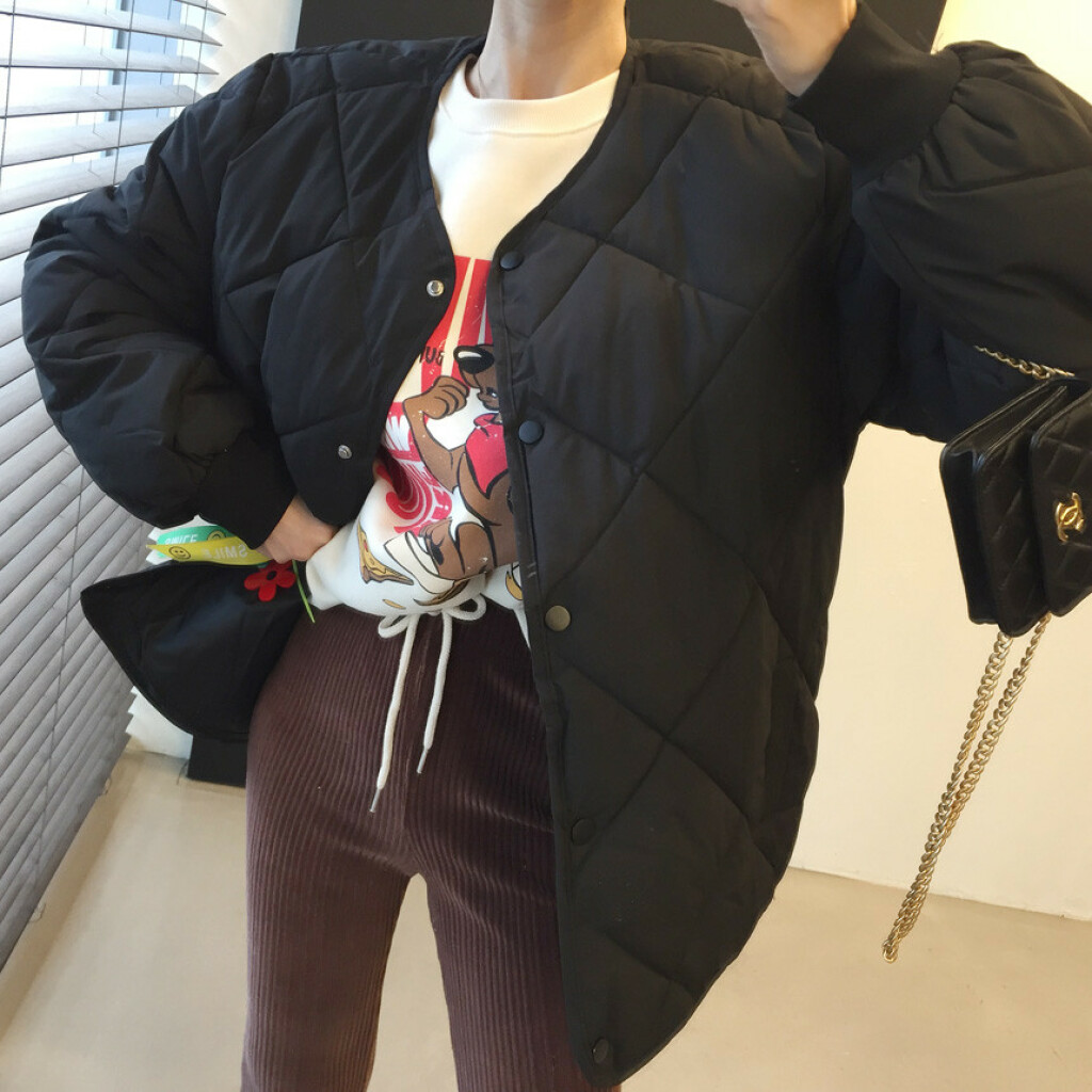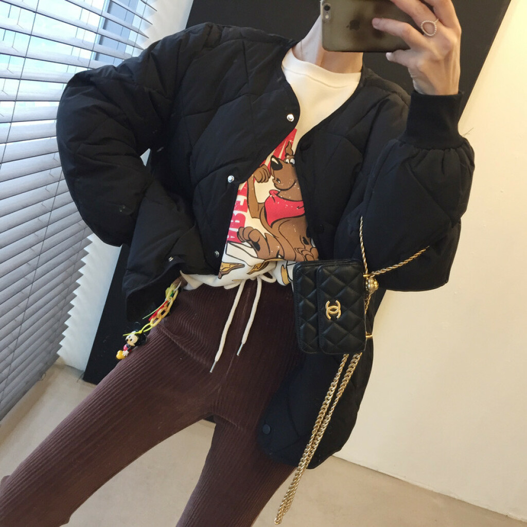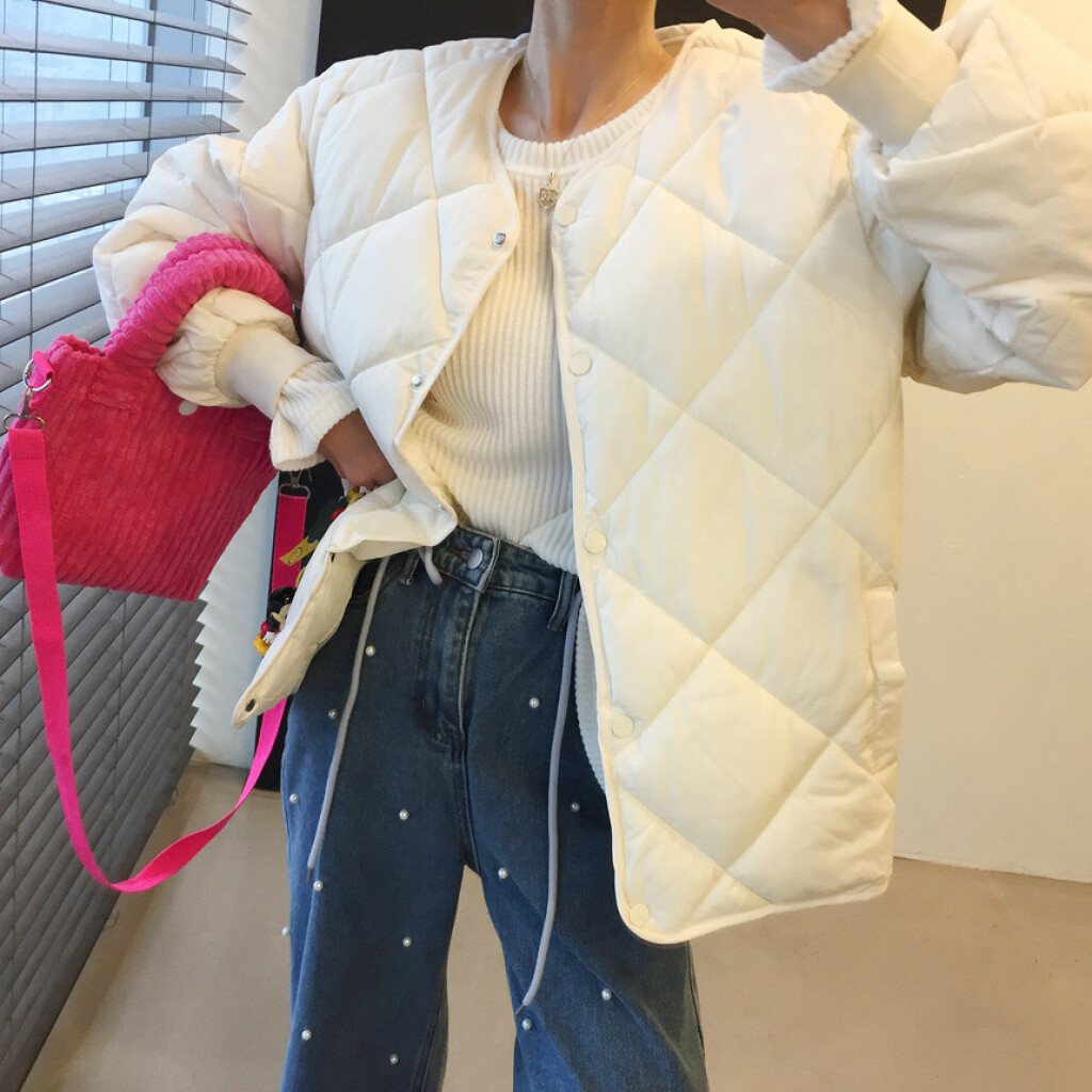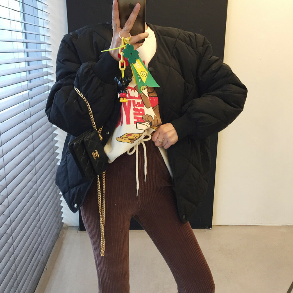 퀄팅 누빔 노카라 라운드 하프 단추 패딩 보여드릴게용