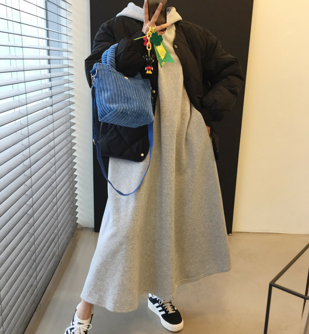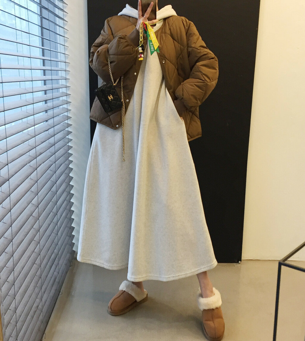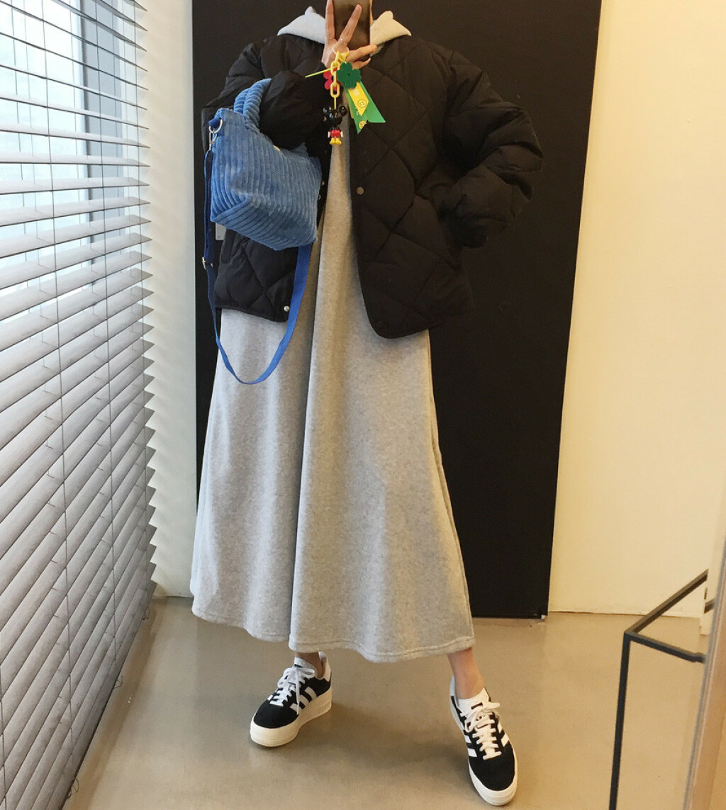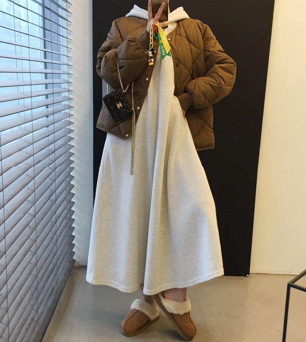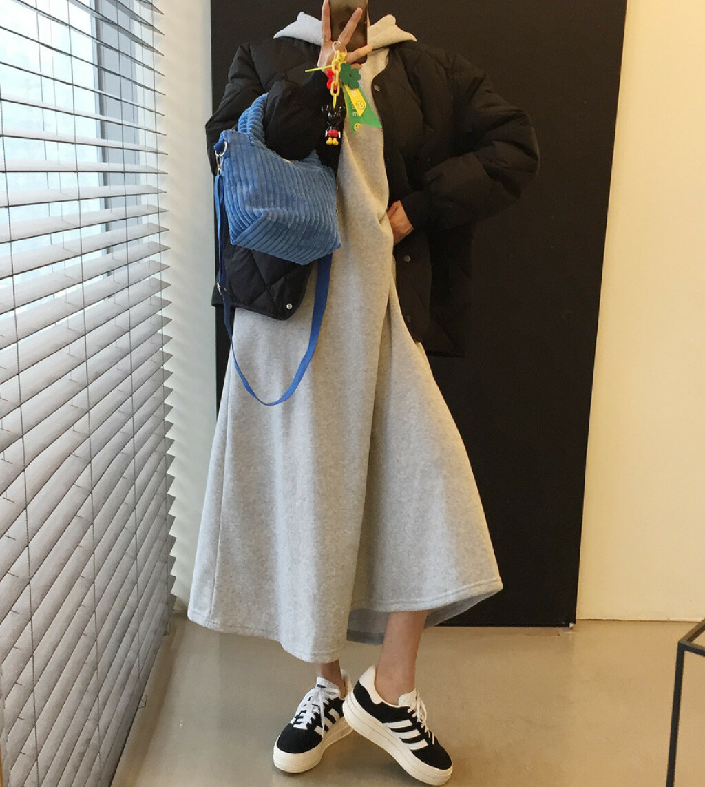 여유로운 사이즈와 살짝 힙을 덮는 하프 기장으로