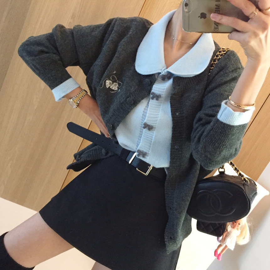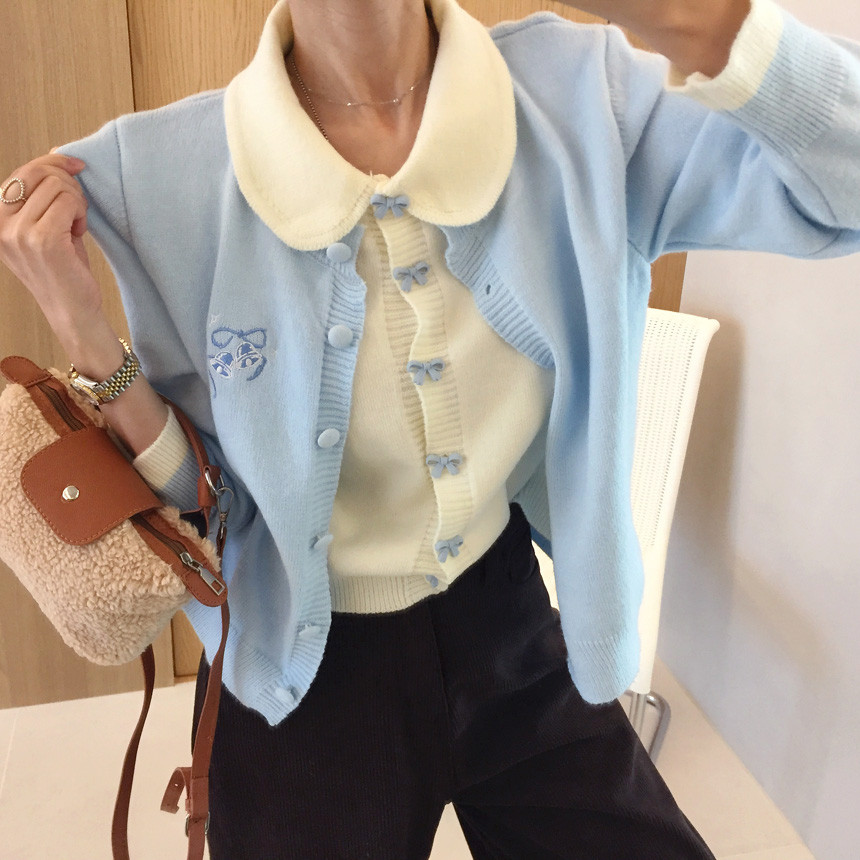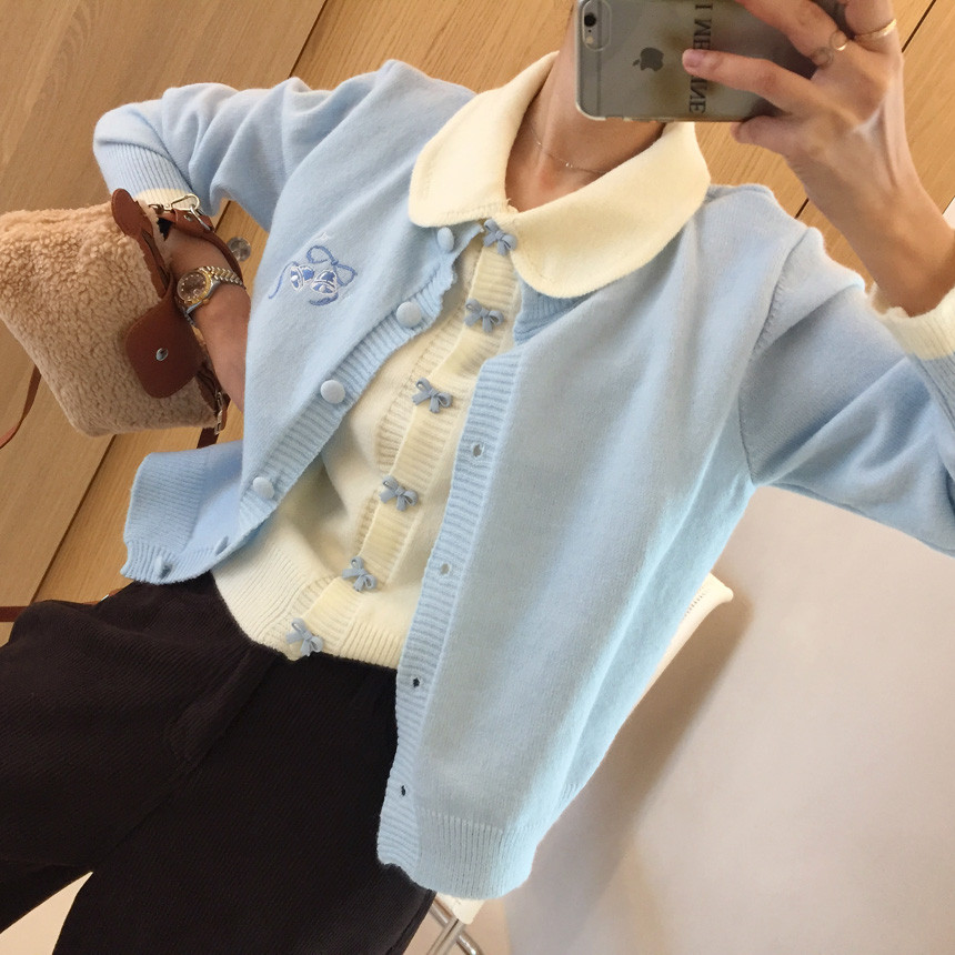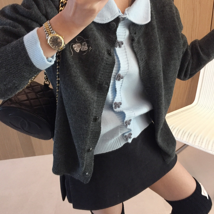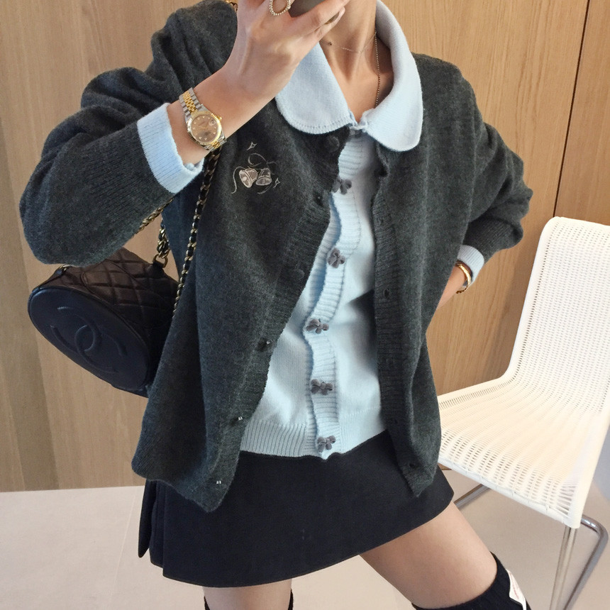 이중 배색 레이어드 니트가디건 소개해드릴께요^^