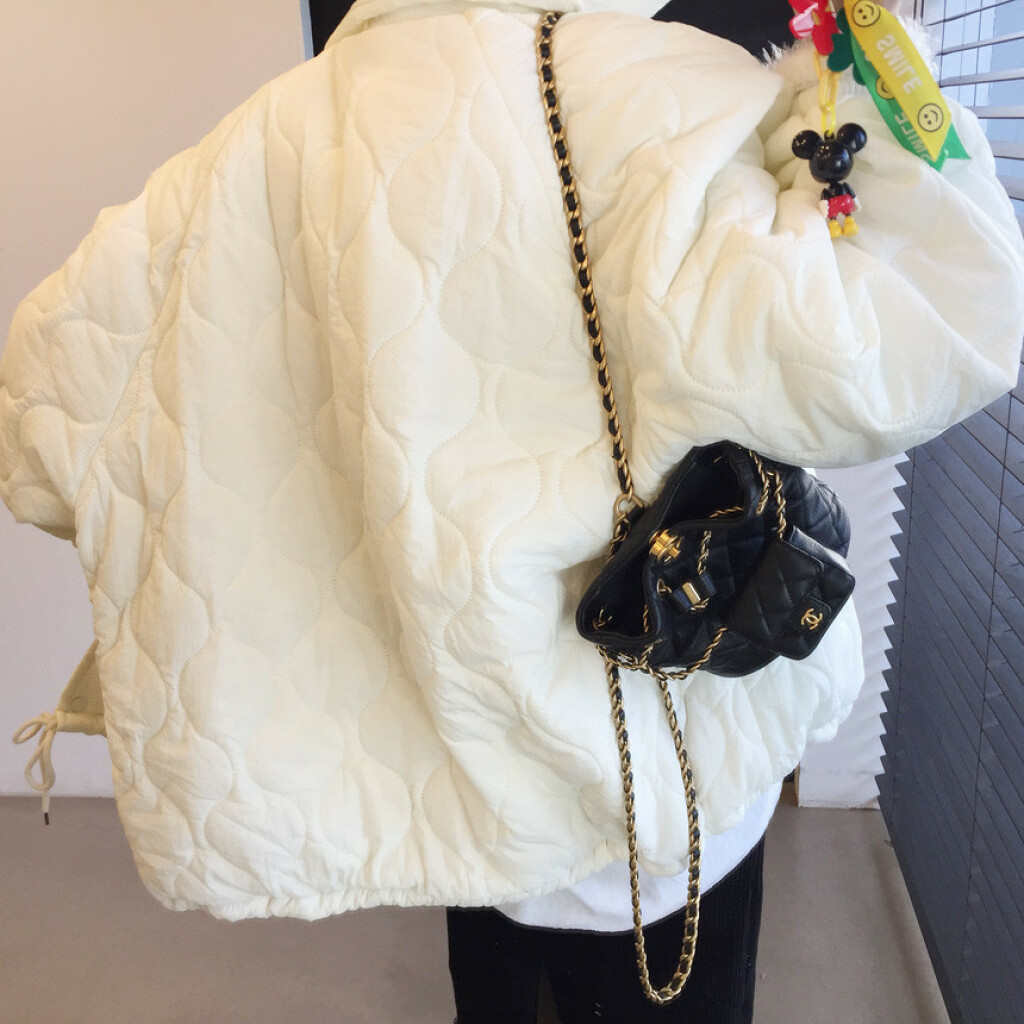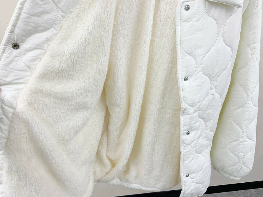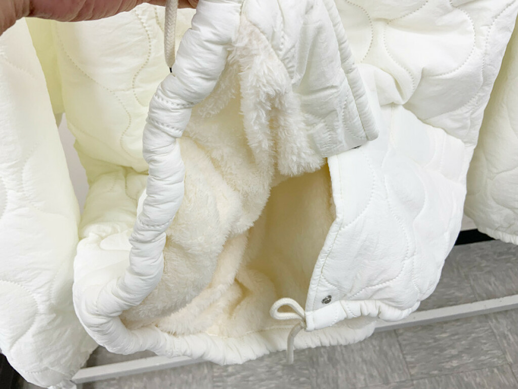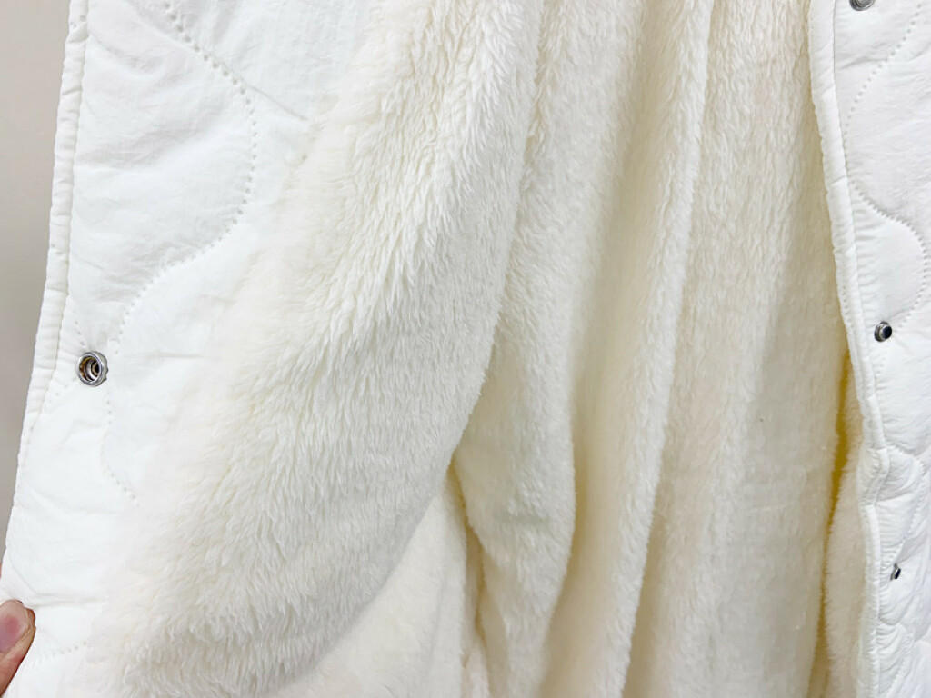 바스락 거리는 느낌이 좋은 퀄팅 소재에 안감 밍크퍼가 더해져