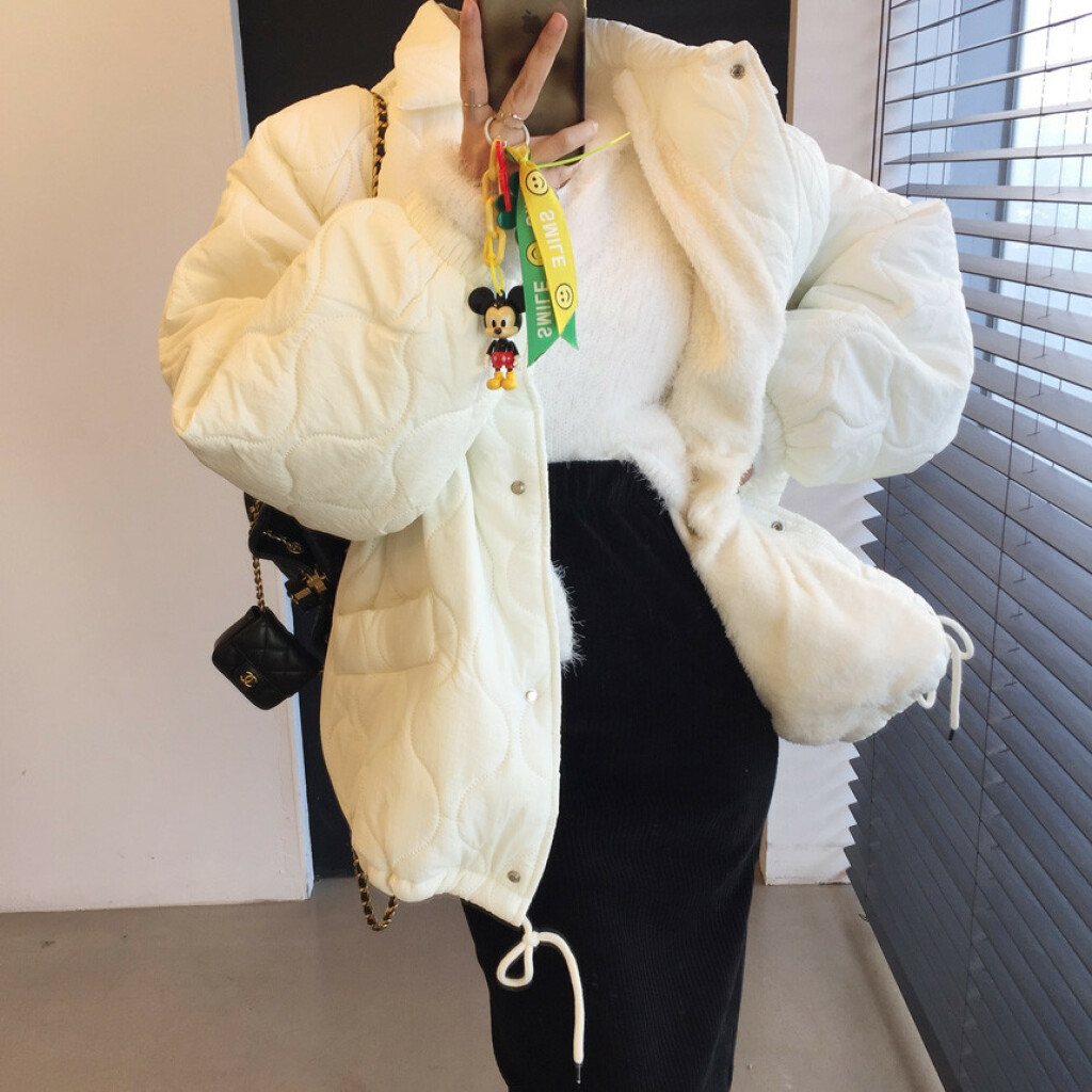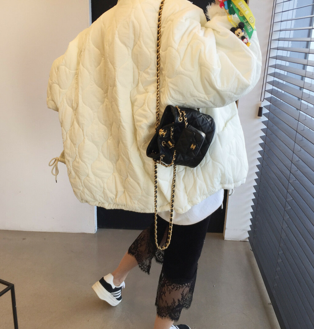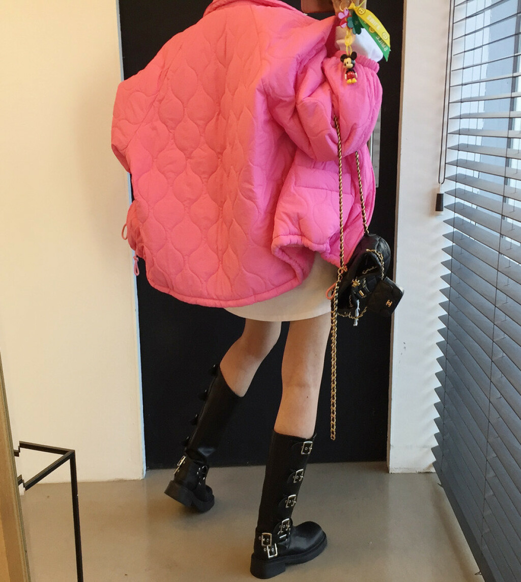 바스락 거리는 느낌이 좋은 퀄팅 소재에 안감 밍크퍼가 더해져