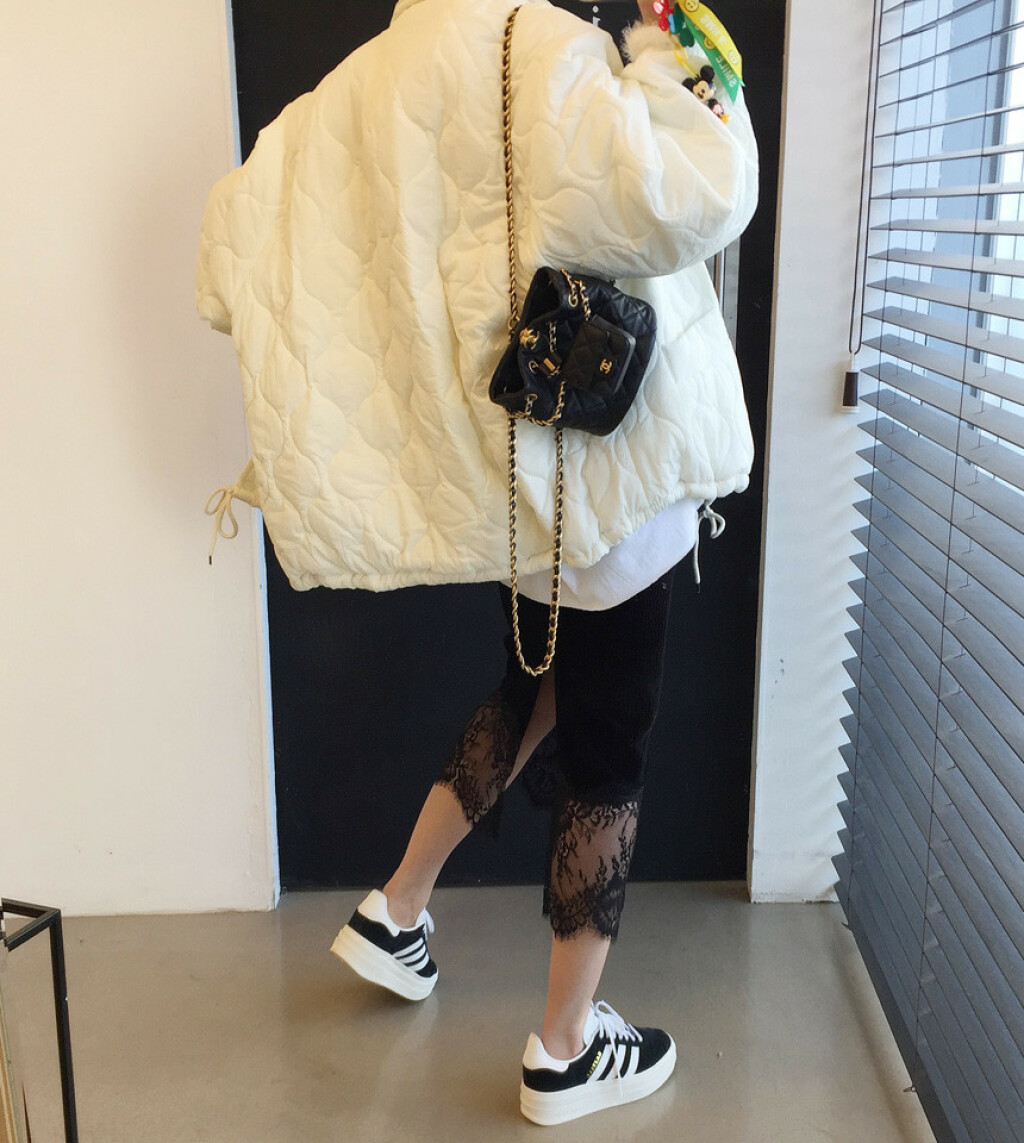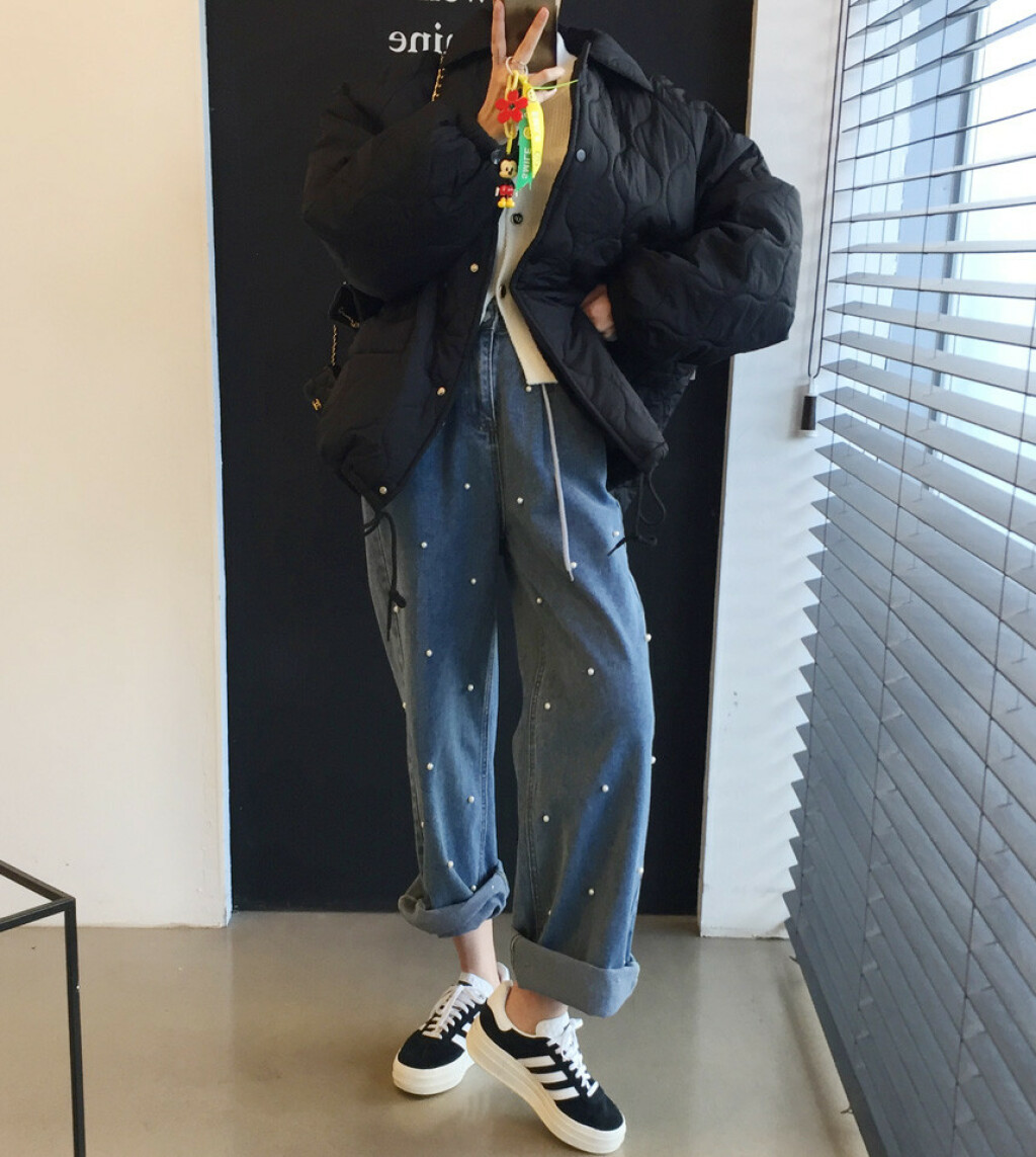 밑단에는 스트링이 있어 원하는 핏으로 조절도 가능하답니당 ^^