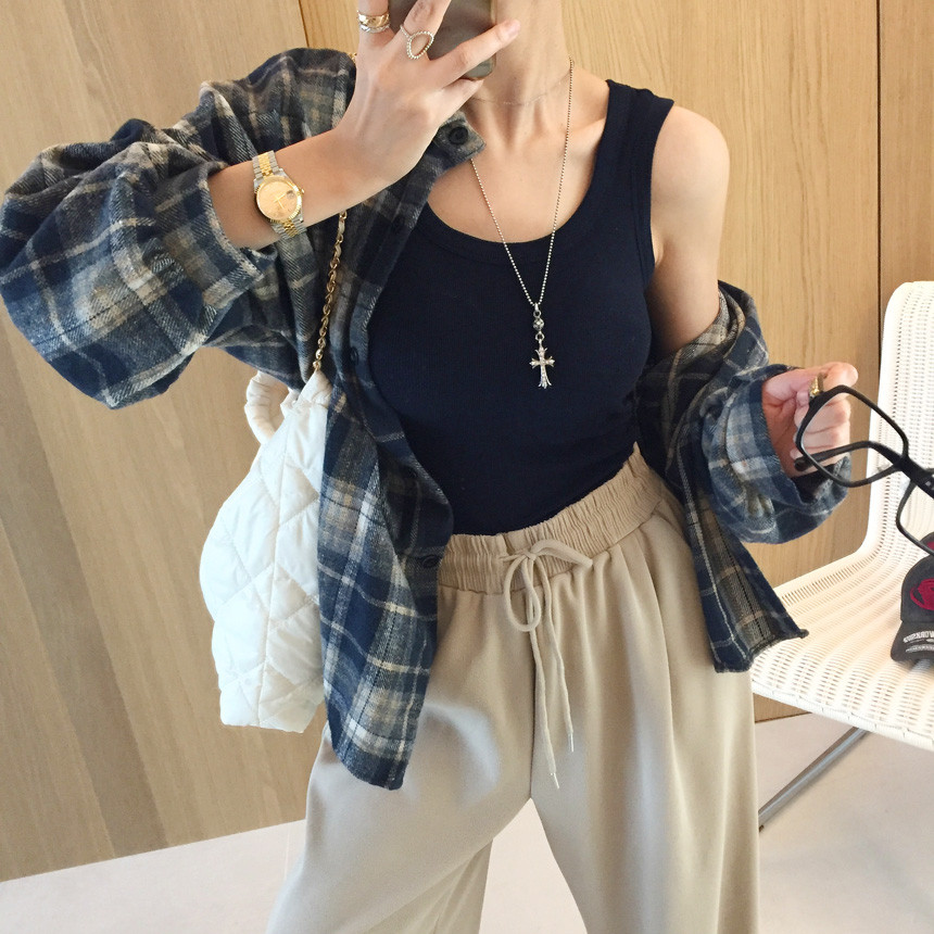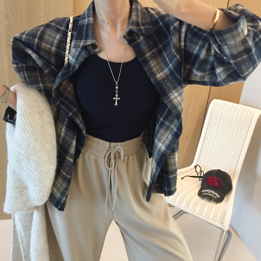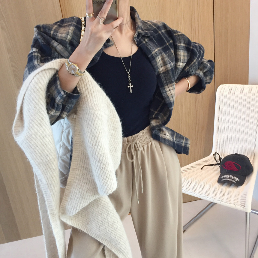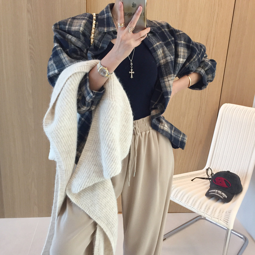 체크 피치기모 루즈핏 언발 자켓남방 보여드릴게용~