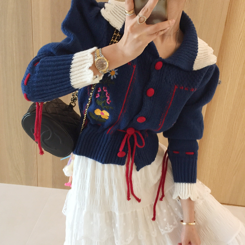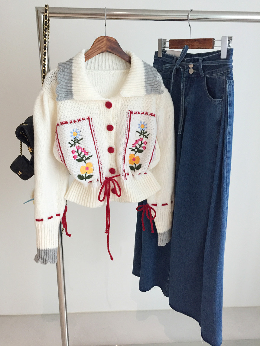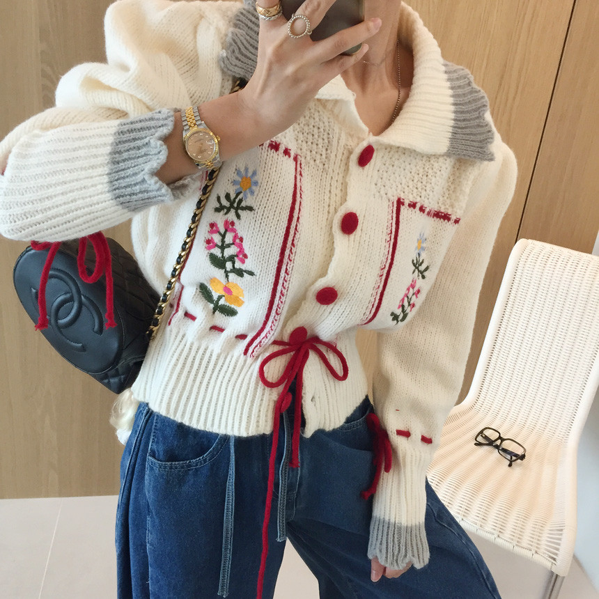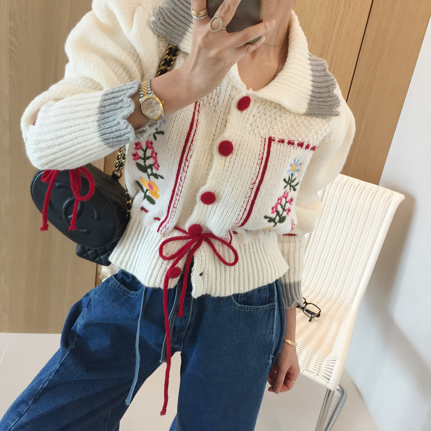 카라 단추 플라워 자수 니트가디건 소개해드릴께요 ^^
