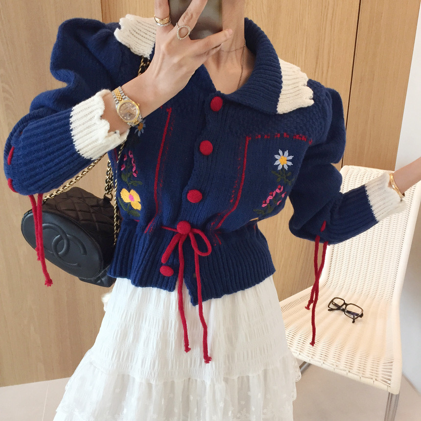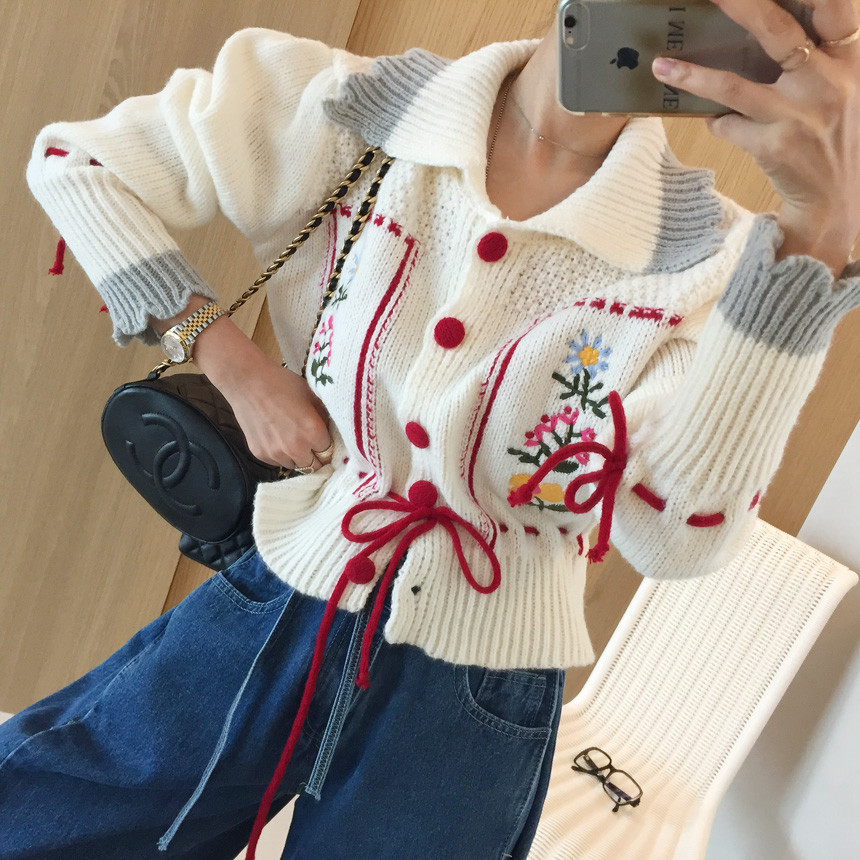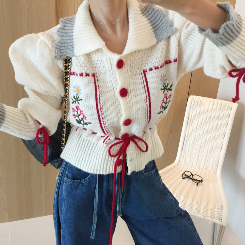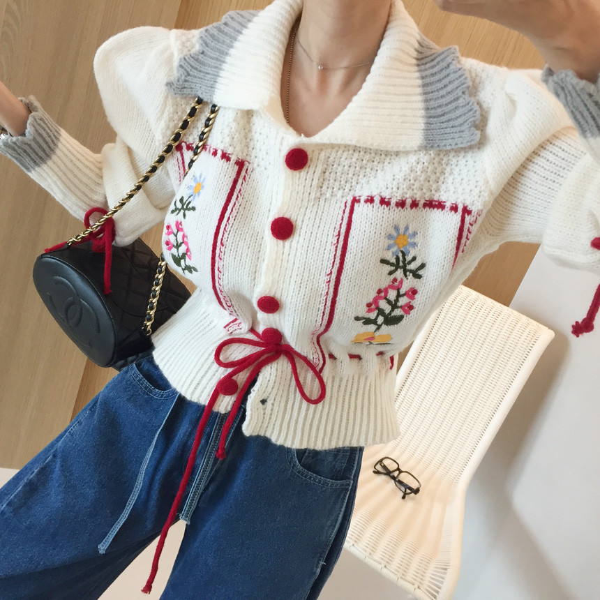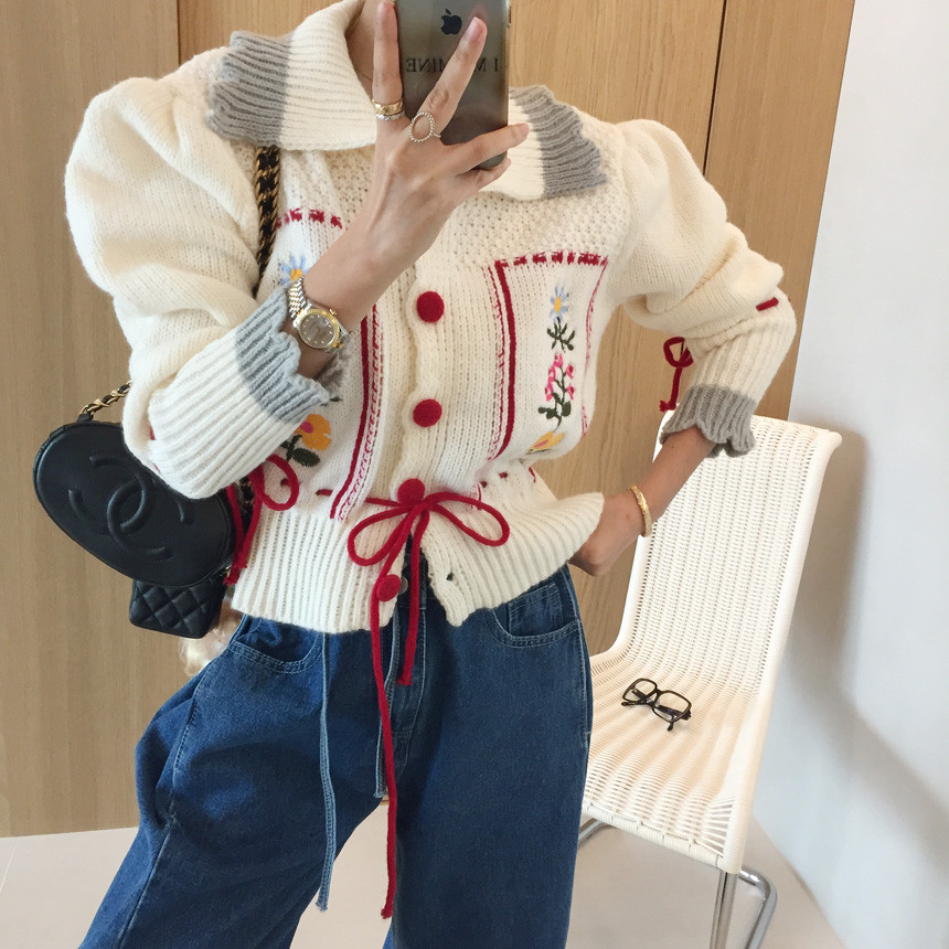 카라 단추 플라워 자수 니트가디건 소개해드릴께요 ^^